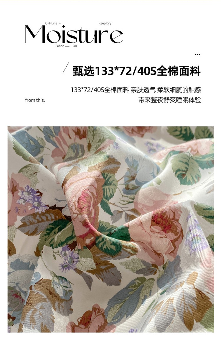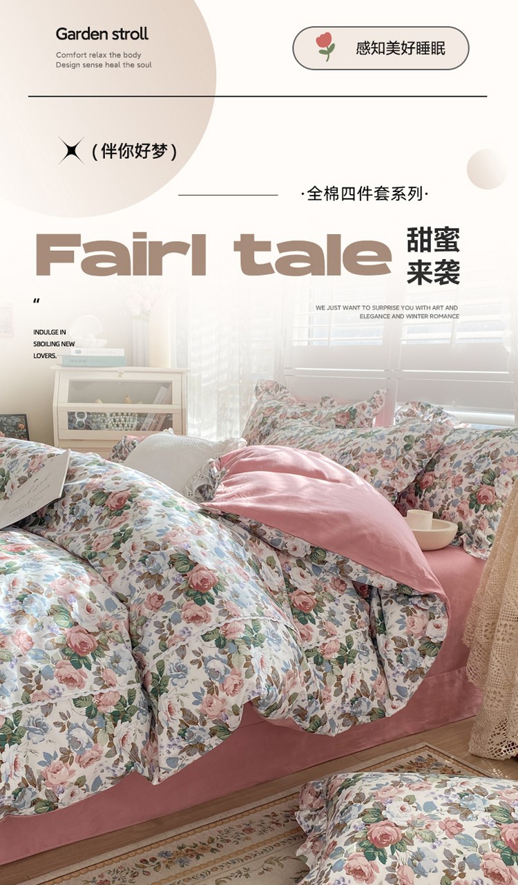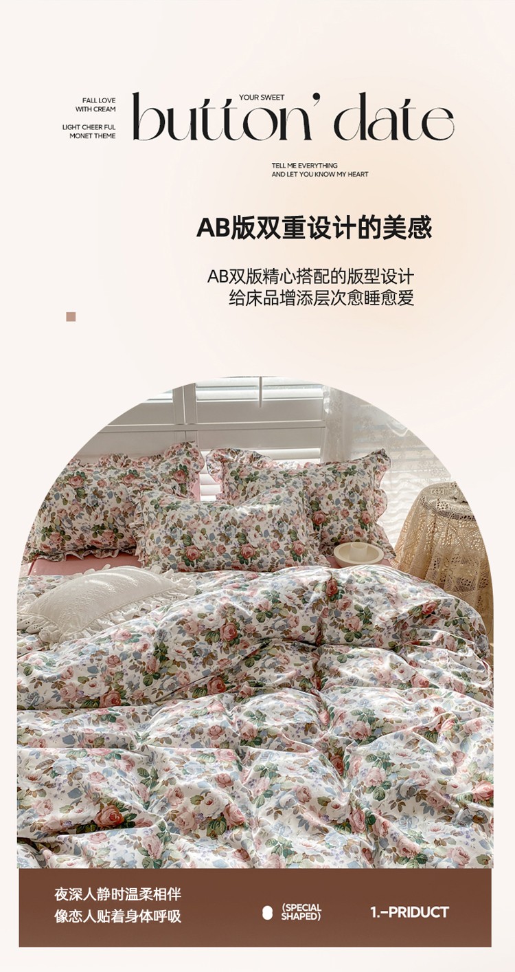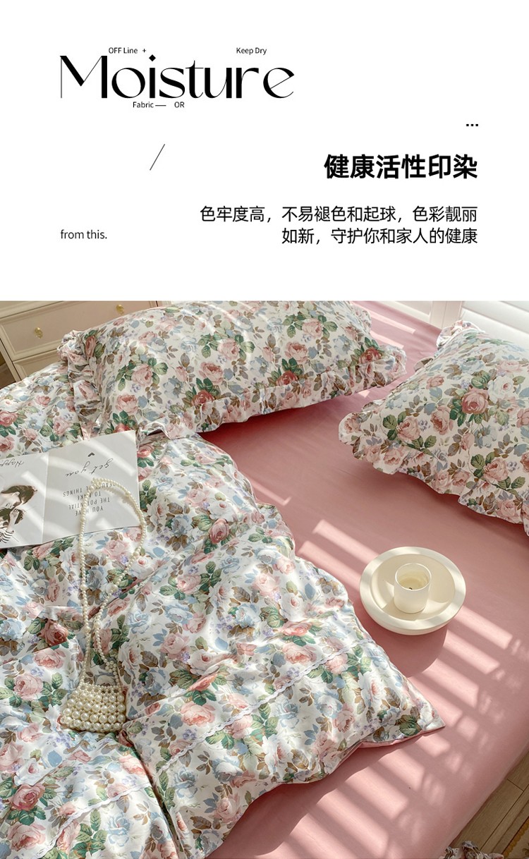 商品名称:潮邦 2025新款全棉韩式复古风四件套系列 香雪兰