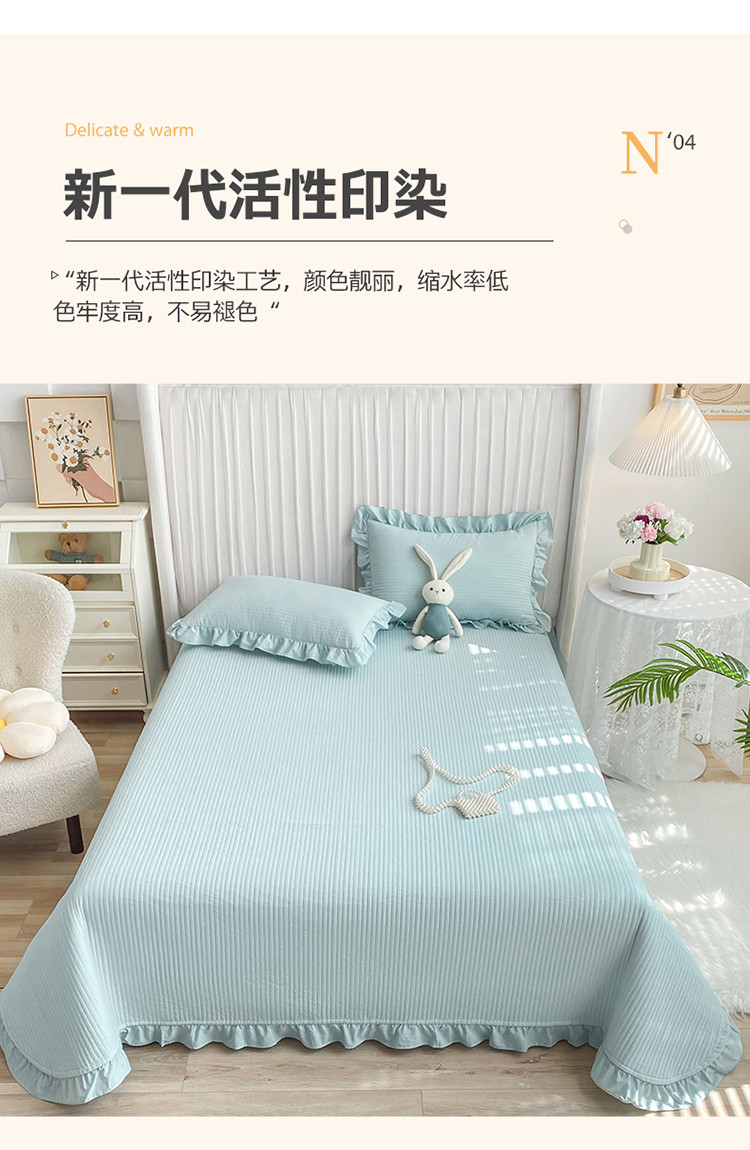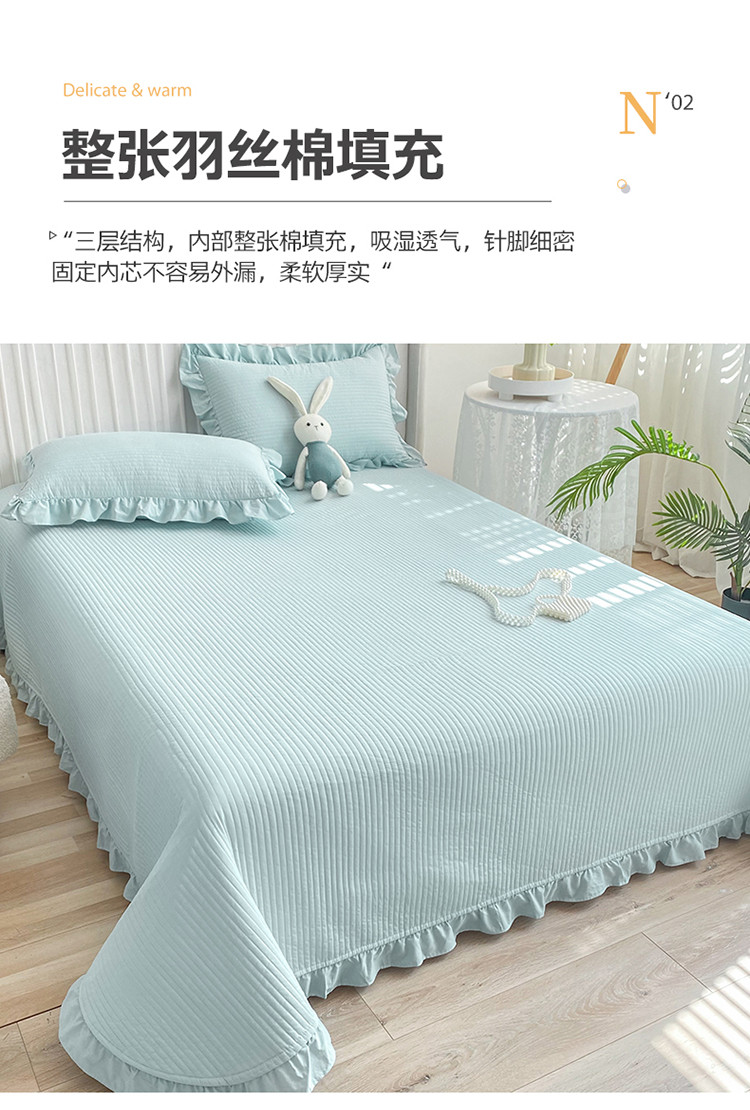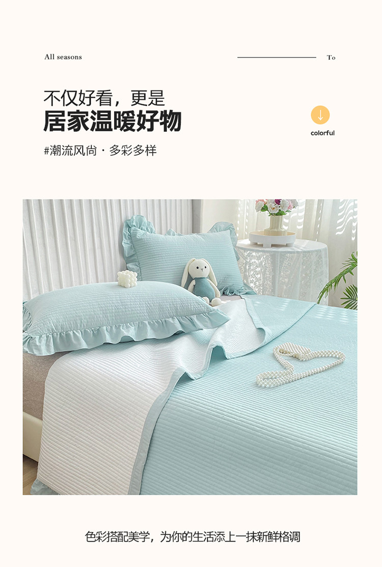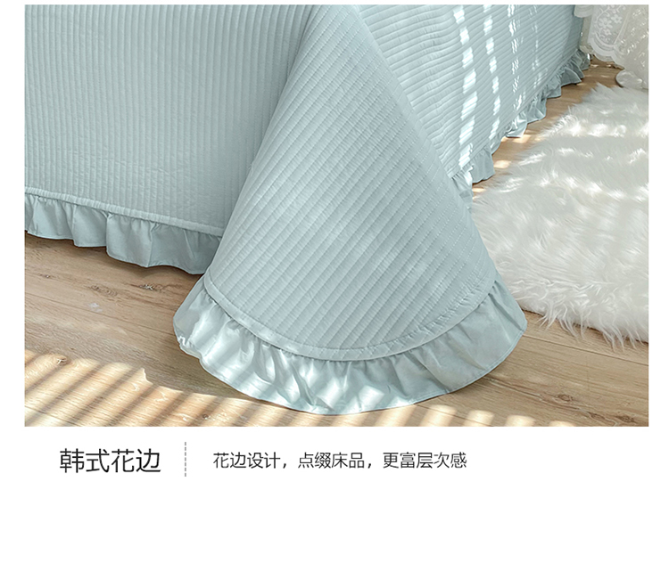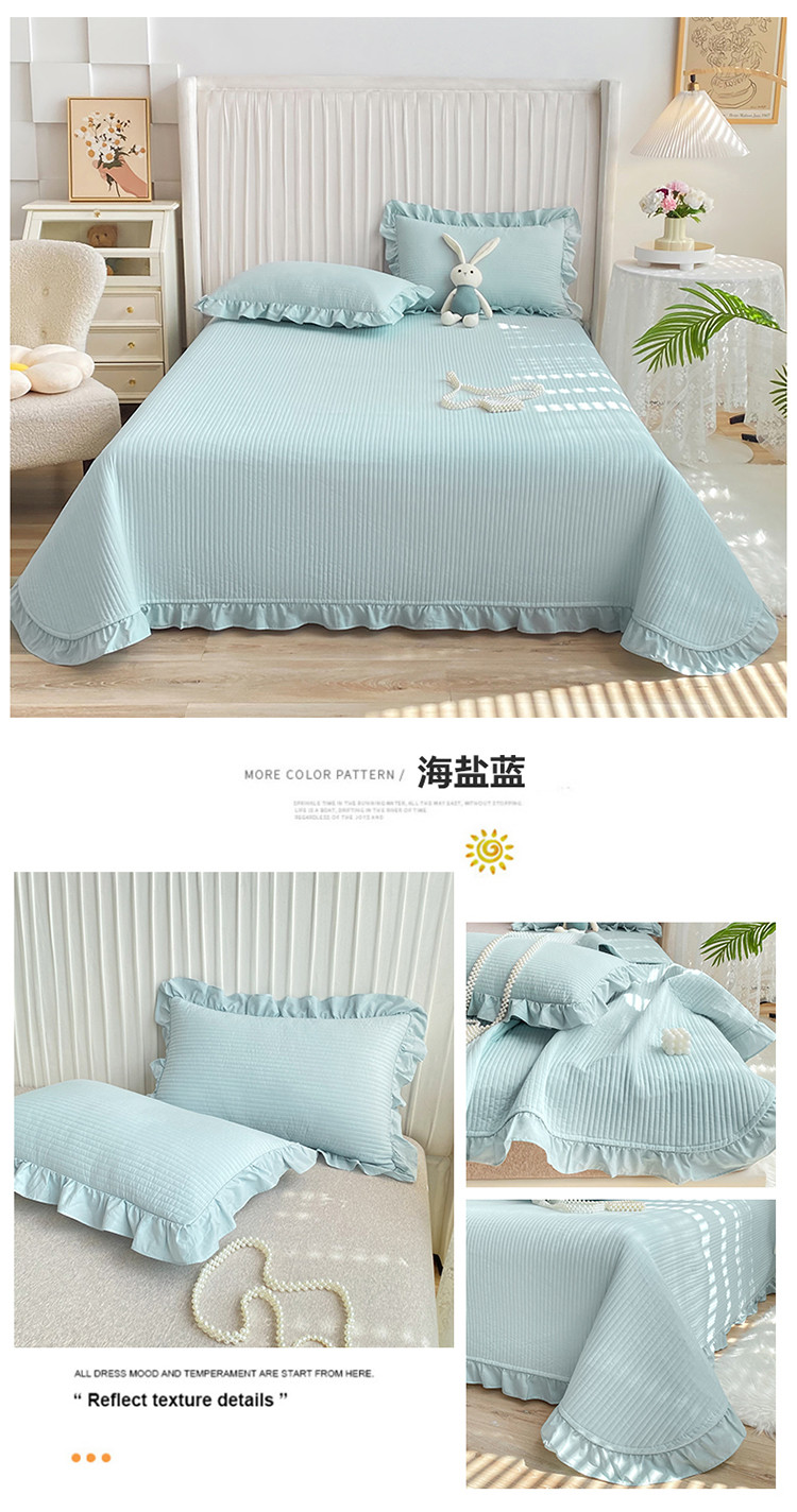 当前位置: 91家纺网 > 商品网购 > 床品套件 > 三件套 > 其奥 2025新款40S全棉水洗棉韩版荷叶边夹棉床盖三件套 海盐蓝