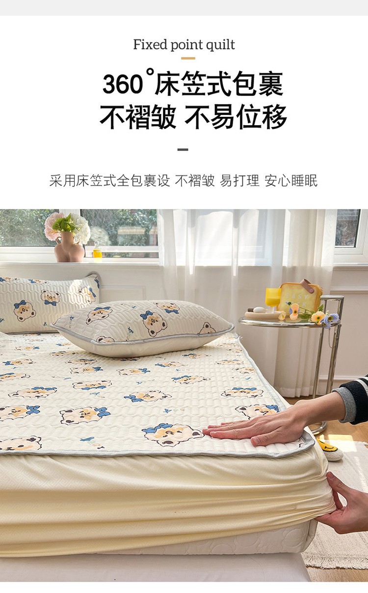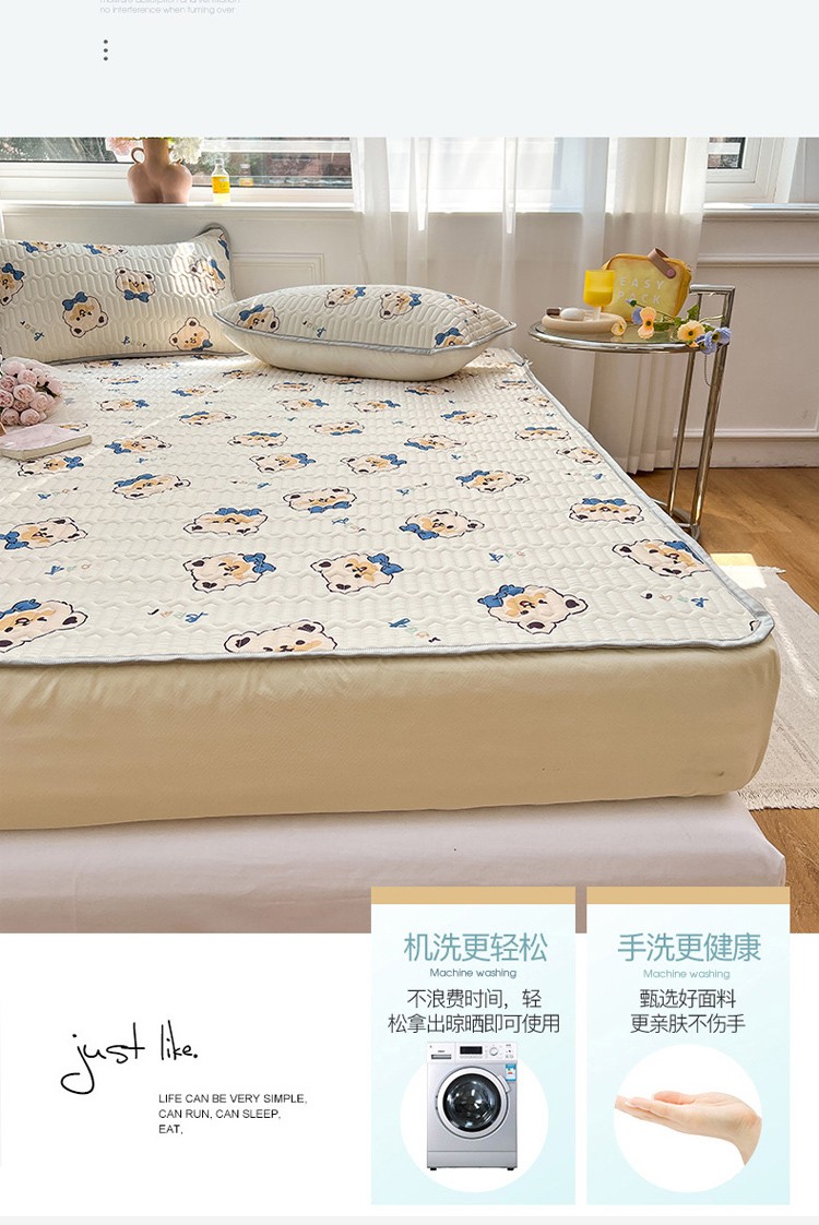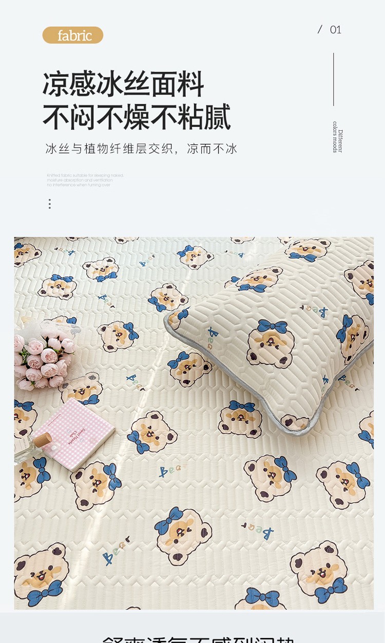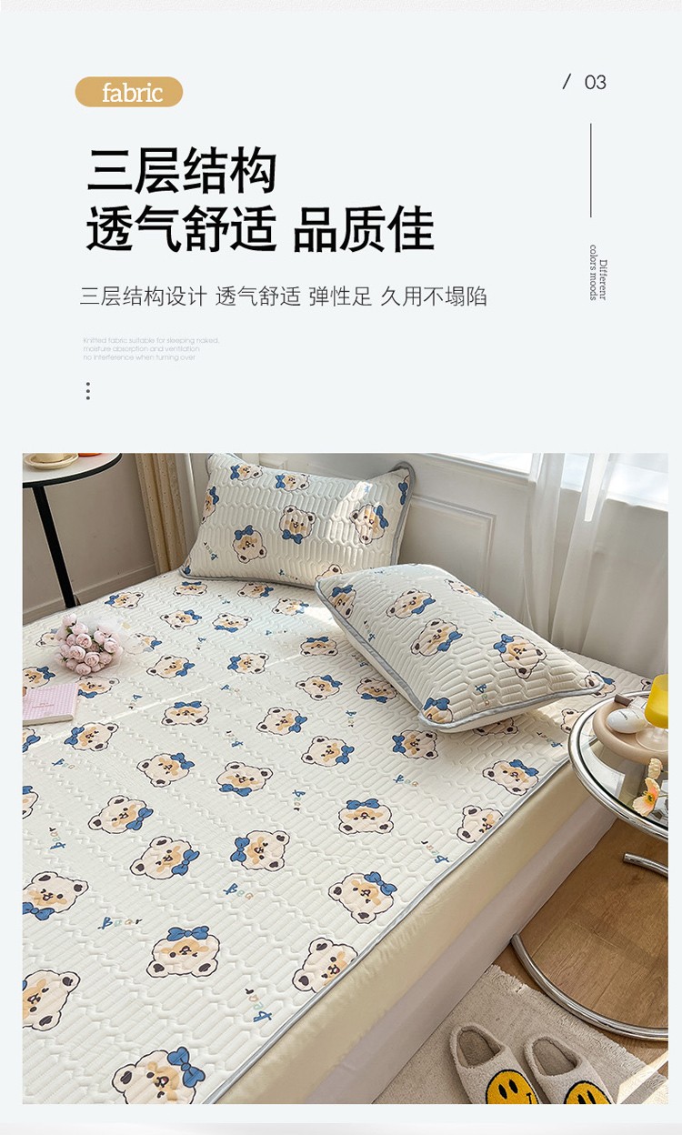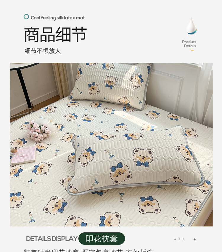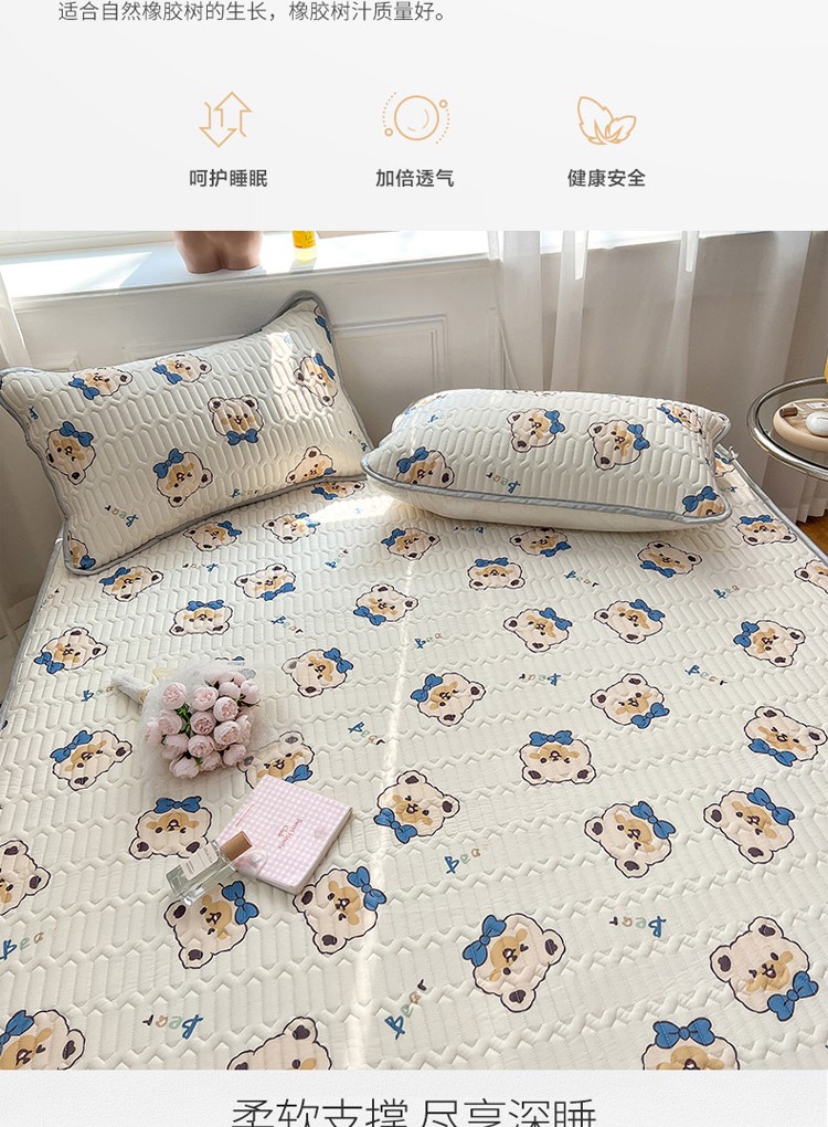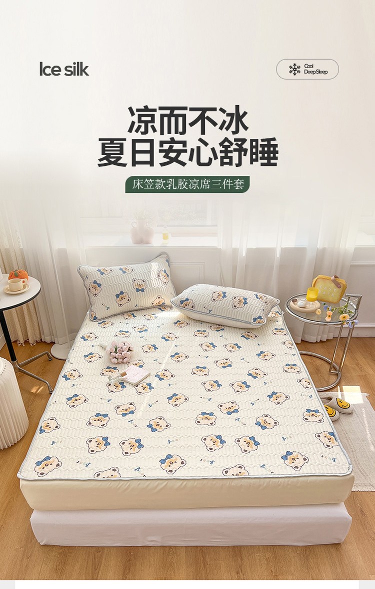 商品名称:寐居 2022新款0.5凉感丝床笠款乳胶凉席三件套 床笠款-领结熊