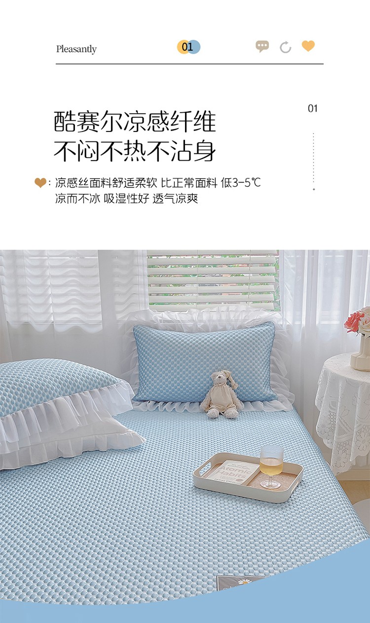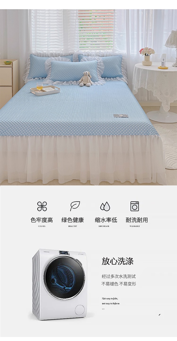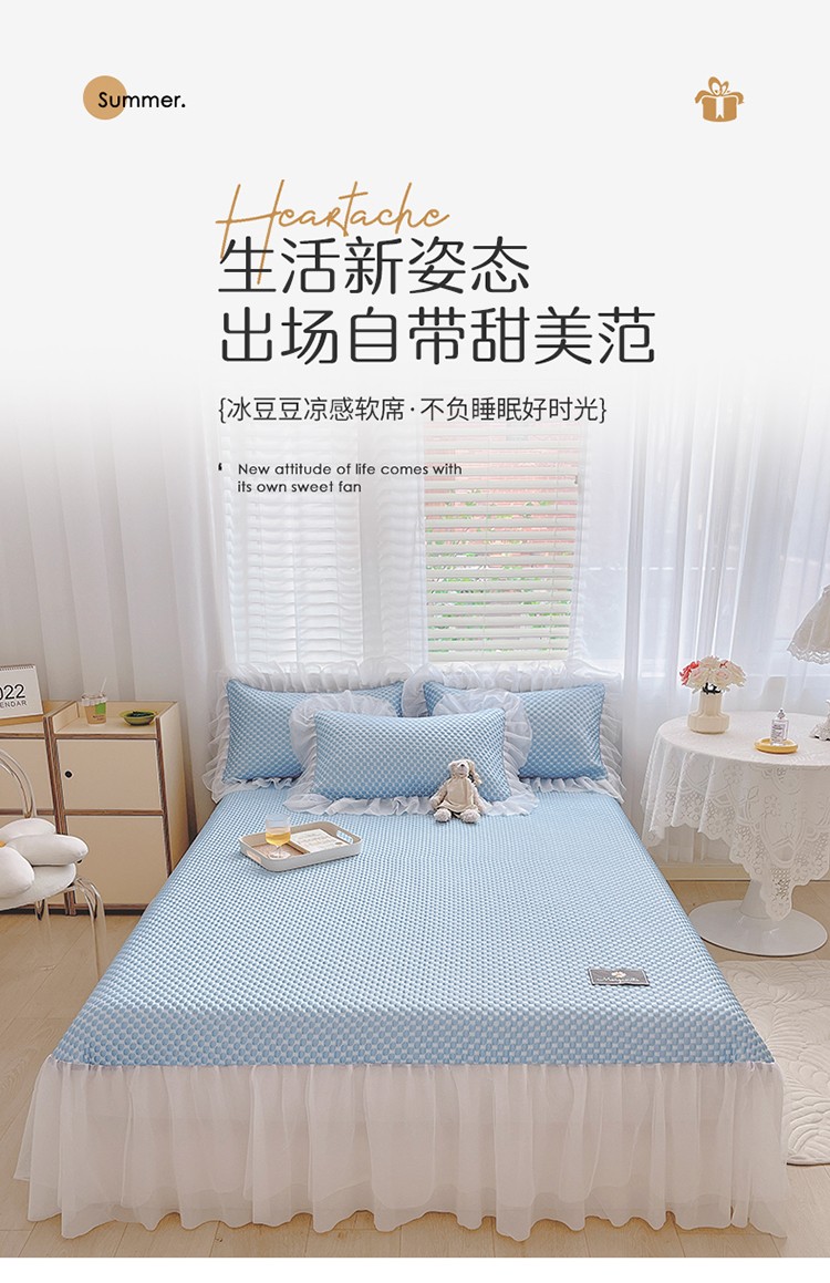 眠帛家居 2022春夏爆款冰豆豆凉席床裙款 公主蓝