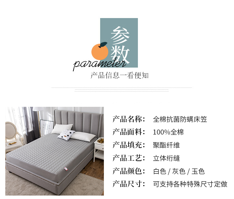 (总)雪云美全棉纯色抗菌防螨夹棉床笠133*72纯棉可定制,白色,灰色,玉色
