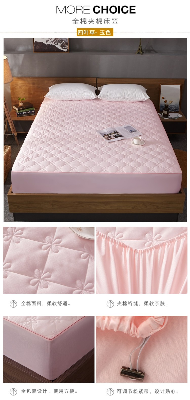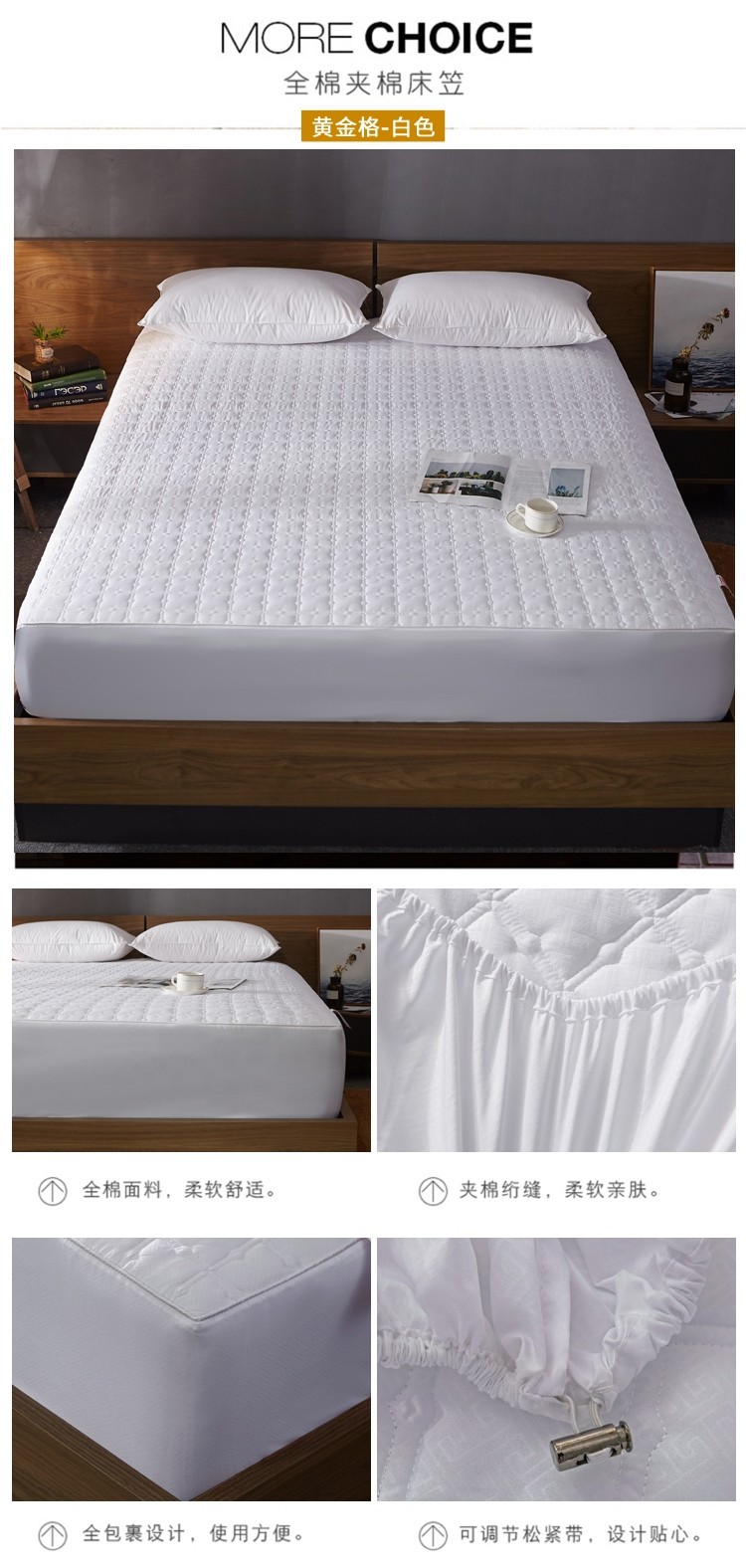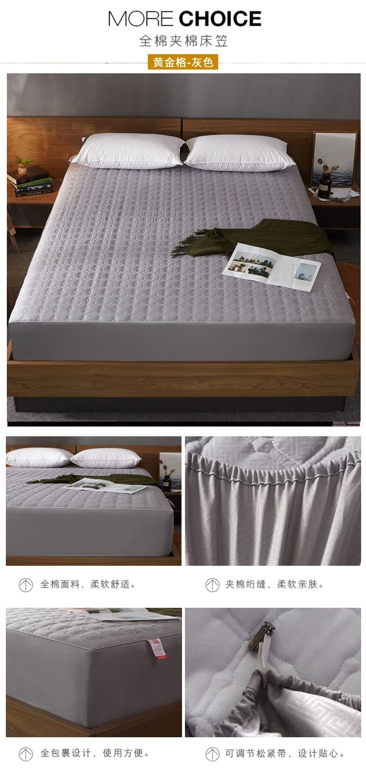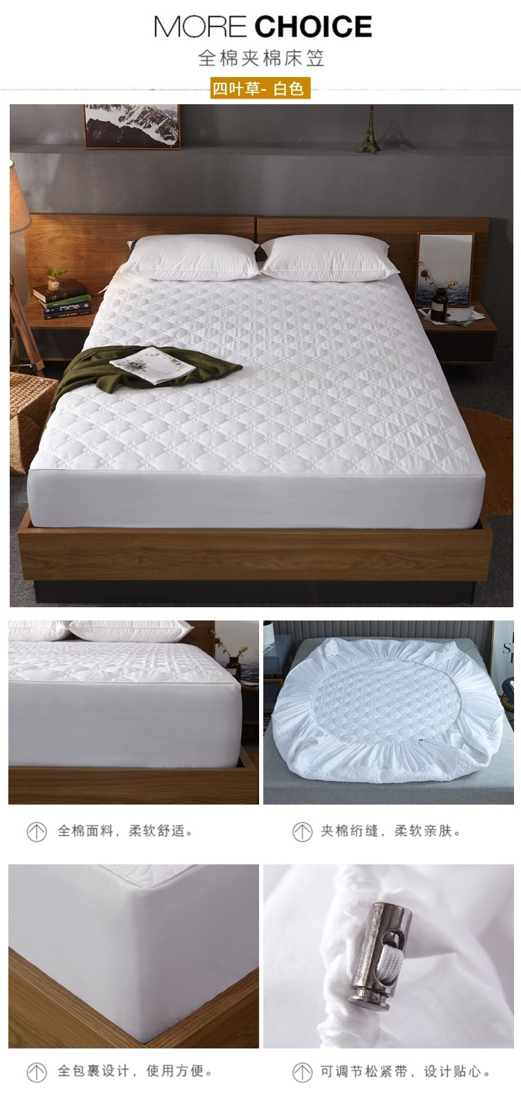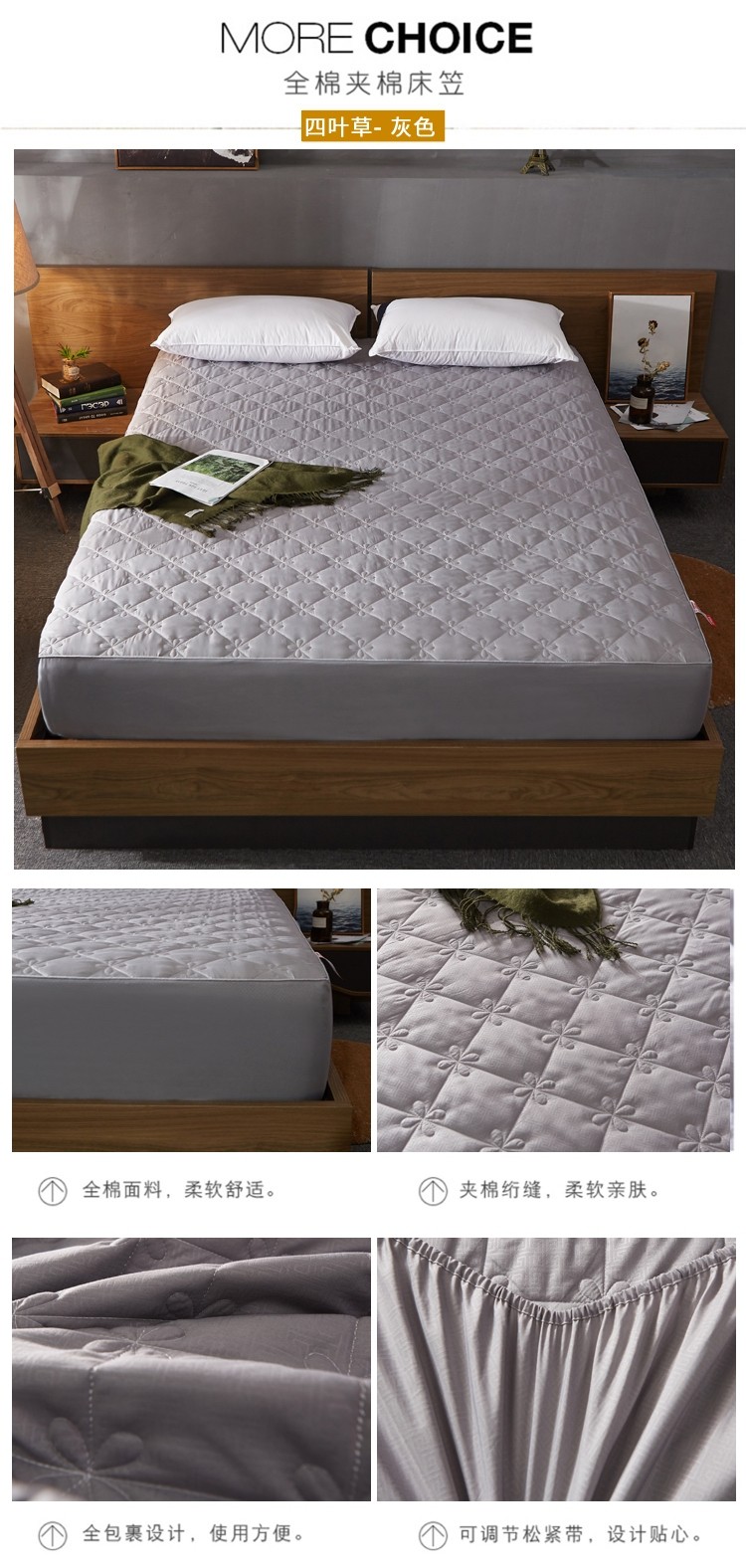 (总)雪云美 2022亲肤棉磨毛夹棉床笠全包床垫保护套,黄金格-白,黄金格-灰,黄金格-玉,四叶草-白,四叶草-灰,四叶草-玉