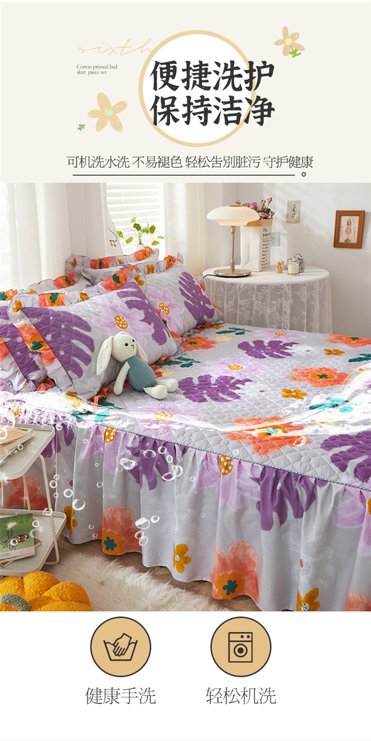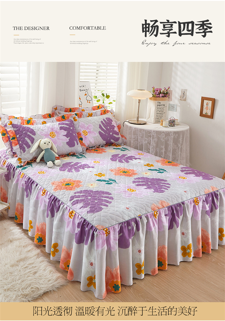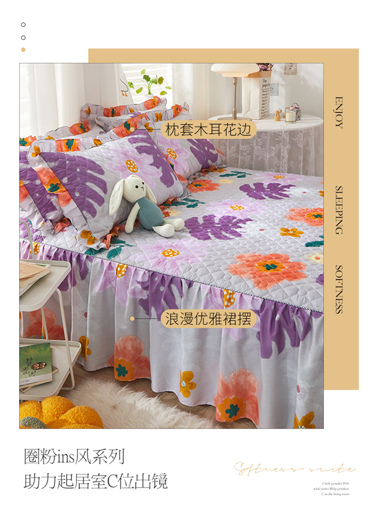 十个点 2022新款全棉夹棉印花床裙 沐春