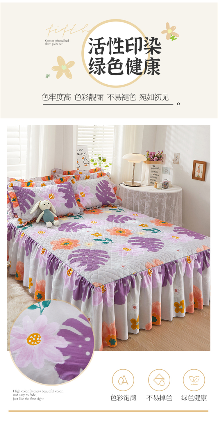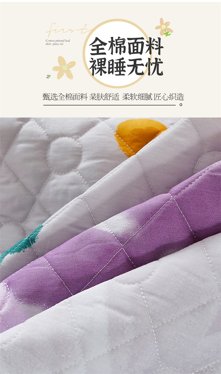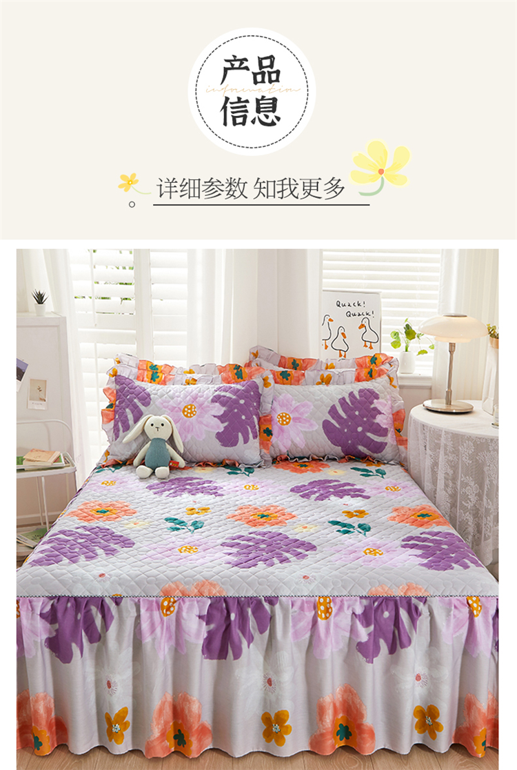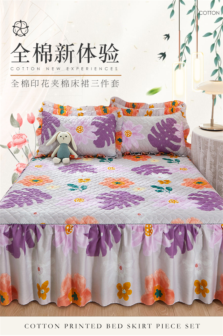 • 91家纺网 家纺一手货源 找家纺 十个点 2022新款全棉夹棉印花床裙 沐春
