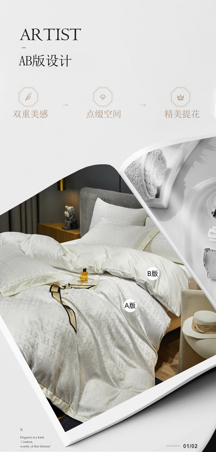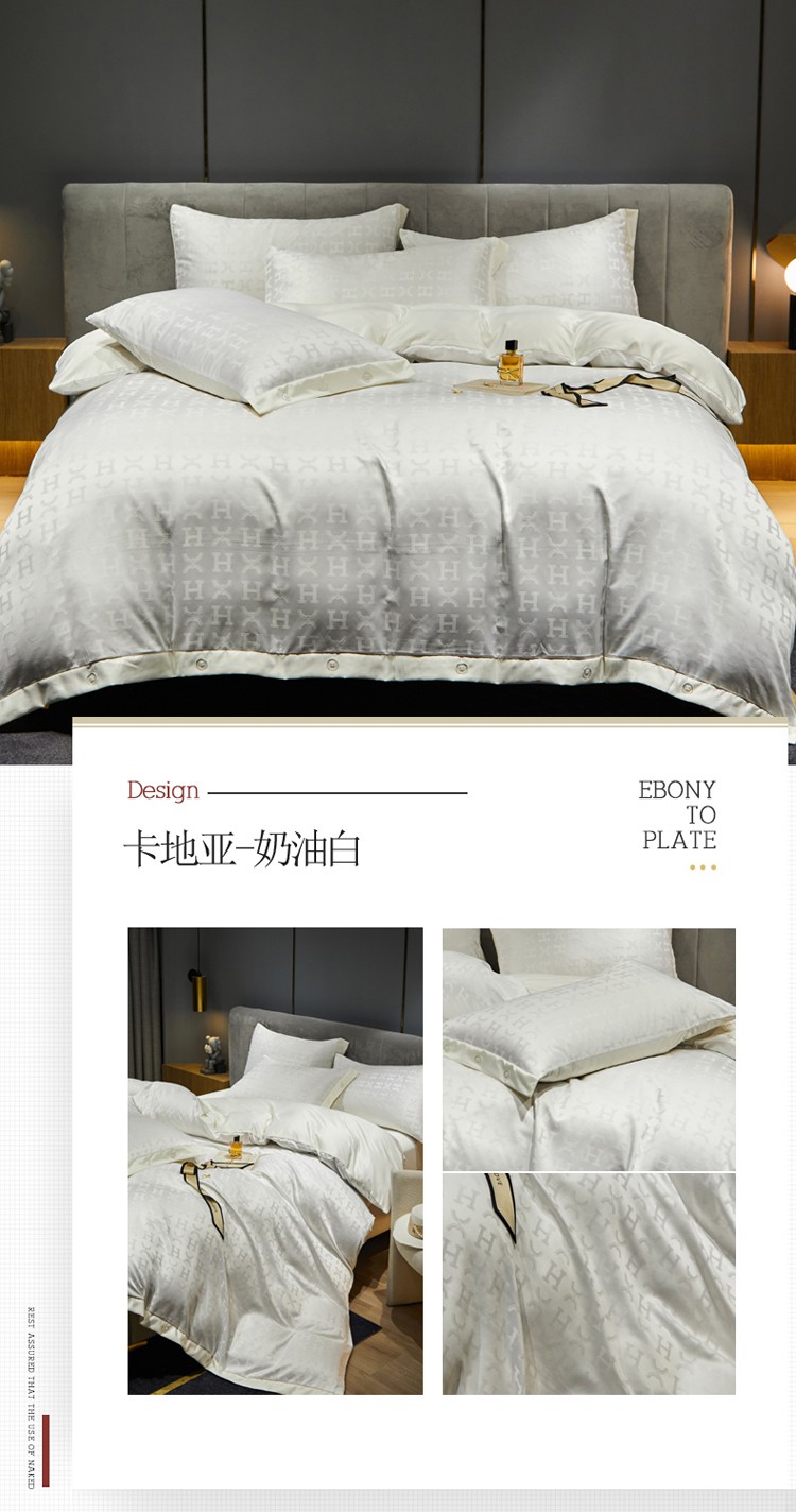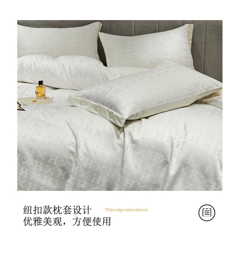 凡客 2022新款40支仿天丝提花纽扣款四件套 卡迪亚-奶油白