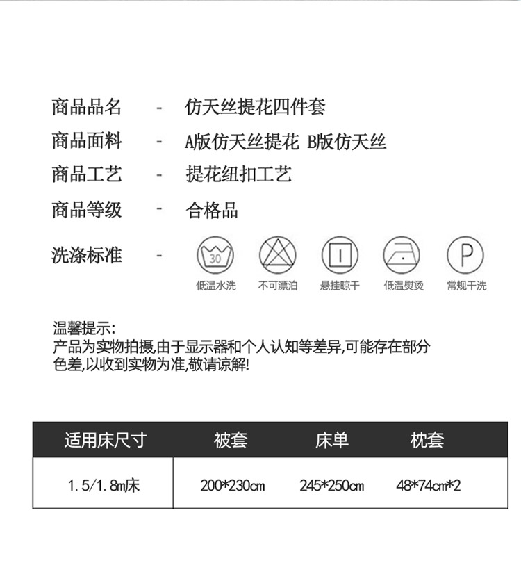 3、通州区市场监督局友情提醒,近期涉及到床上用品不褪色不掉毛不缩水的投诉和以世界知名品牌图案为面料的床品举报较多。请各商家自检自查,对照整改或进行下架处理。
