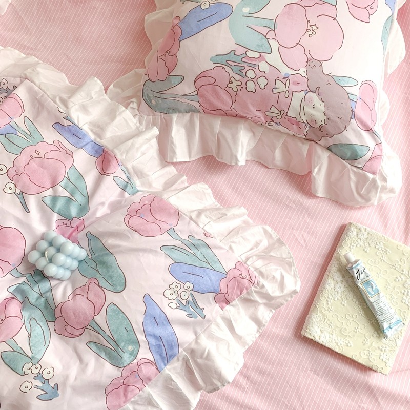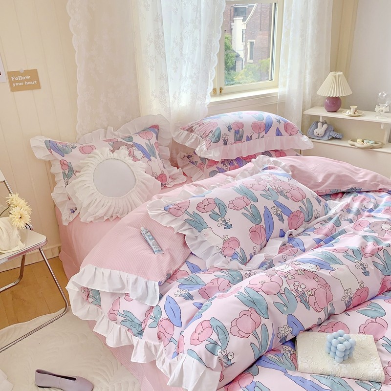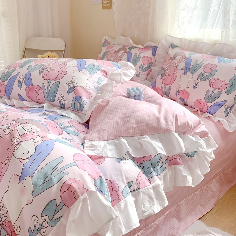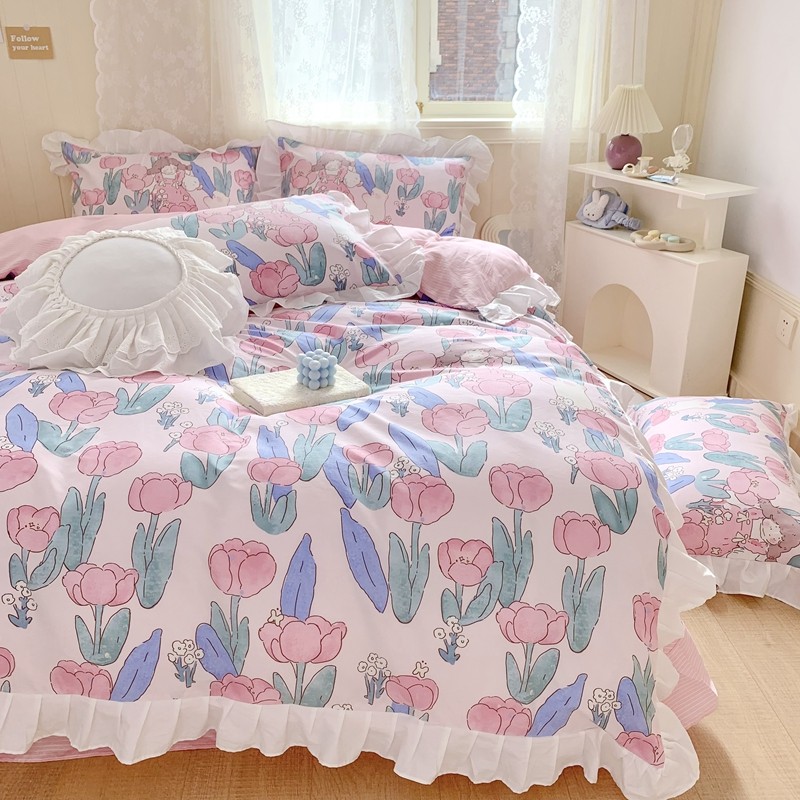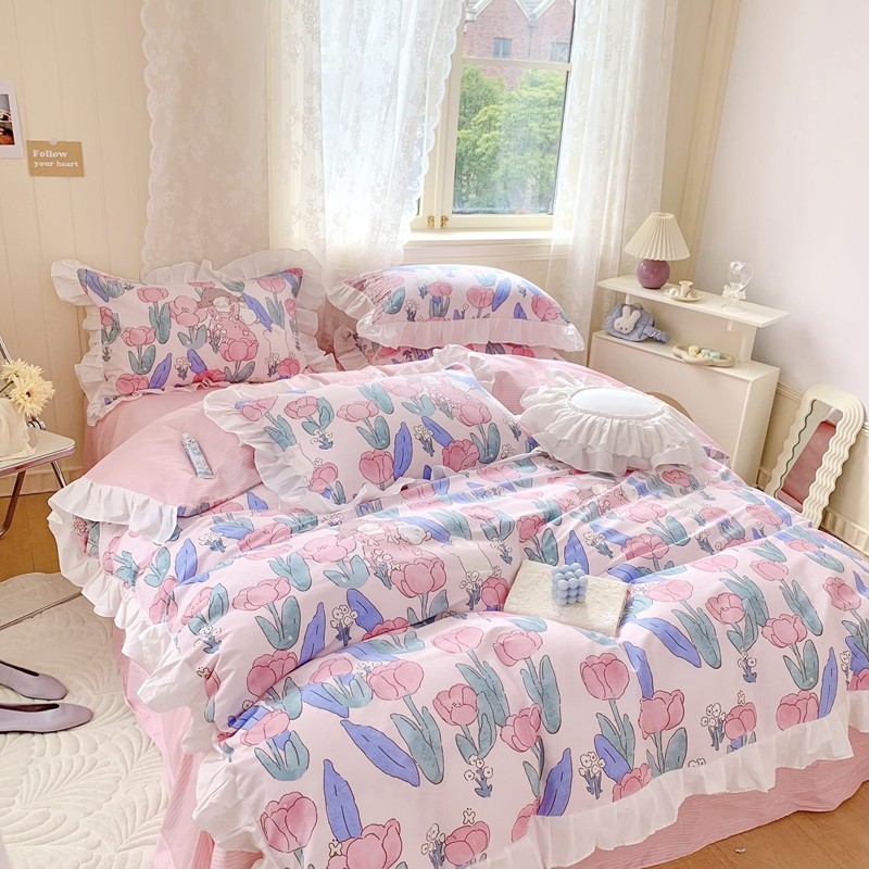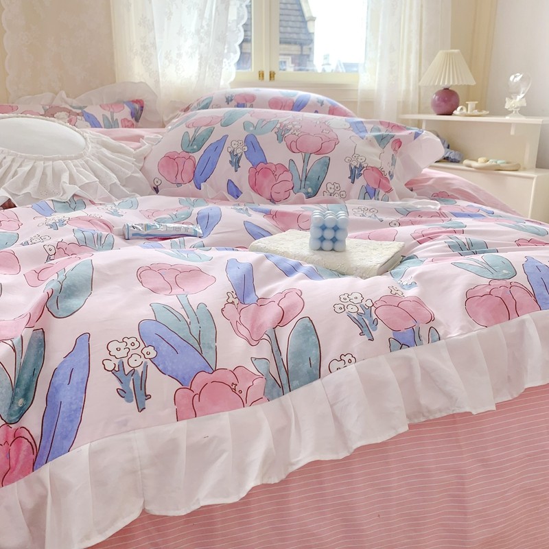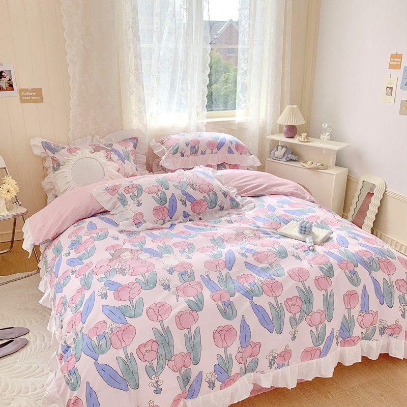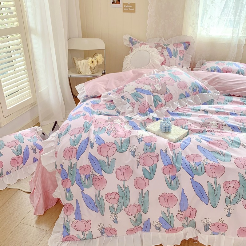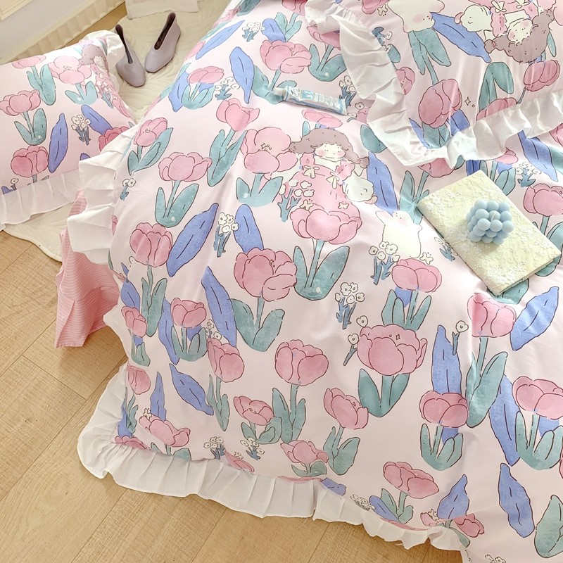 眠屿 2022春夏新品全棉印花花边款四件套 花仙子