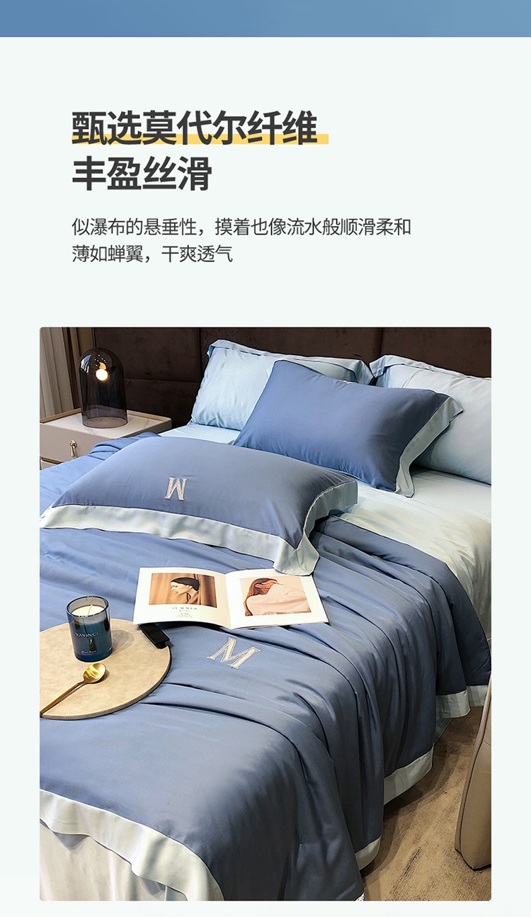 商品名称:初拾 2022新款莫代尔零度夏被—知夏系列 知夏-天青蓝