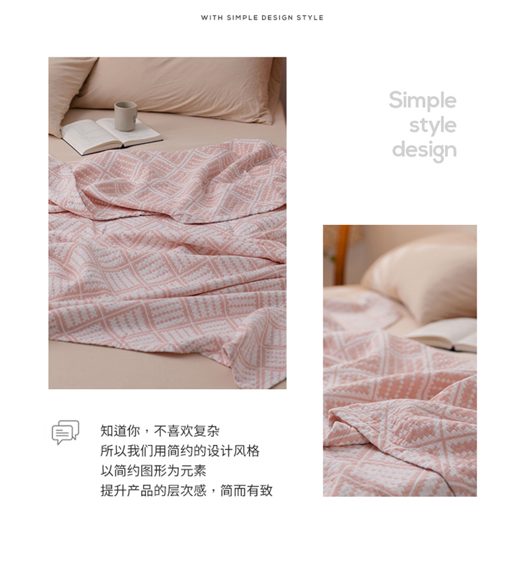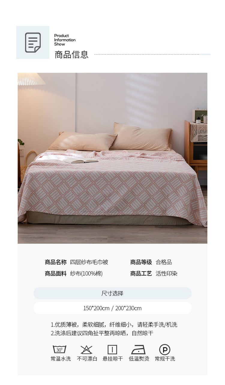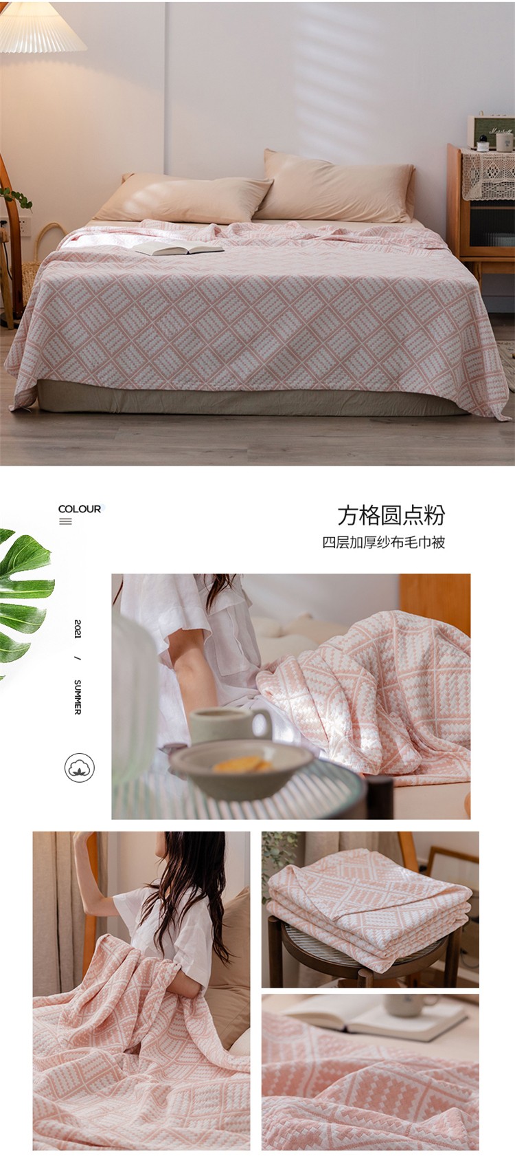 商品名称:雯雨 2022新款四层加厚纱布毛巾被 方格圆点粉
