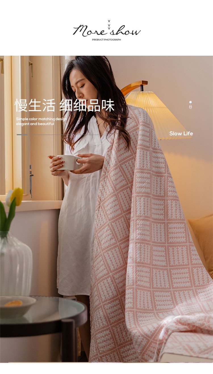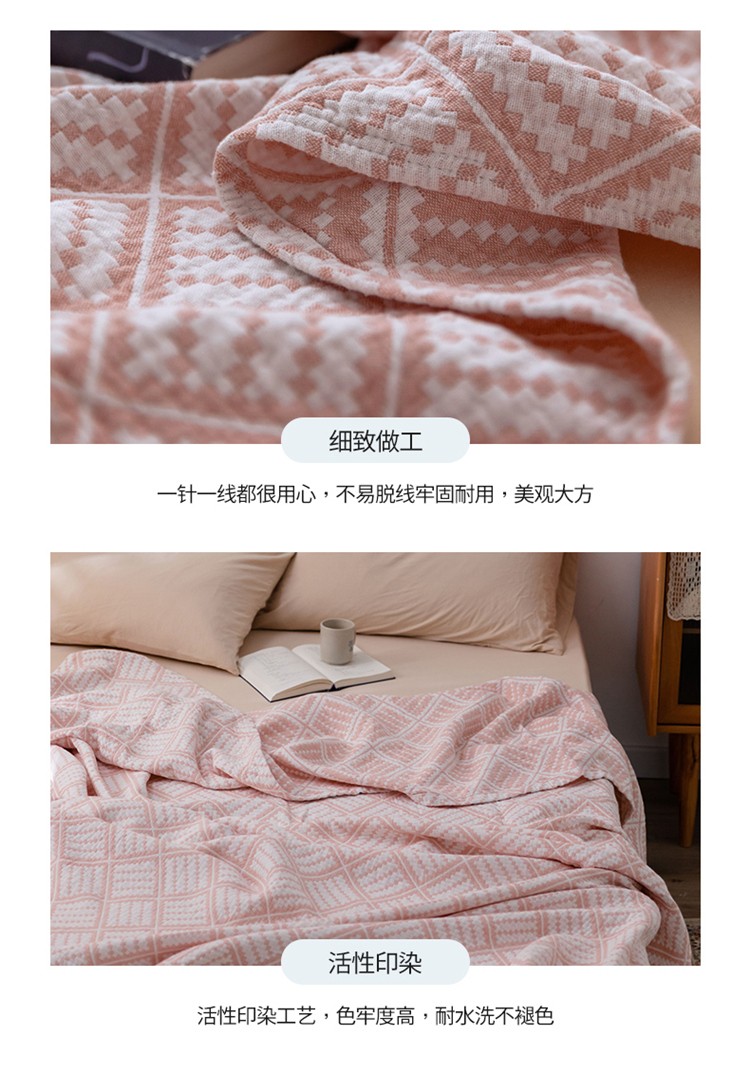 雯雨 2022新款四层加厚纱布毛巾被 方格圆点粉