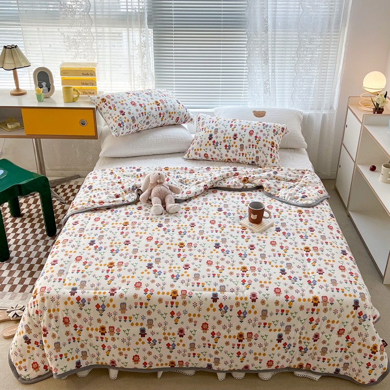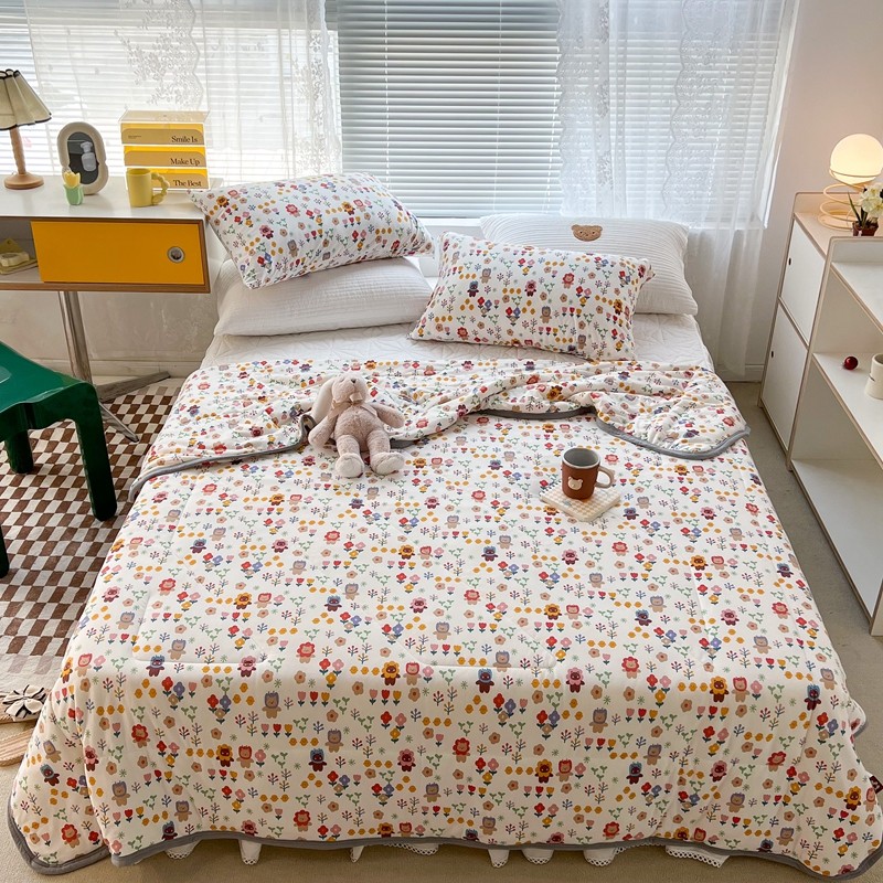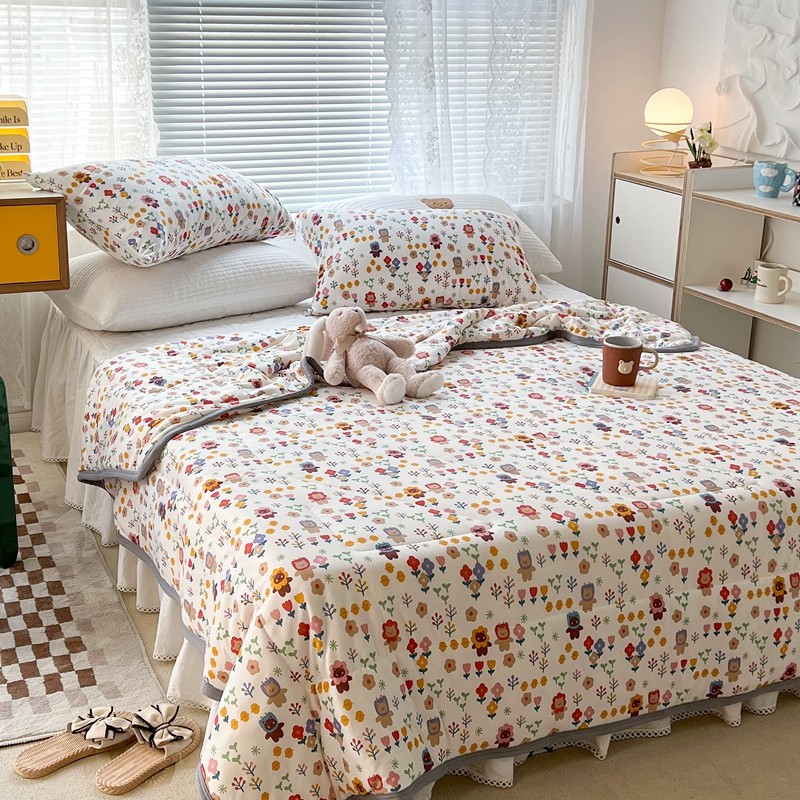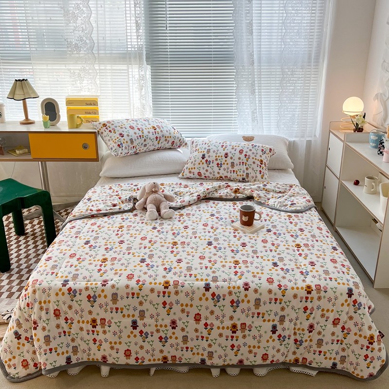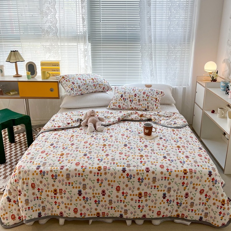 昔可 2022新款包边牛奶丝针织夏被 小狮子