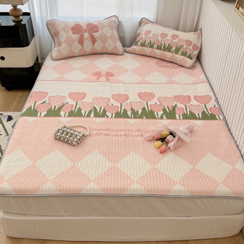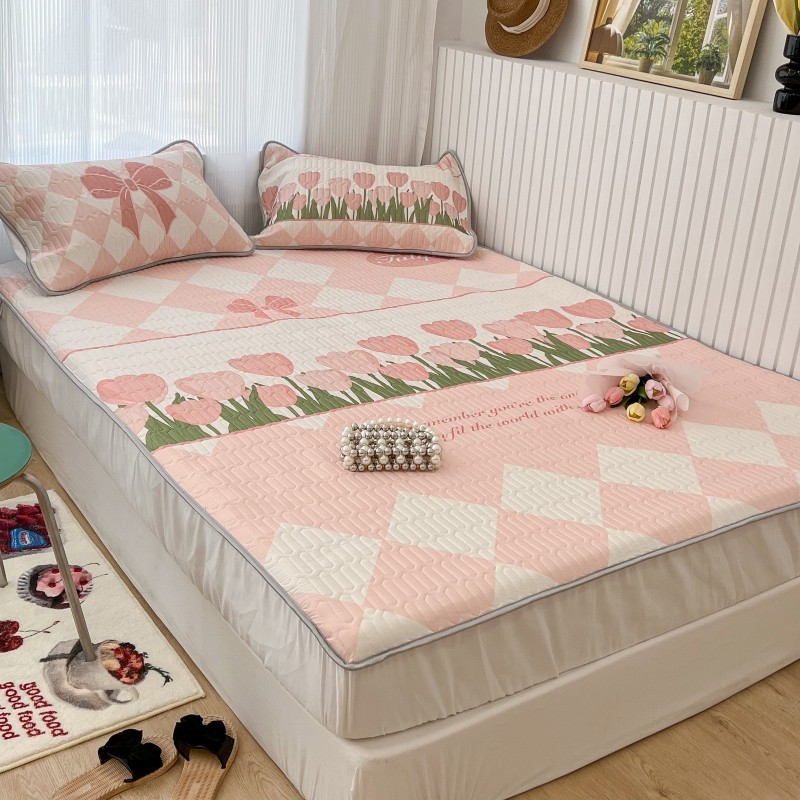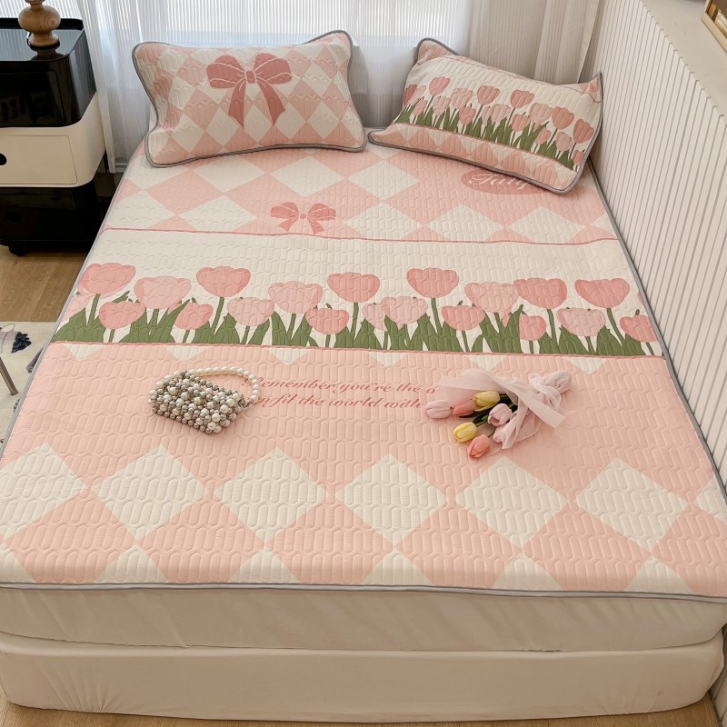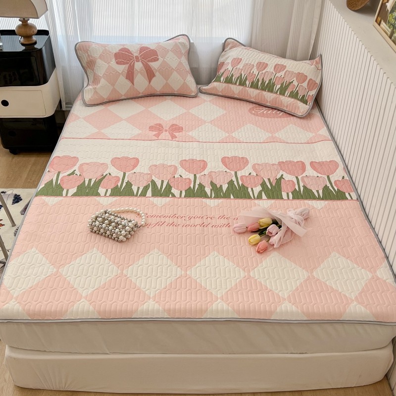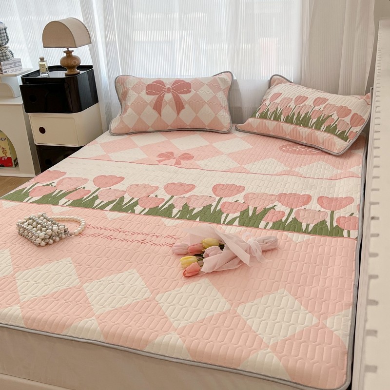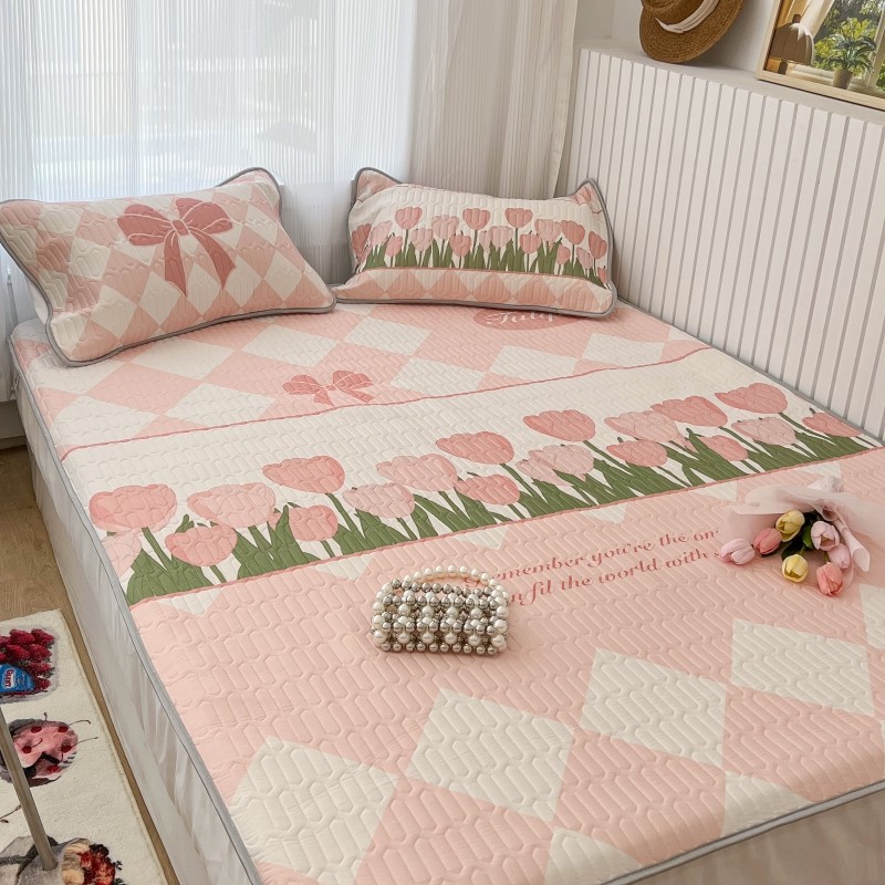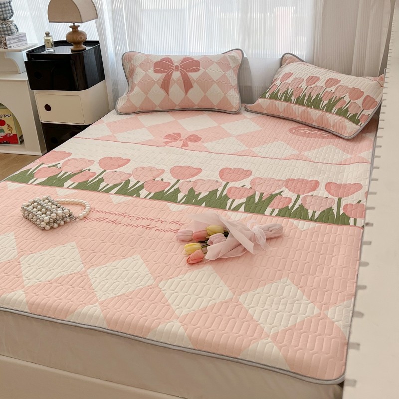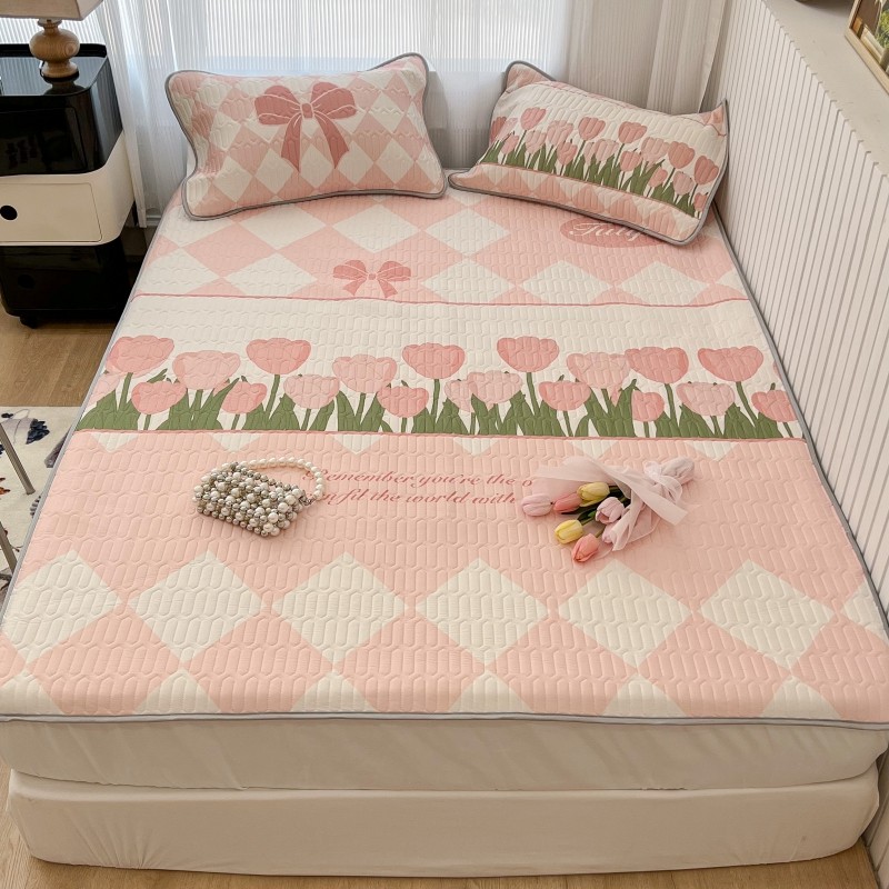 昔可 2022新款ins风小清新床笠款乳胶凉席三件套 床笠款-郁金朵朵