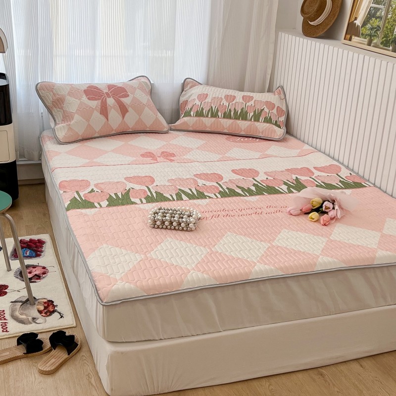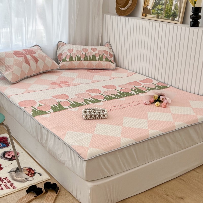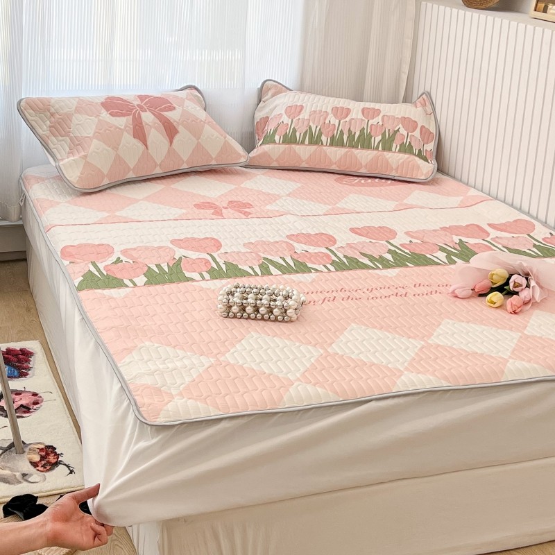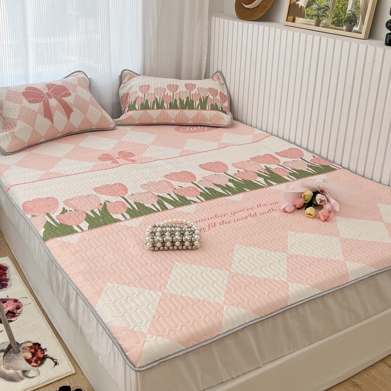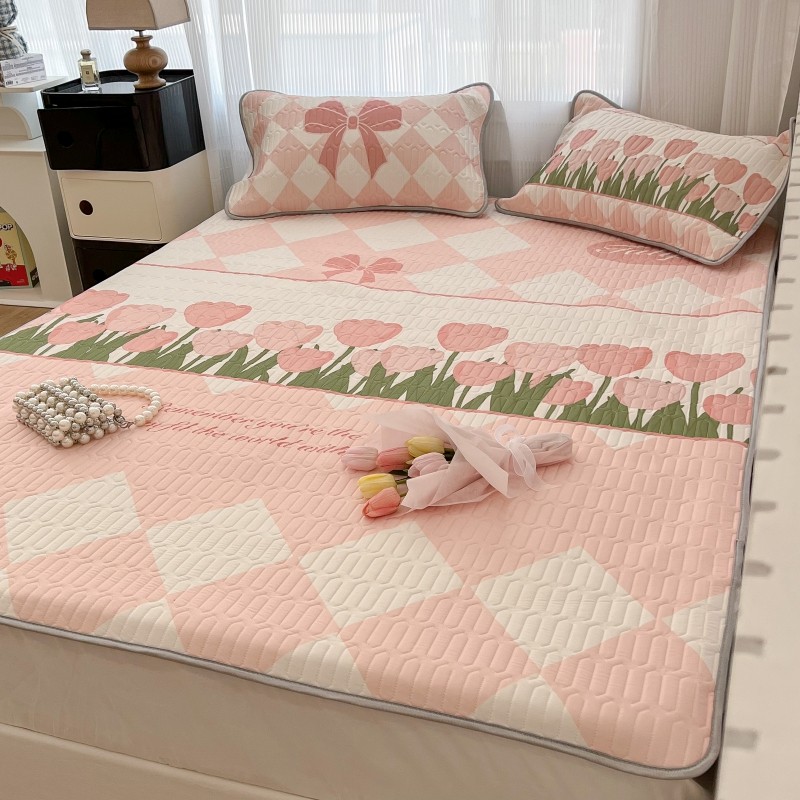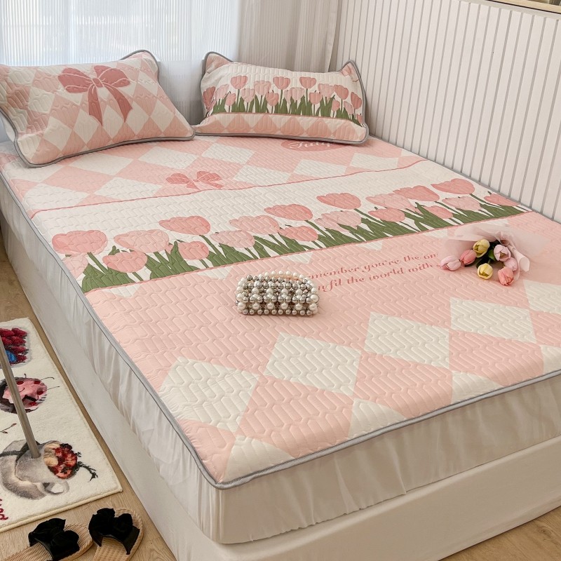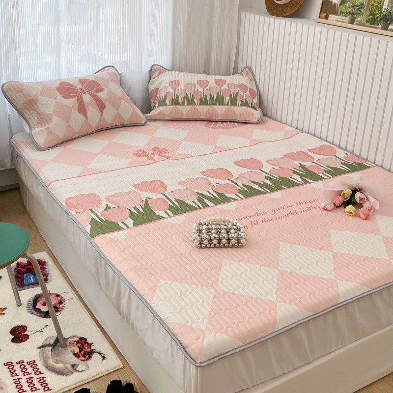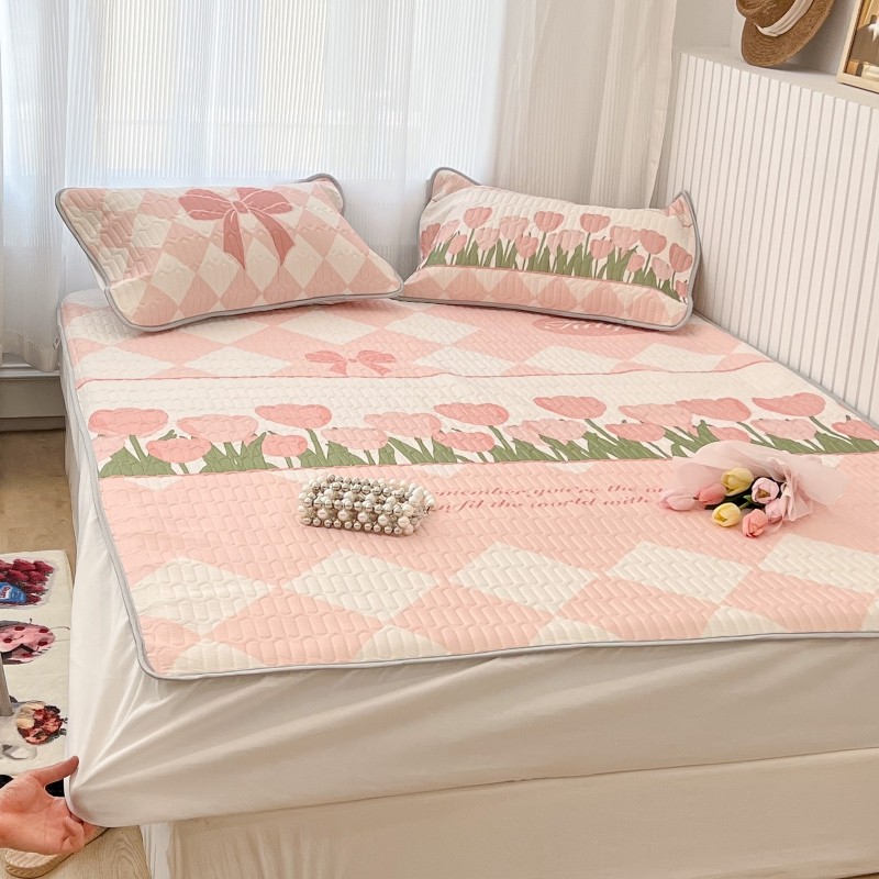 昔可 2022新款ins风小清新床笠款乳胶凉席三件套 床笠款-郁金朵朵