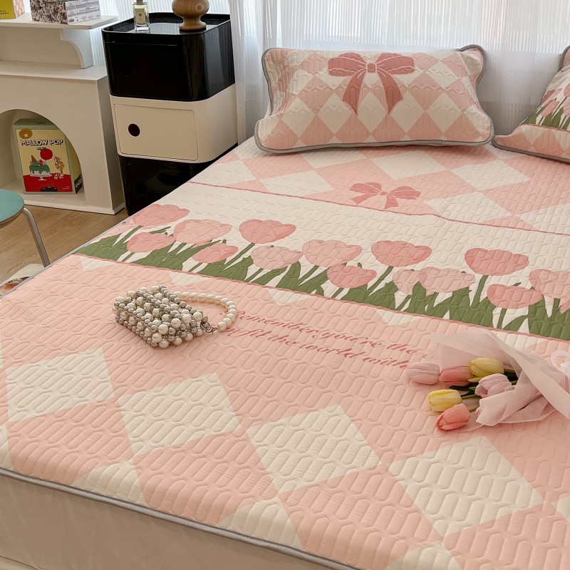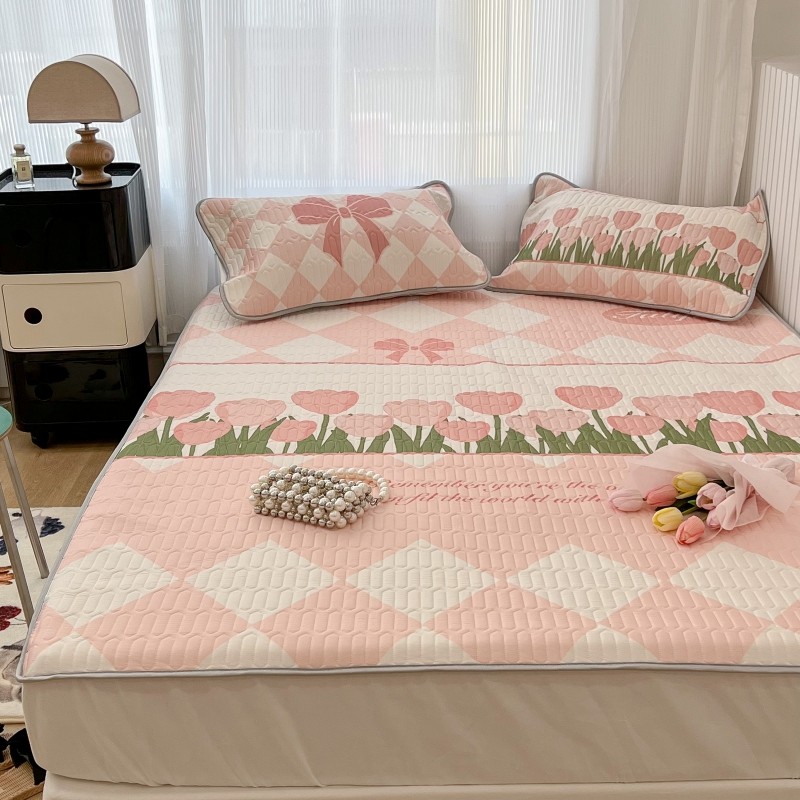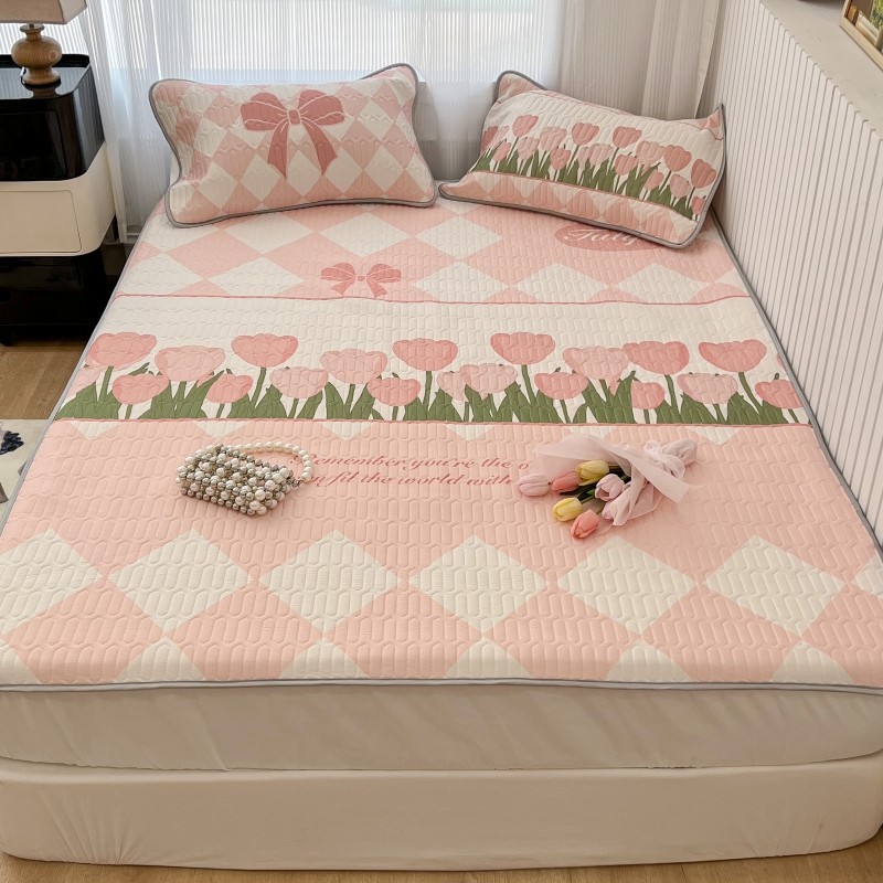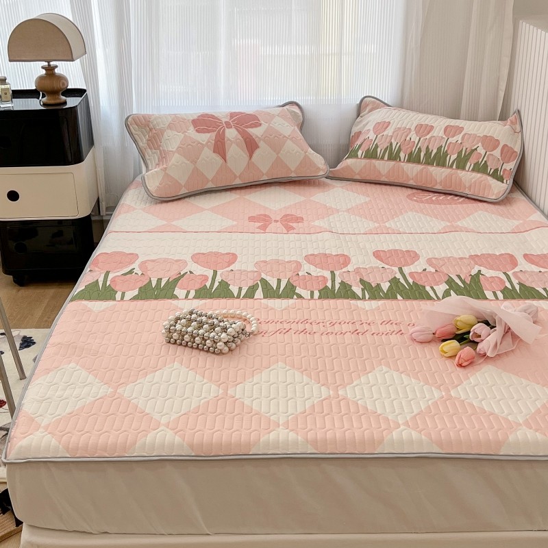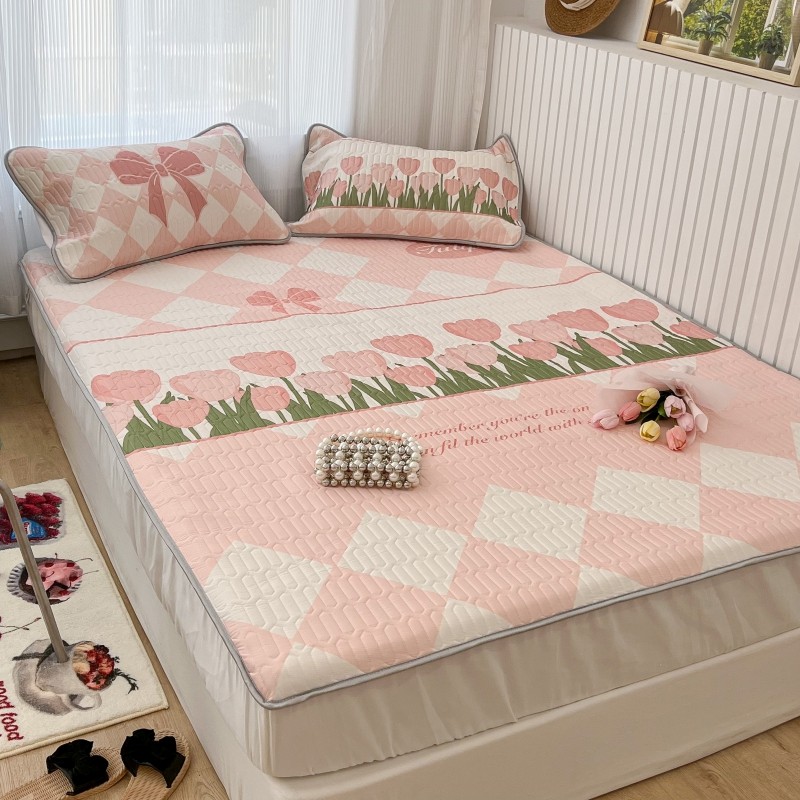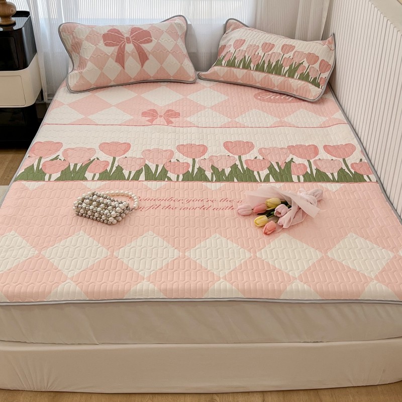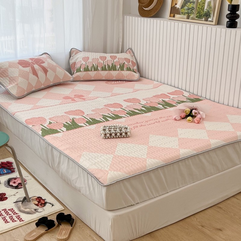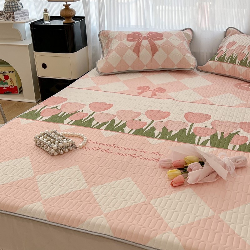 昔可 2022新款ins风小清新床笠款乳胶凉席三件套 床笠款-郁金朵朵