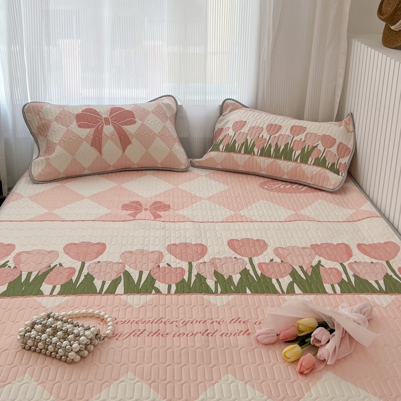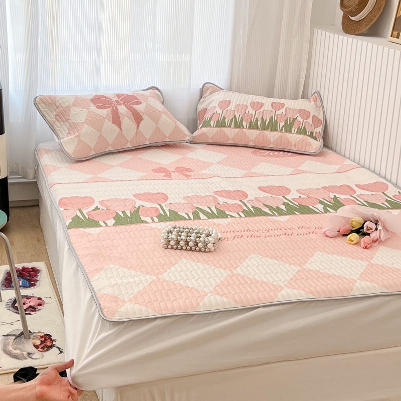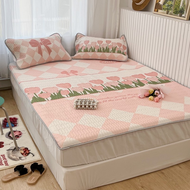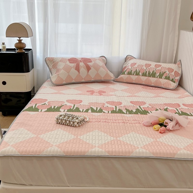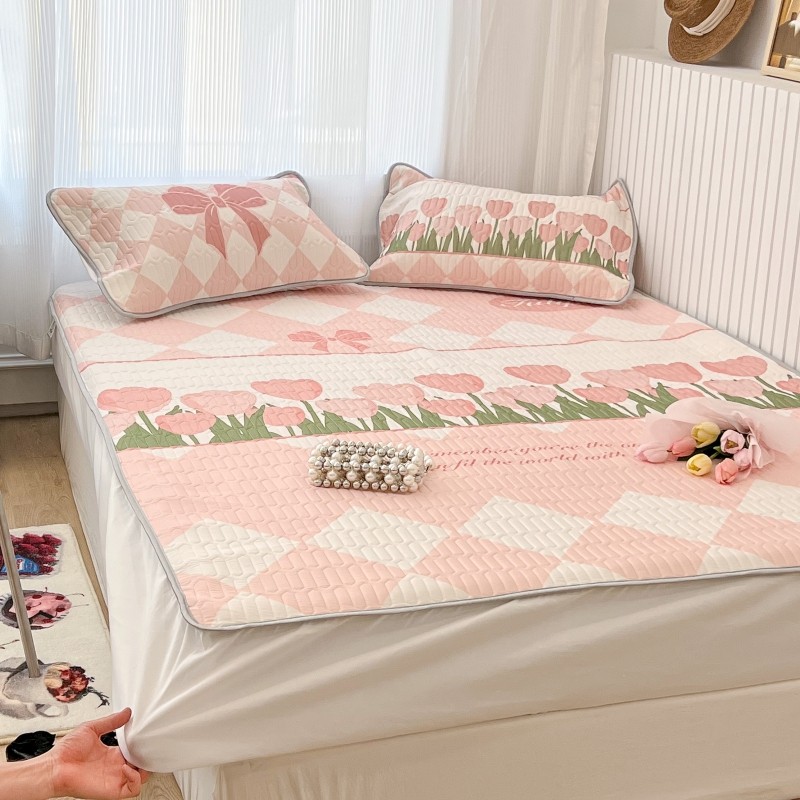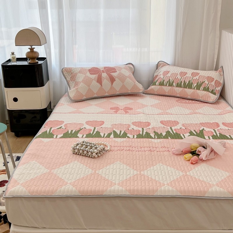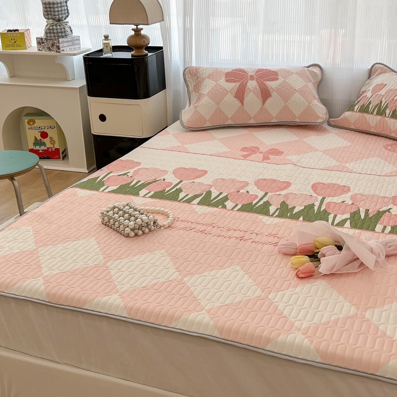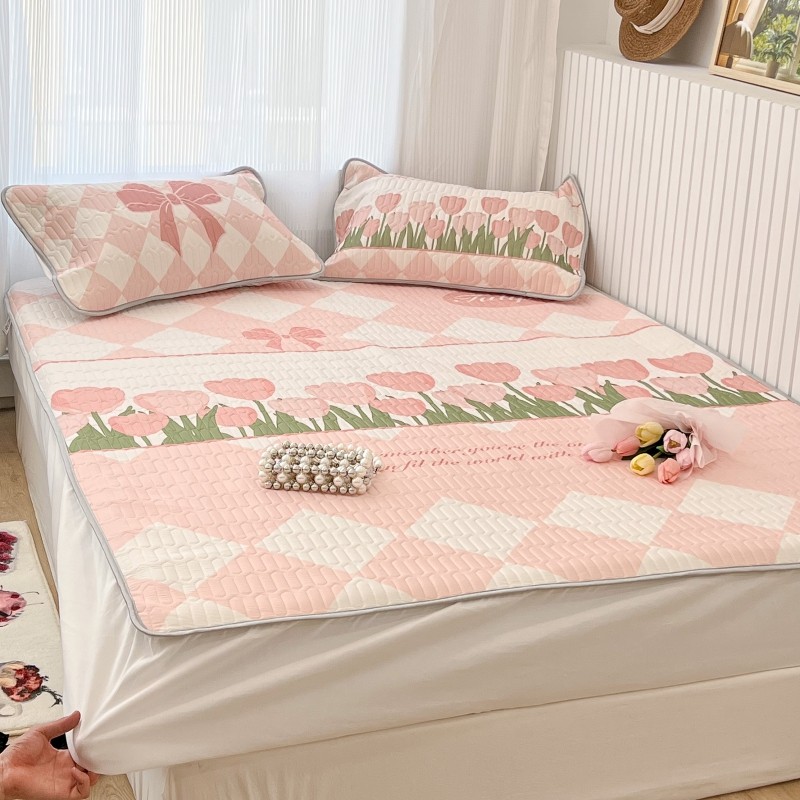 昔可 2022新款ins风小清新床笠款乳胶凉席三件套 床笠款-郁金朵朵
