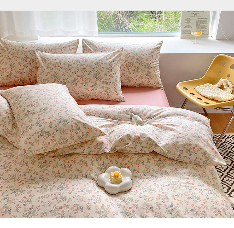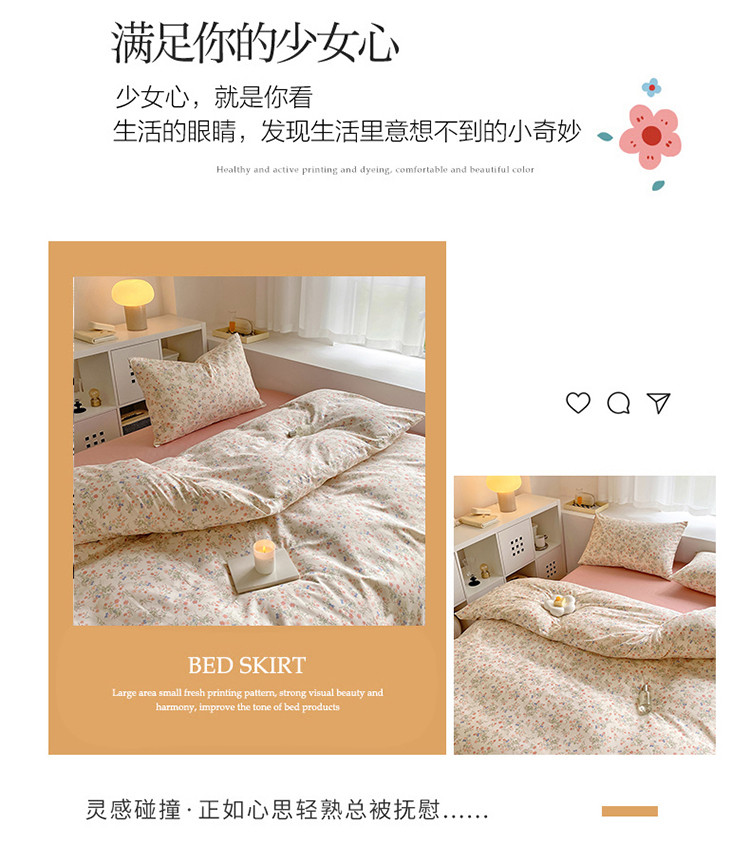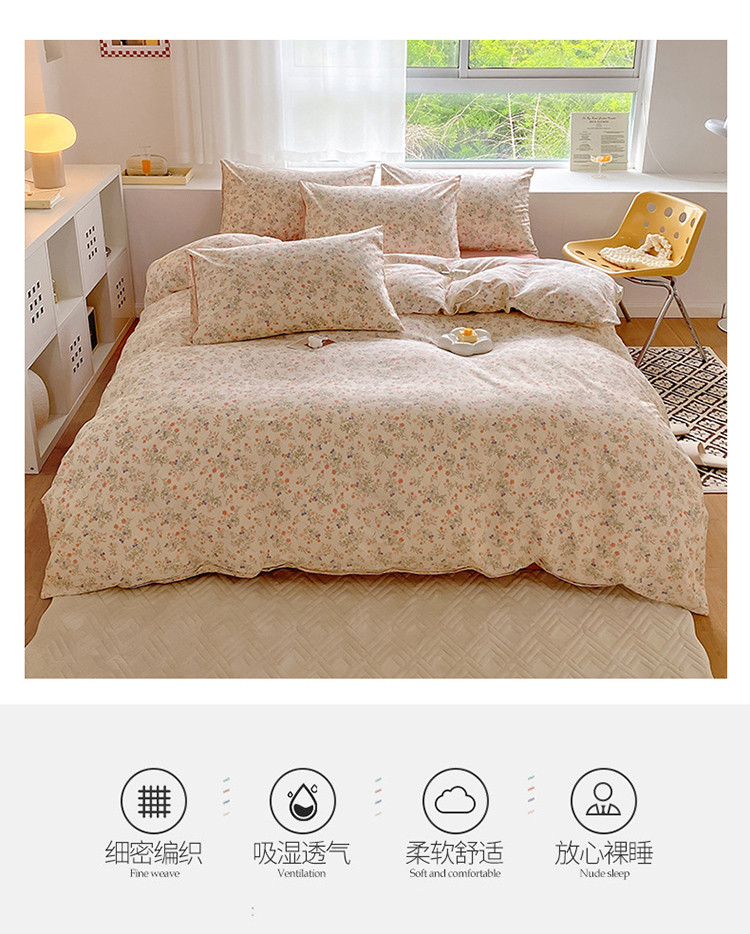 (总)田野 2022新款水洗棉小清新小碎花全棉四件套,花丛,花涧,绿婉,曼舞,桃夭,甜馨草莓,兔兔,银杏