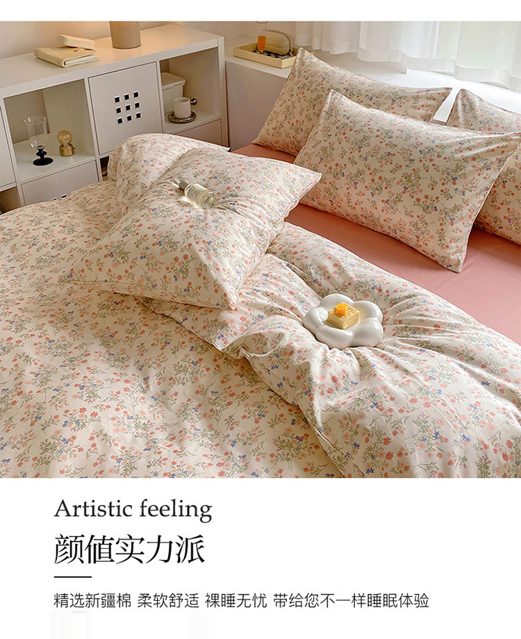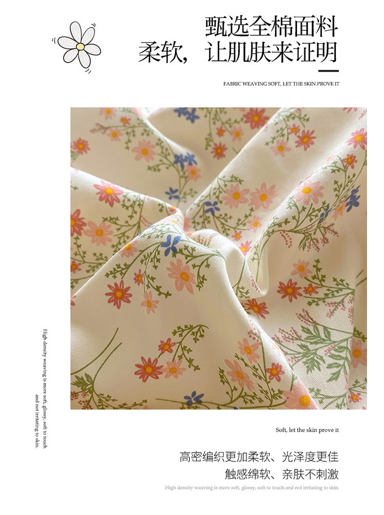 商品名称:田野 2022新款13372全棉小清新印花四件套 花束