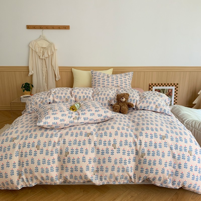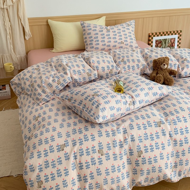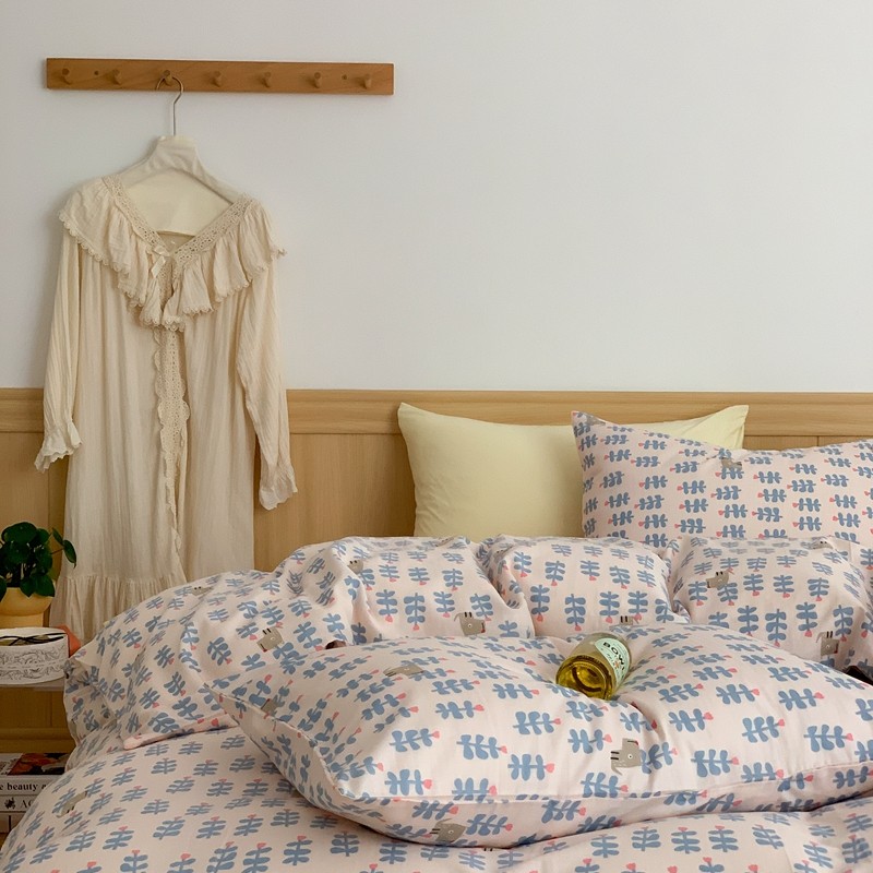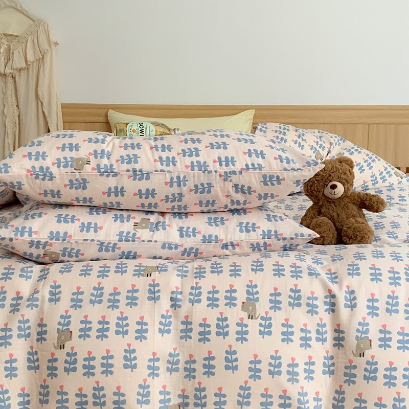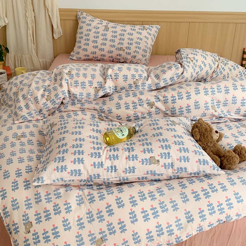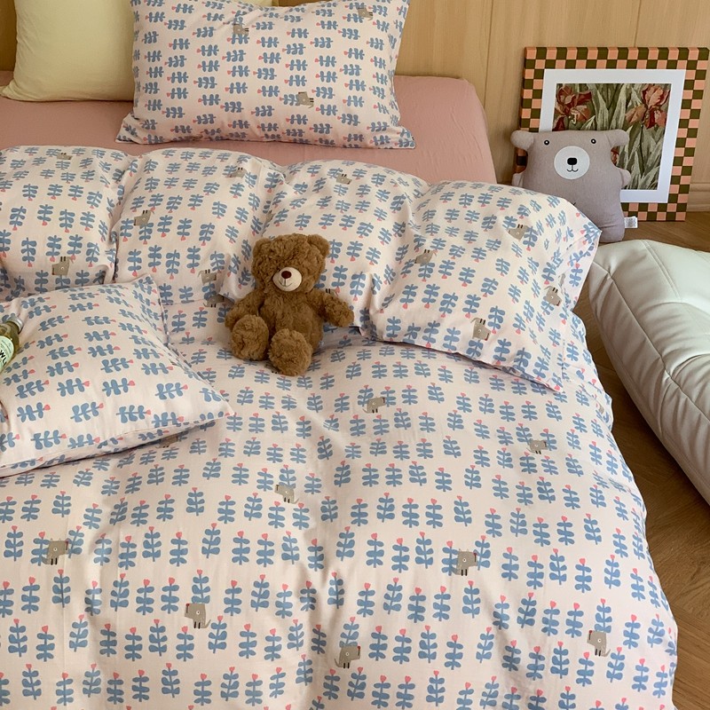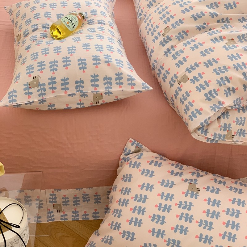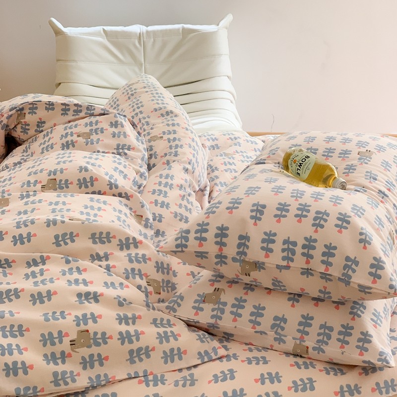 金丝鸟 2022新款全棉双层纱四件套 花丛狗