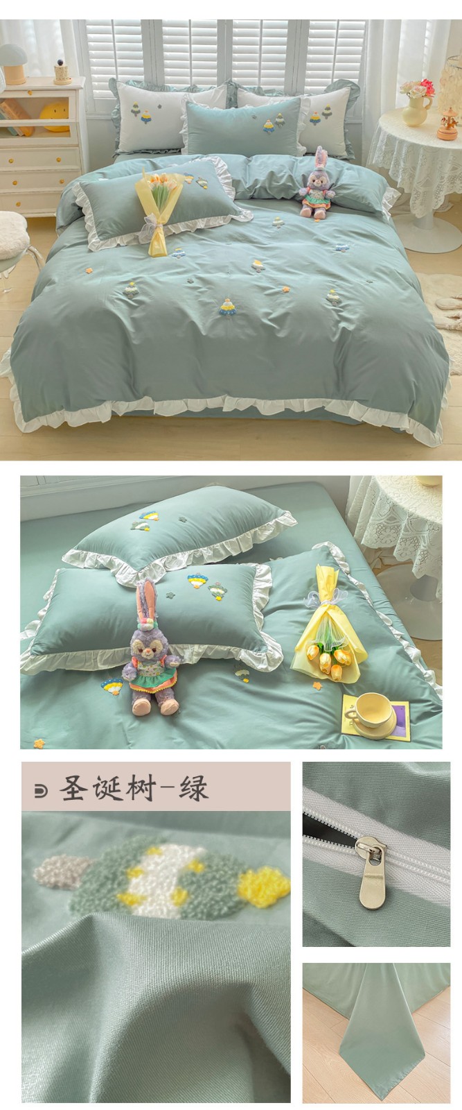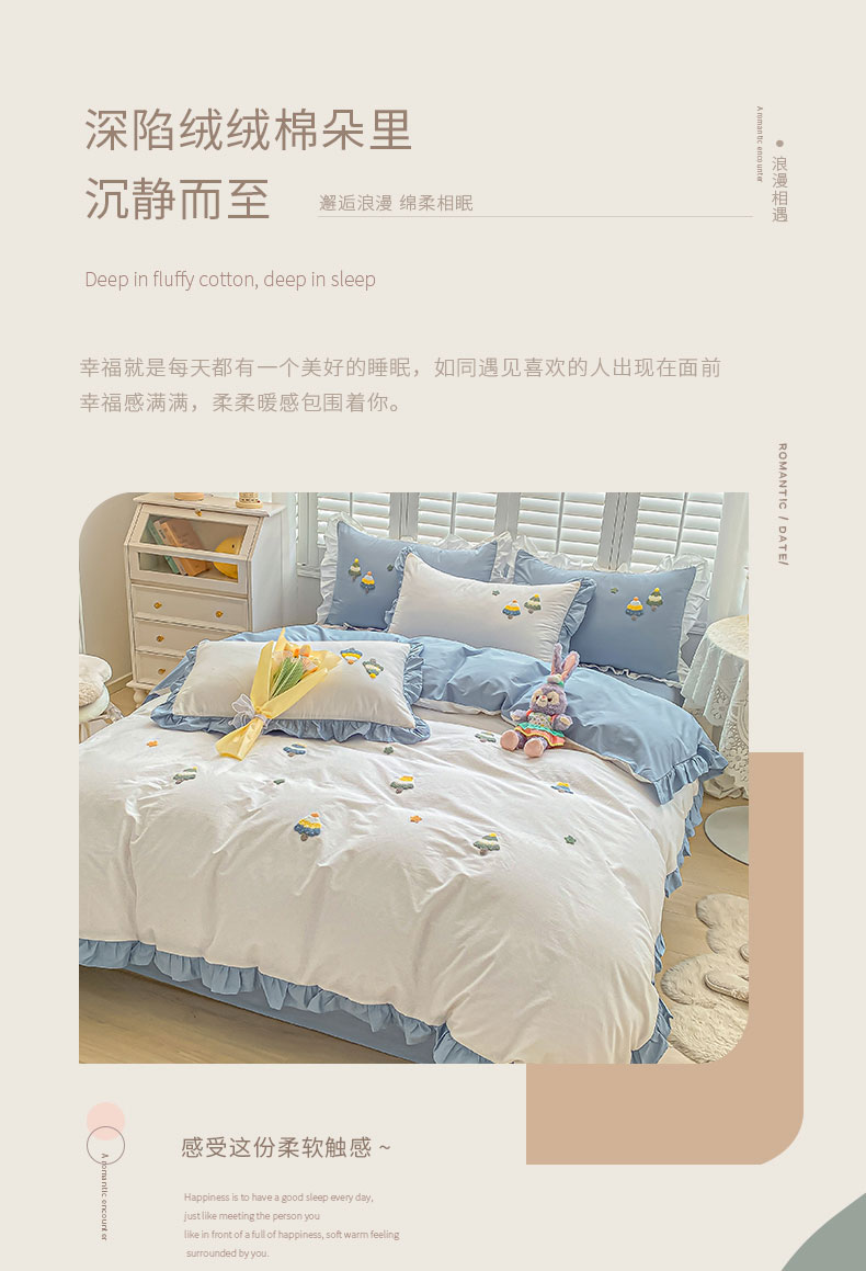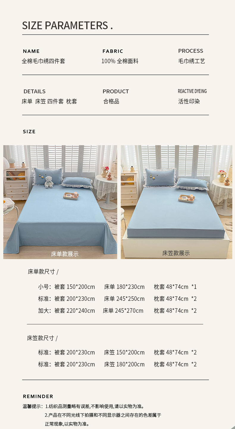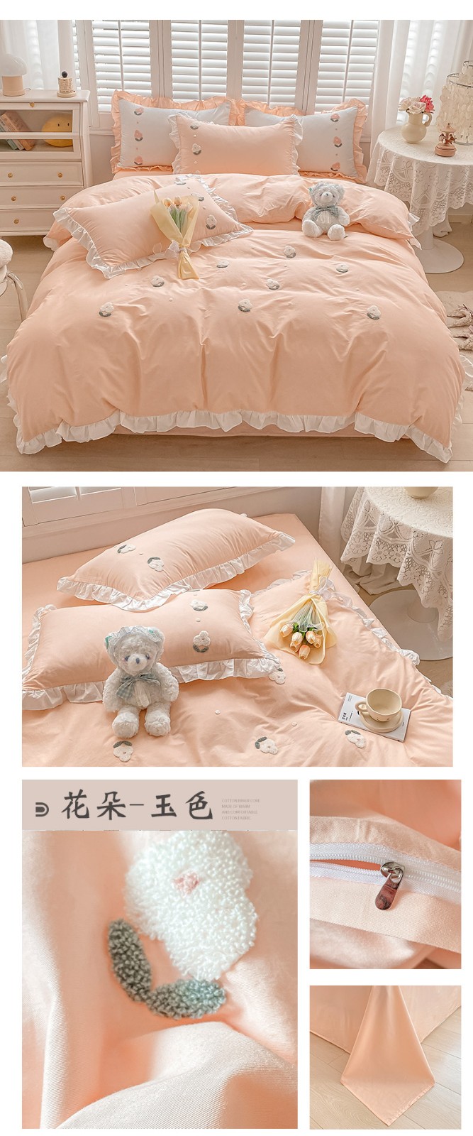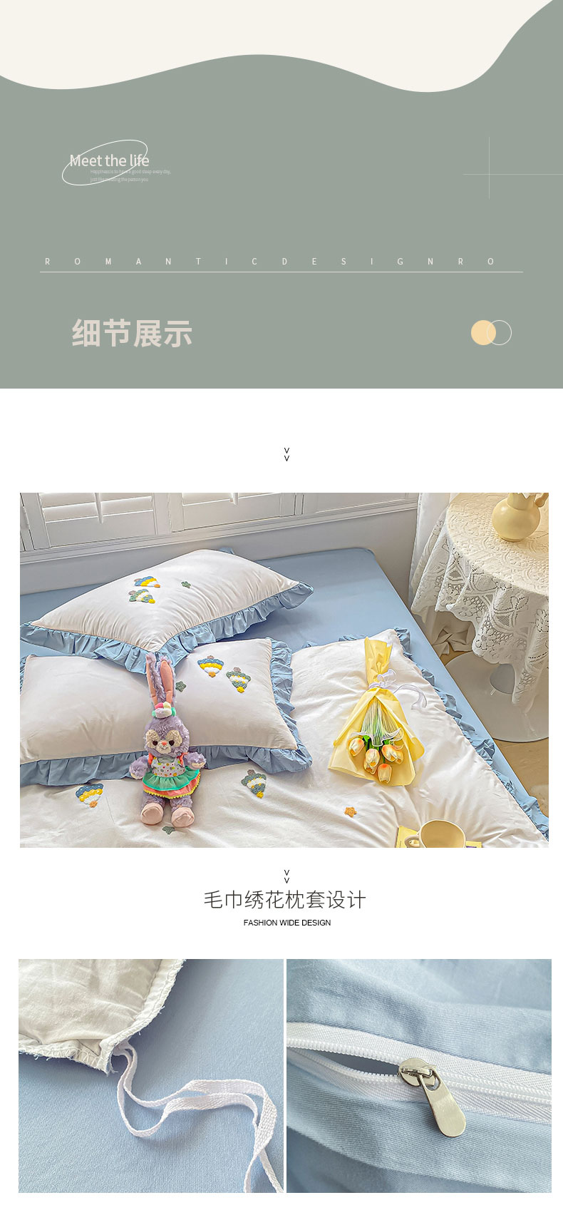 当前位置: 91家纺网 > 商品网购 > 床品套件 > 四件套 > 毛巾绣四件套 > (总)泽西新款全棉小清新毛巾绣少女心荷叶边四件套床单床笠三件套