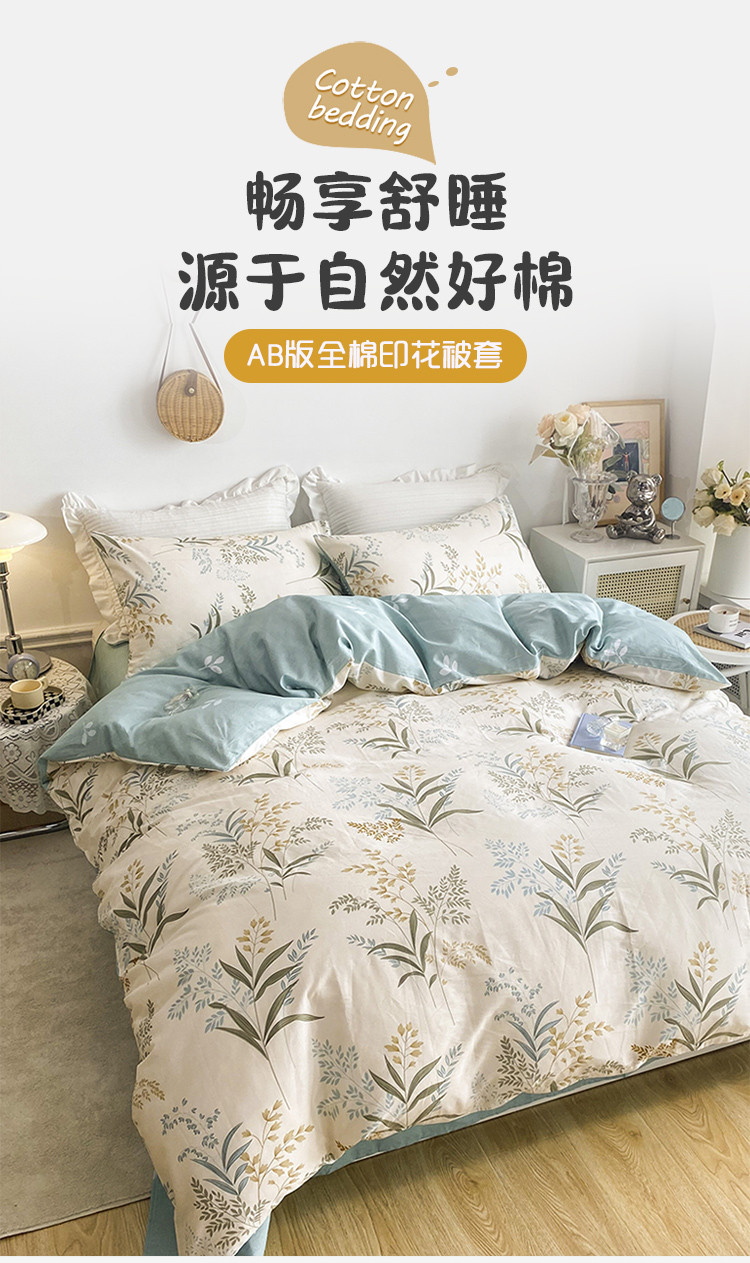 黑马家居2024新款全棉印花喷气12868套件-单被套 悠兰,悠兰