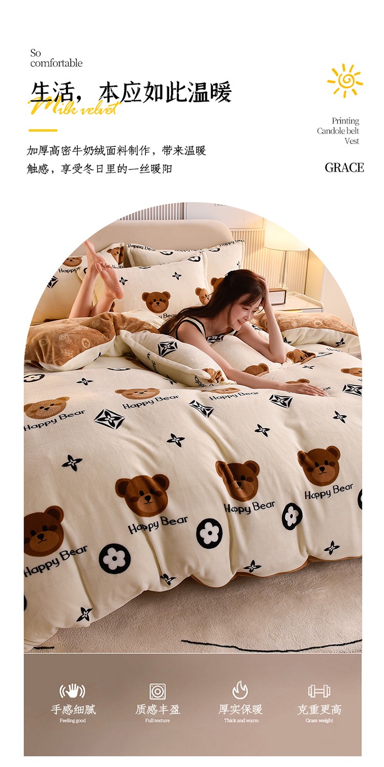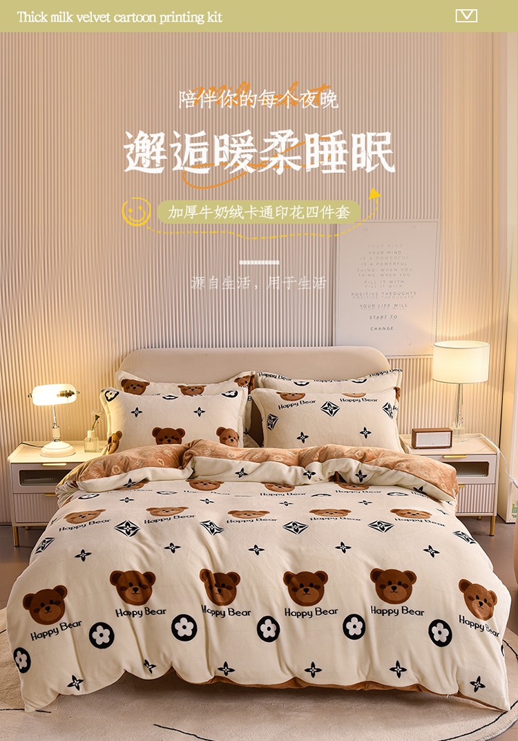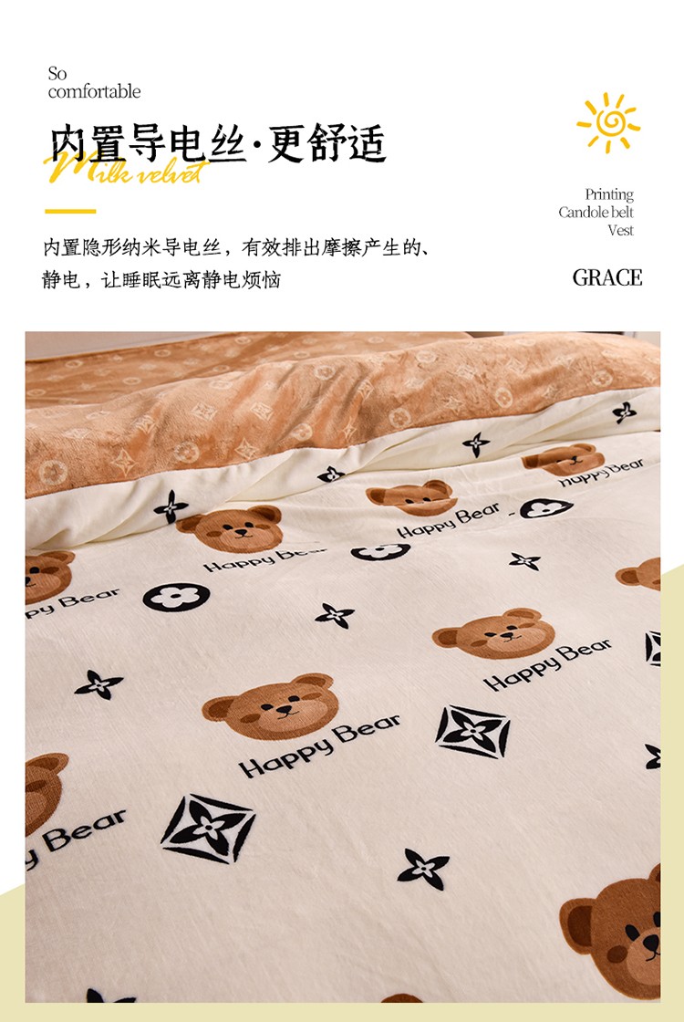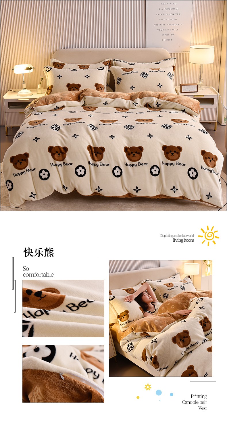 商品名称:同田 2023新款牛奶金貂绒四件套印花保暖法莱水晶绒 快乐熊