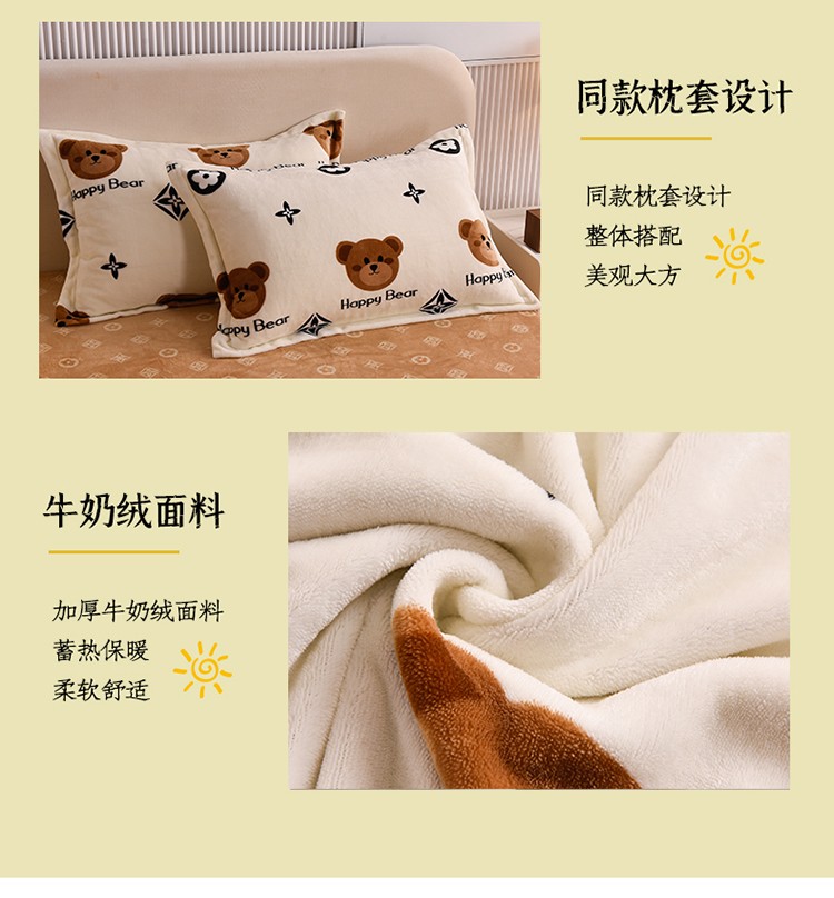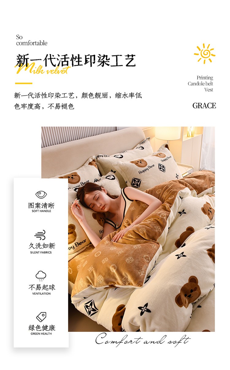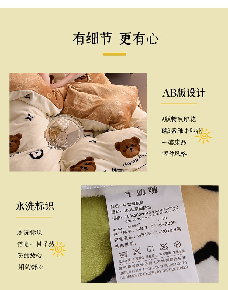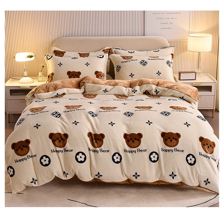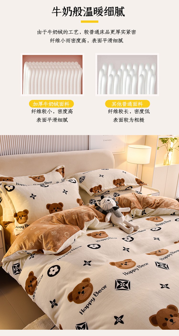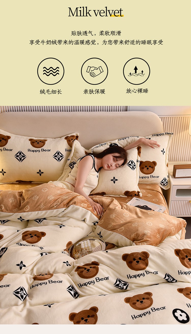 商品名称:同田 2023新款牛奶金貂绒四件套印花保暖法莱水晶绒 快乐熊