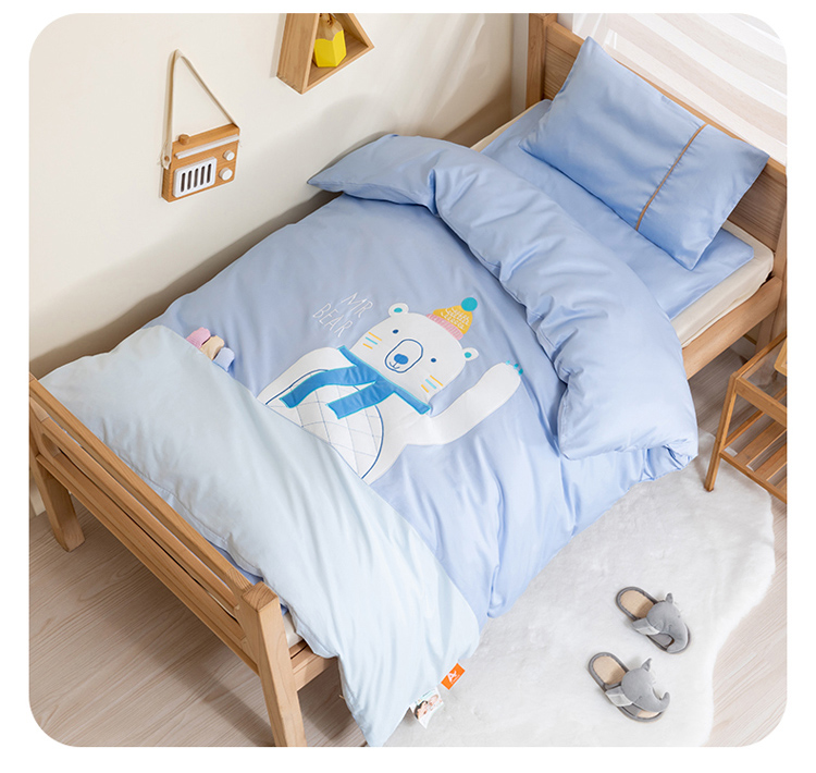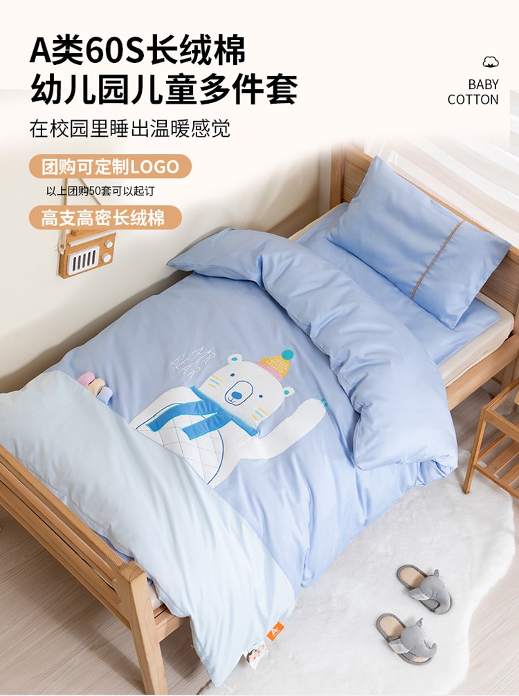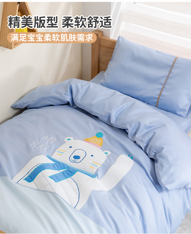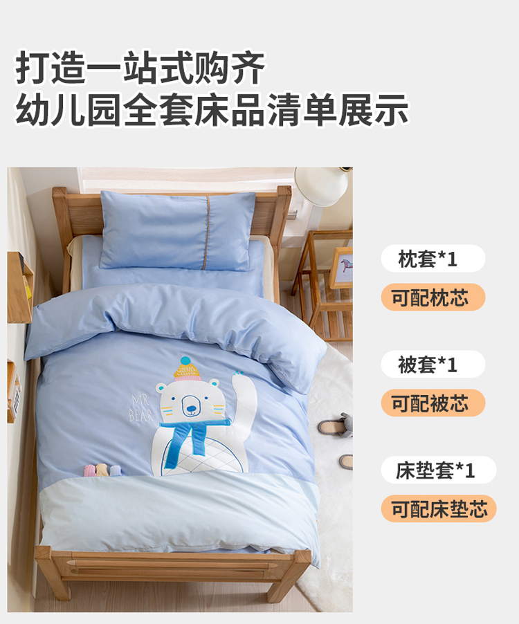 当前位置: 91家纺网 > 商品网购 > 床品套件 > 三件套 > 喜多兔 2022新60s长绒棉纯棉幼儿园三件套-蓝色微笑小熊