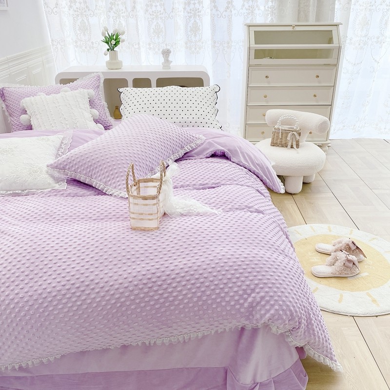 (总)玛奇朵 2025新款韩系少女全棉立体提花四件套-,青纱粉黛