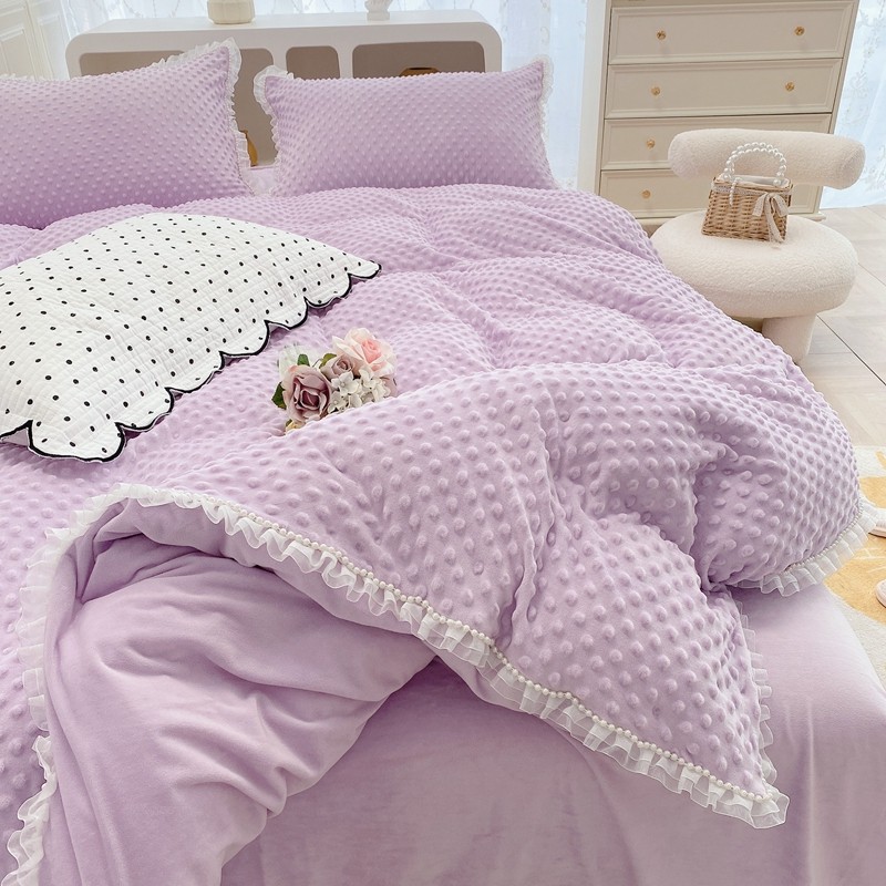 玛奇朵 2022升级版A类豆豆绒梦露系列四件套 梦露-丁香紫
