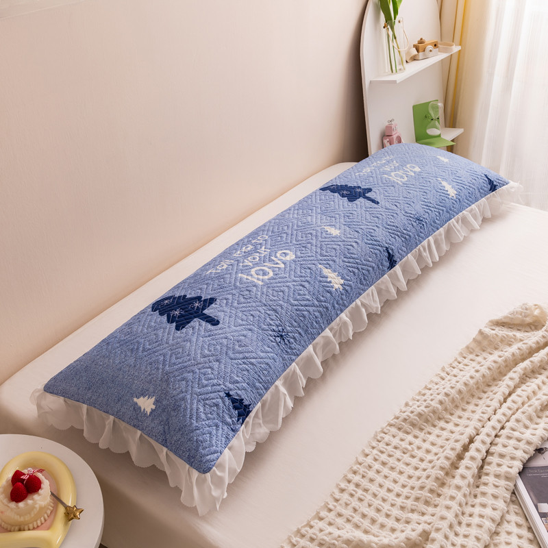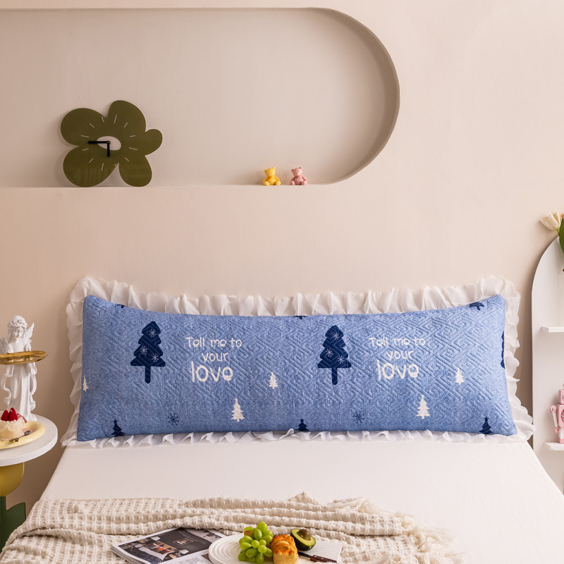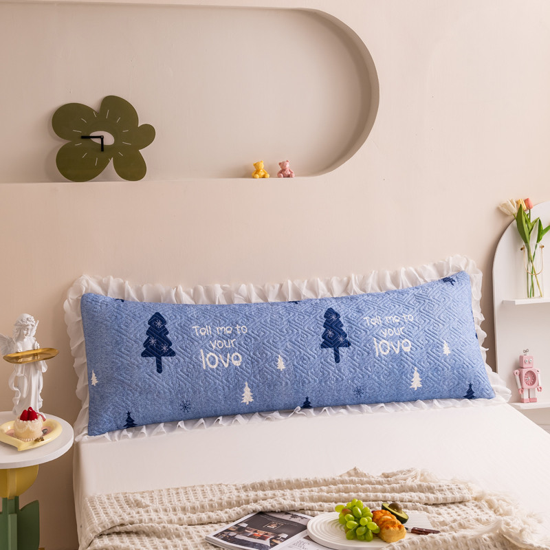 新款磨毛夹棉花边双人长枕套 麋鹿森林