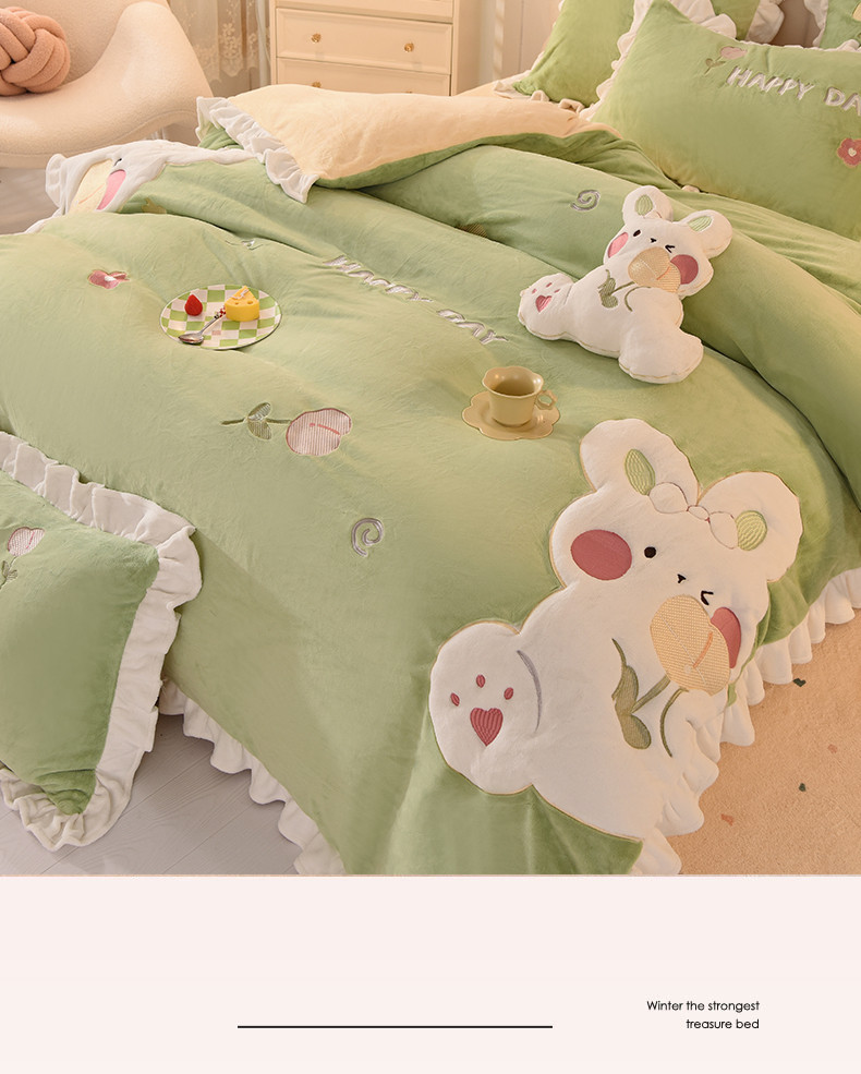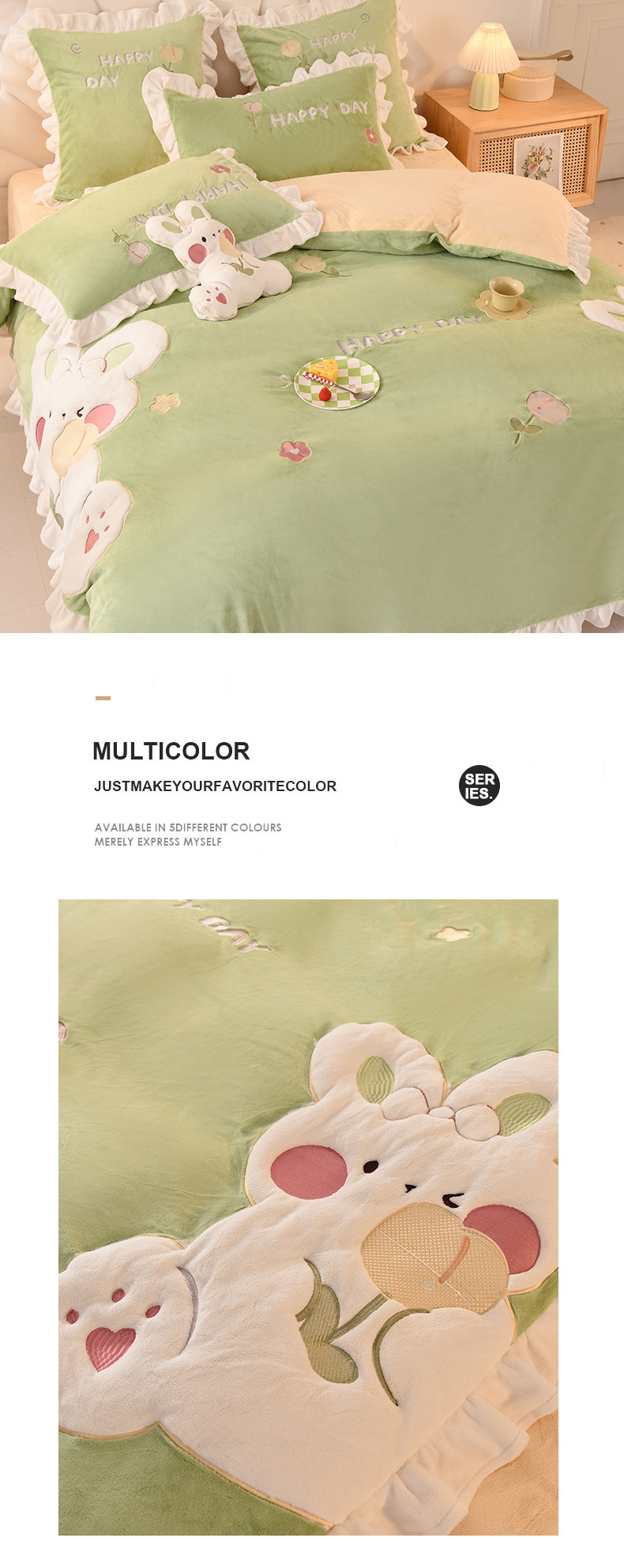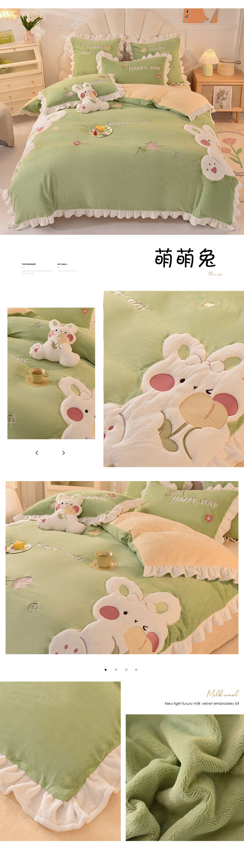 柠馨 2022新款230g牛奶绒贴布绣花可爱卡通四件套萌萌兔