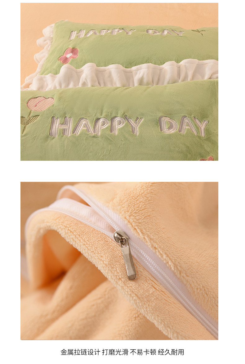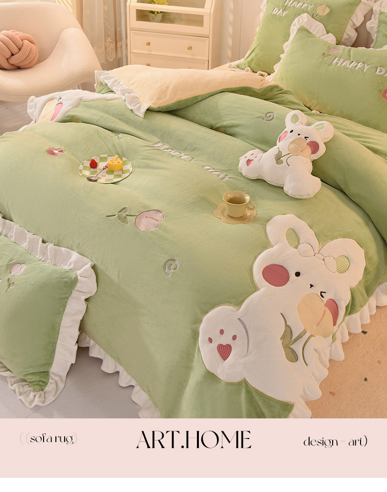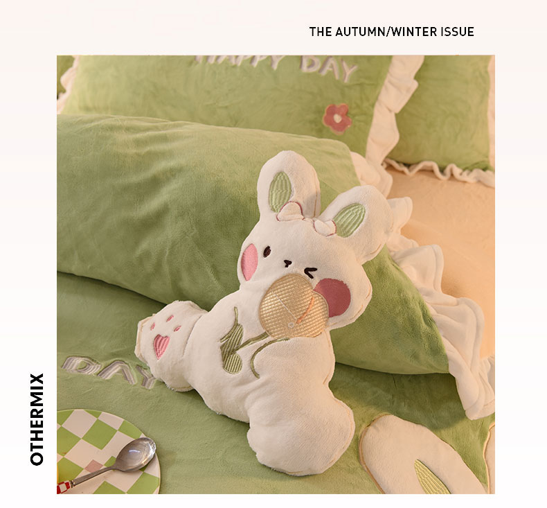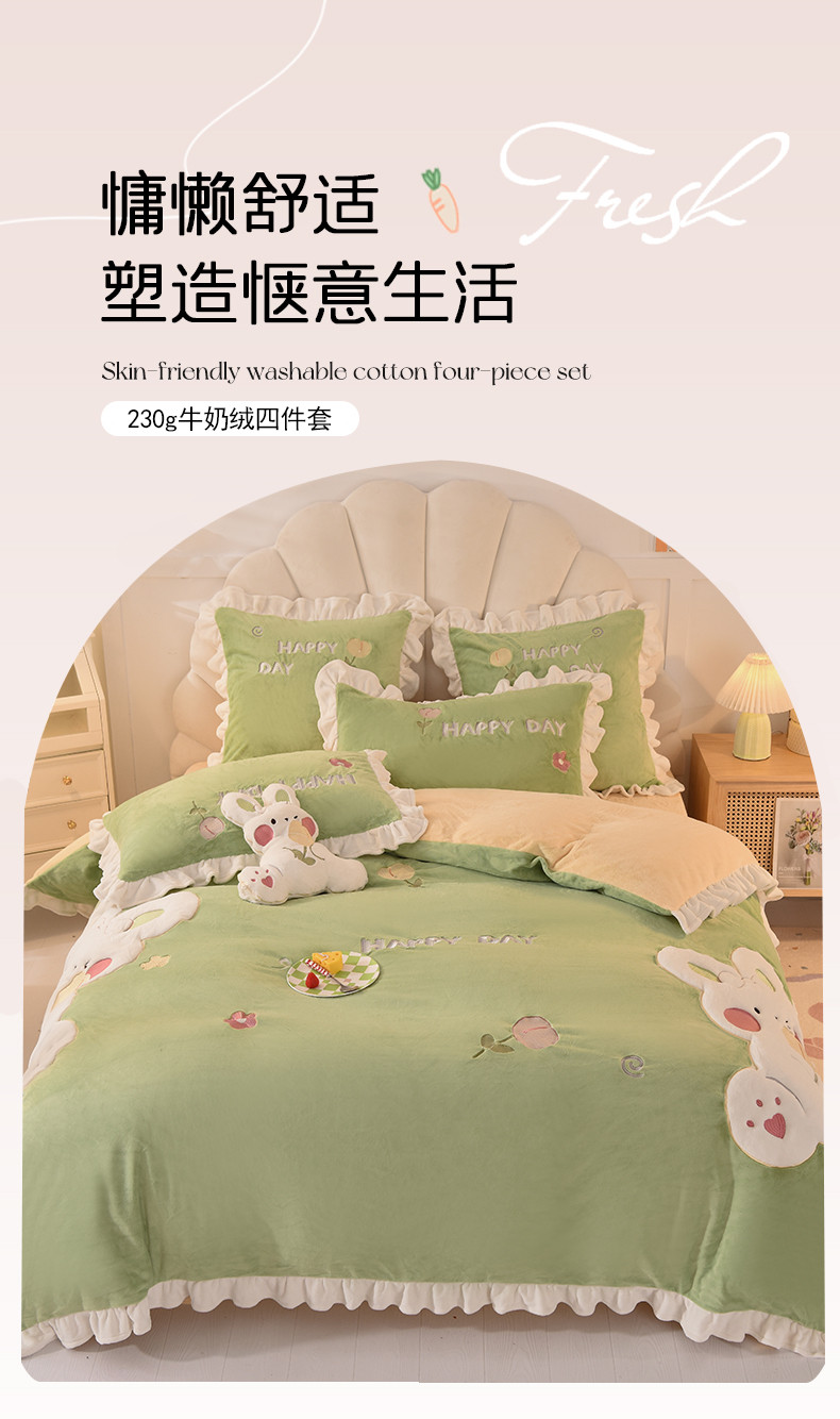 柠馨 2022新款230g牛奶绒贴布绣花可爱卡通四件套萌萌兔