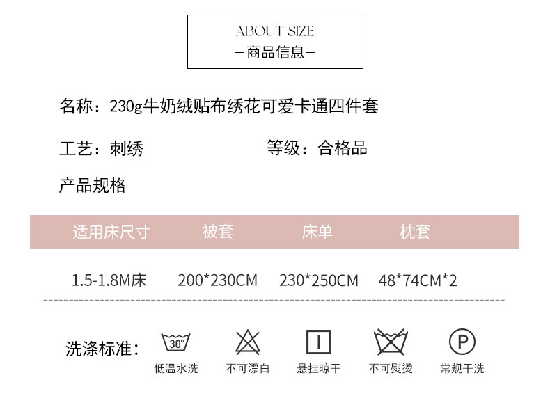 商品名称:柠馨 2022新款230g牛奶绒贴布绣花可爱卡通四件套萌萌兔