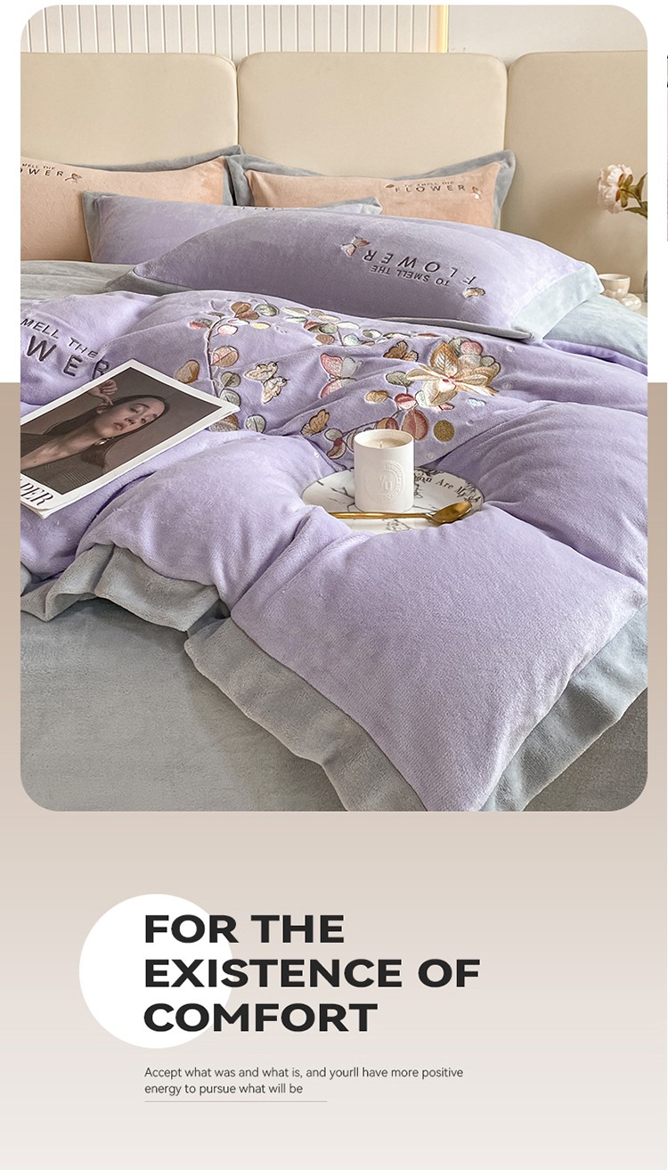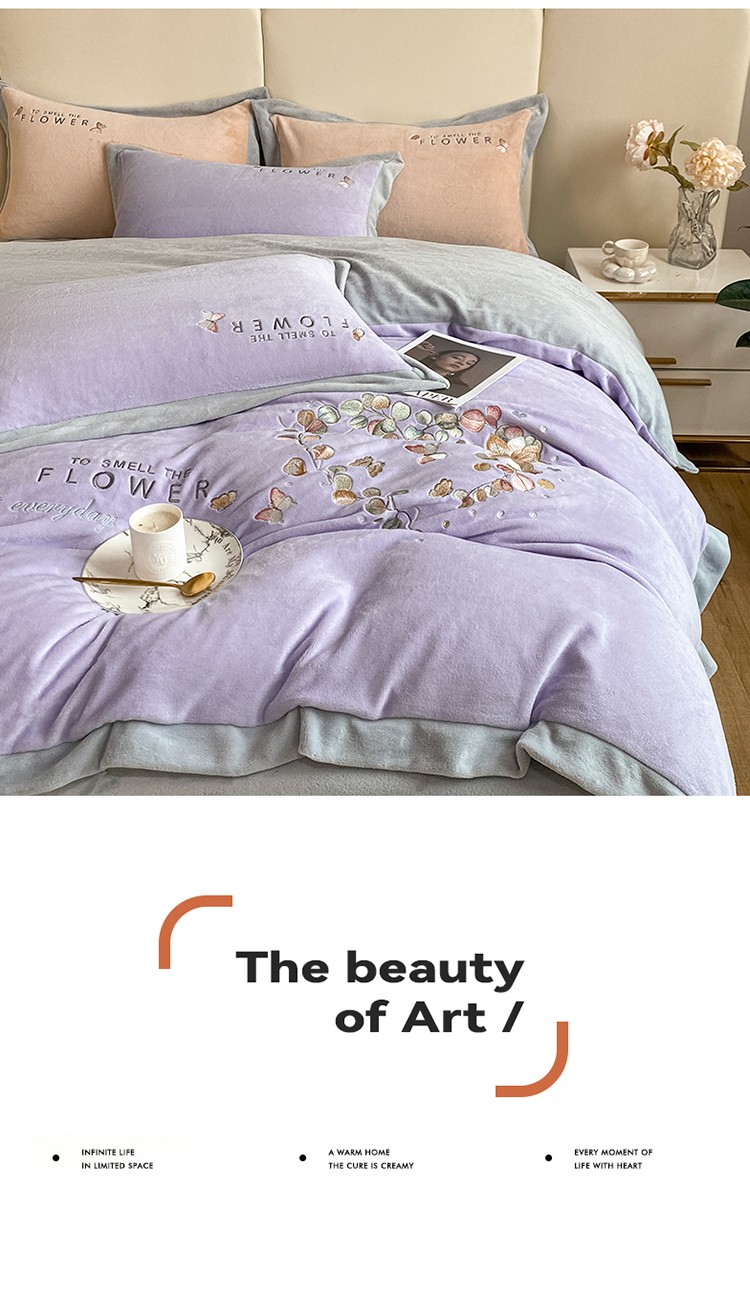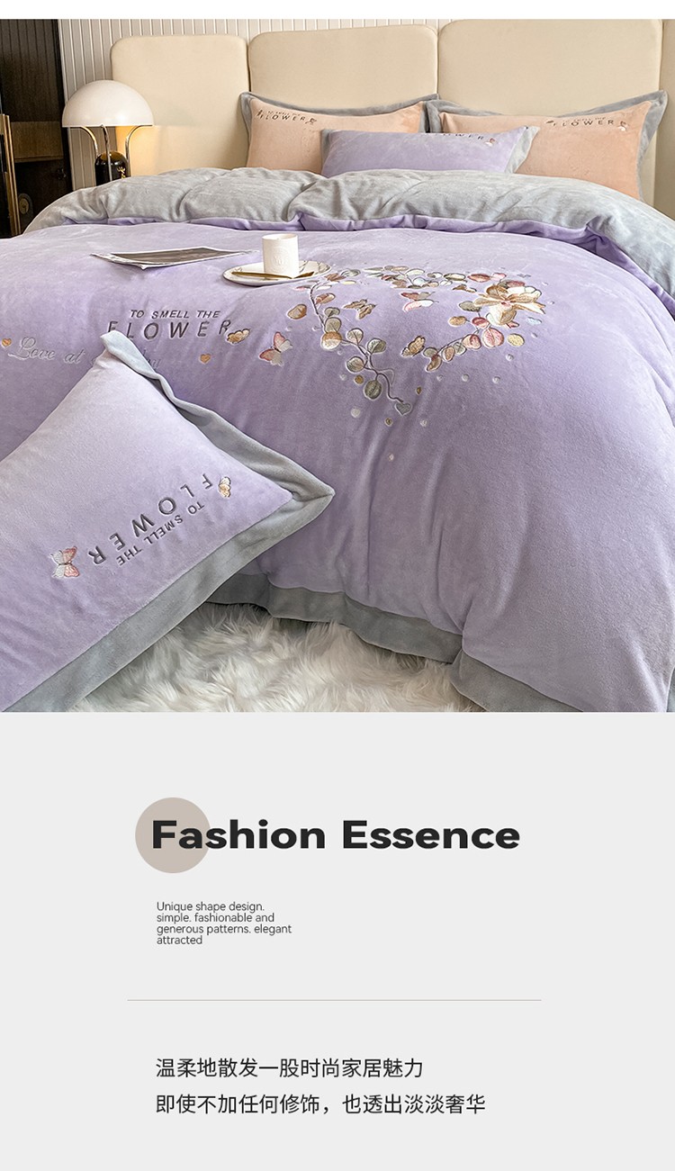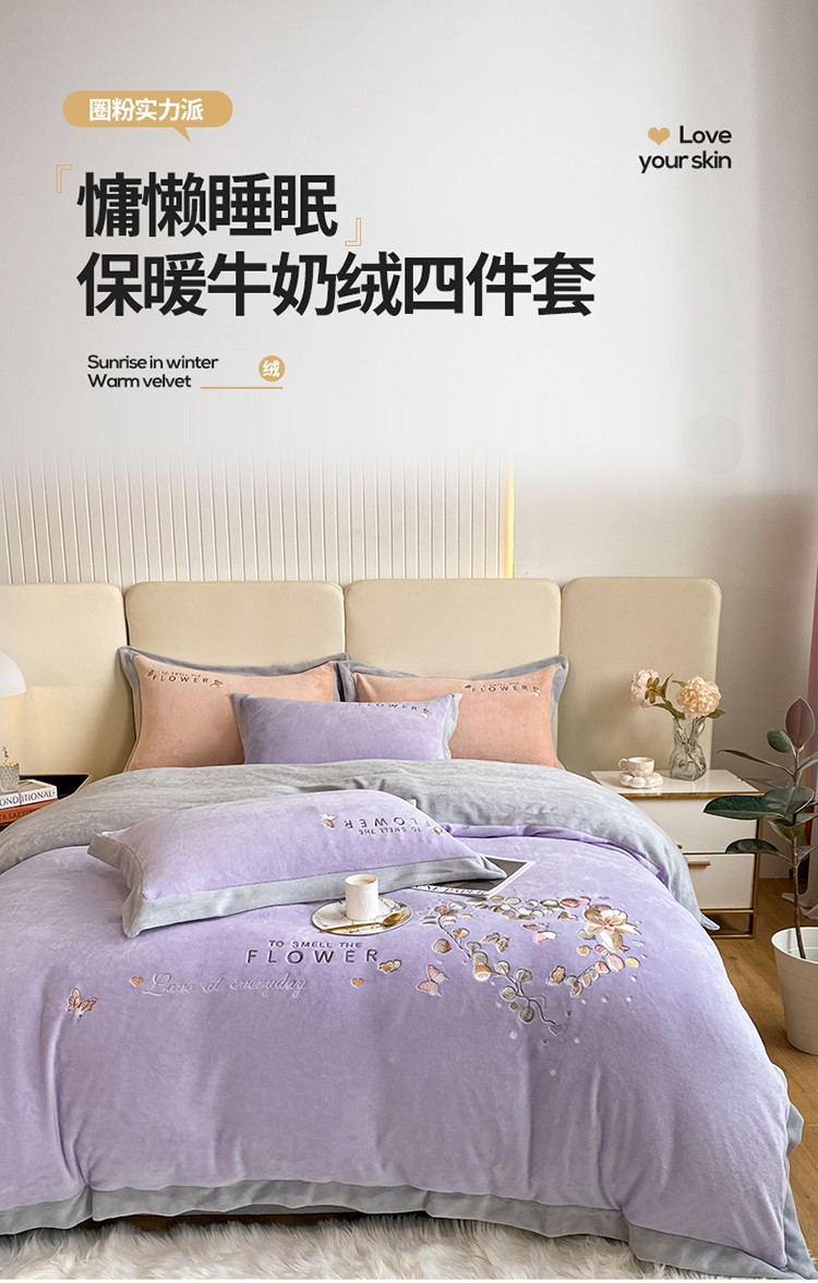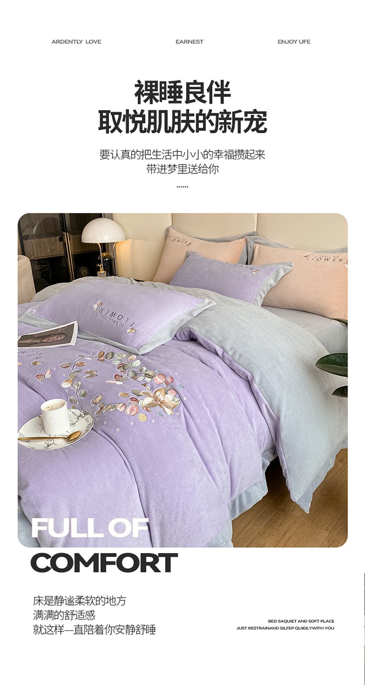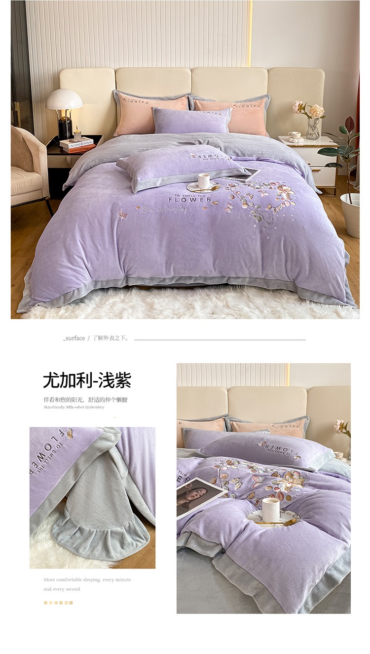七七 2025新款绣花牛奶绒四件套尤加利系列 尤加利-浅紫