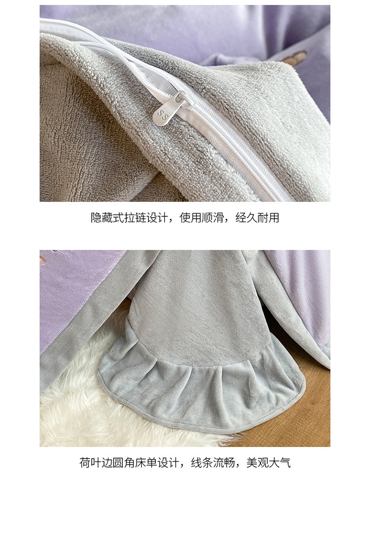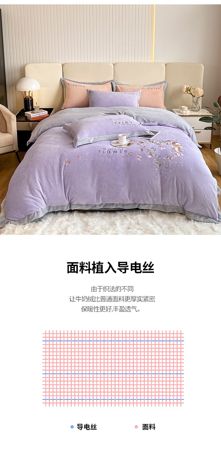 商品名称:七七 2025新款绣花牛奶绒四件套尤加利系列 尤加利-浅紫