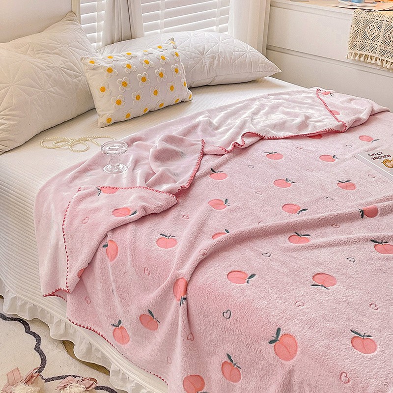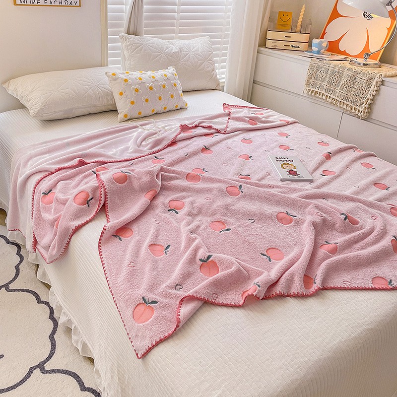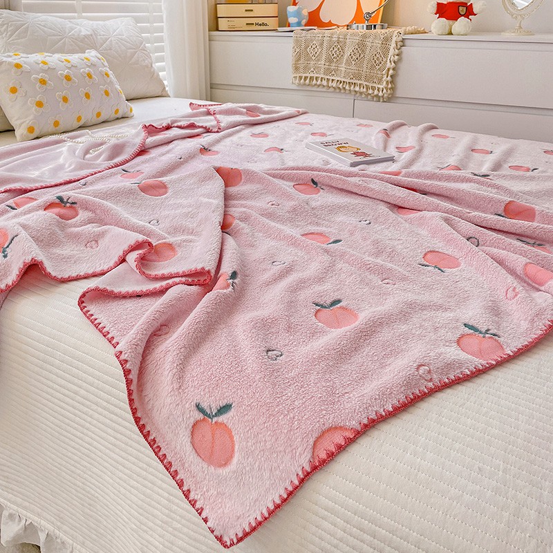 寐居 2022新款云朵绒卡通小毛毯盖毯 水蜜桃-粉