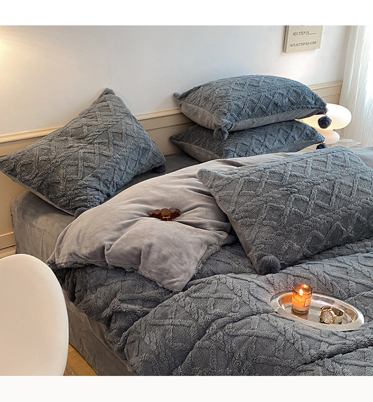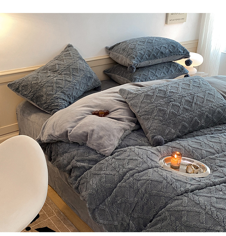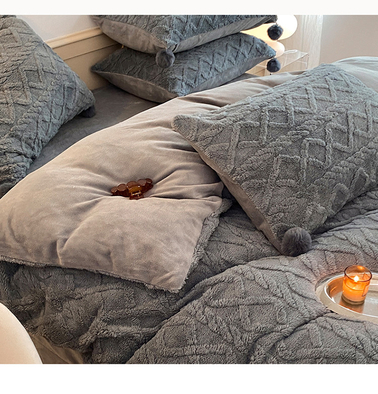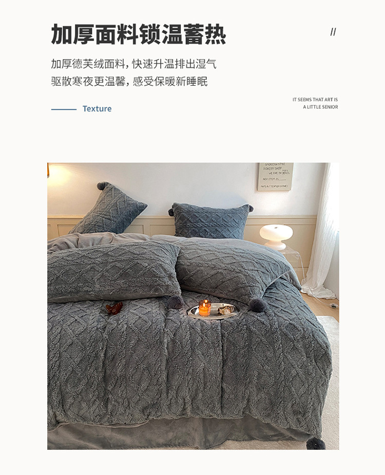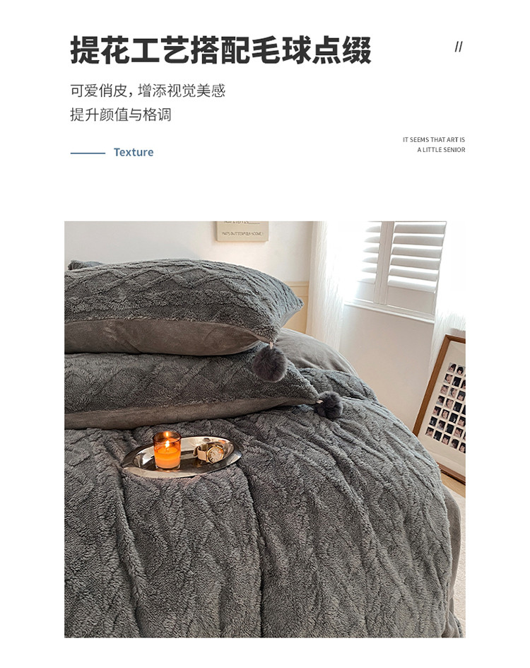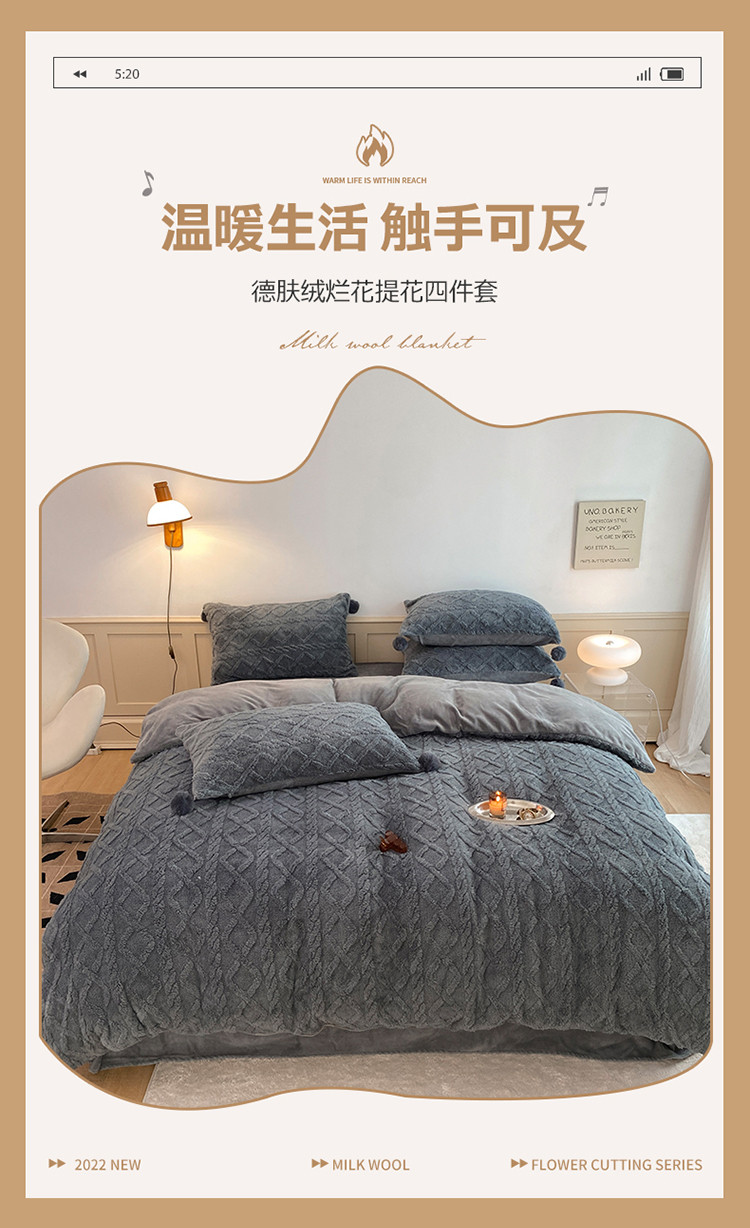 眠屿 2022新款提花烂花工艺四件套 绅士灰
