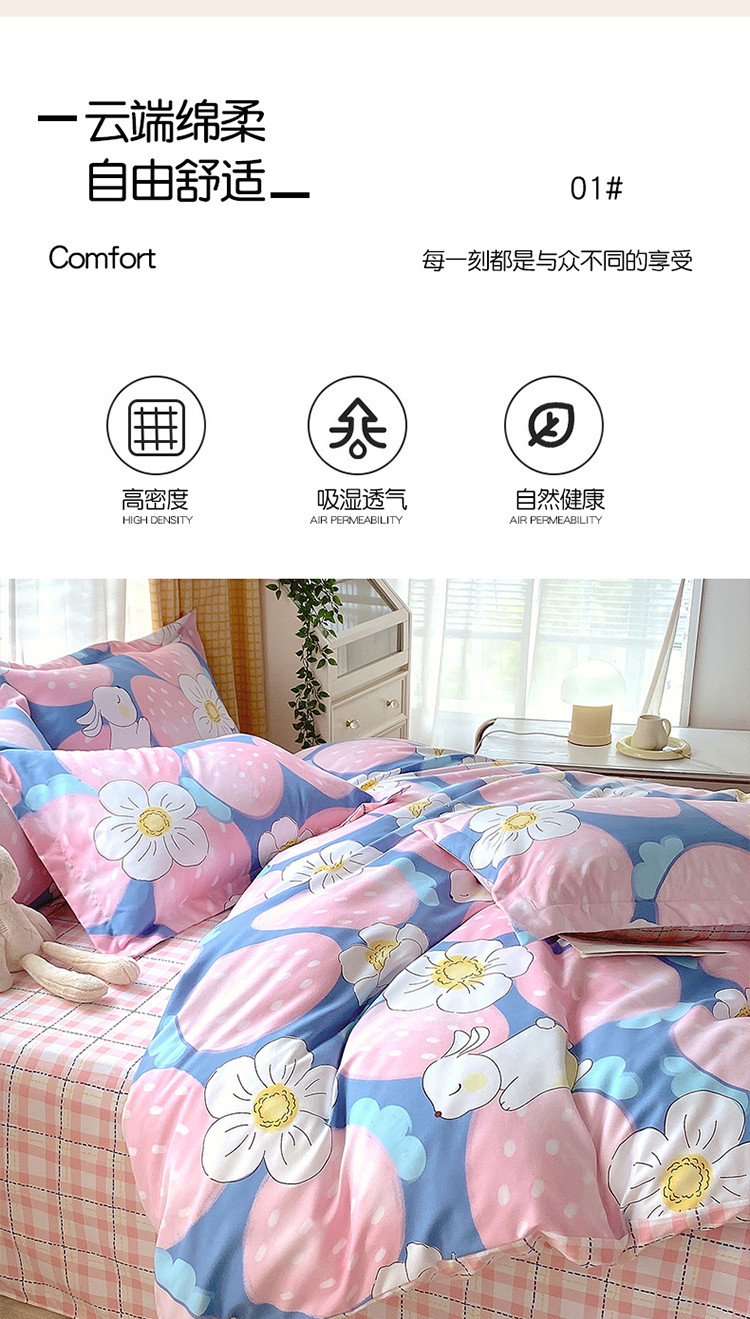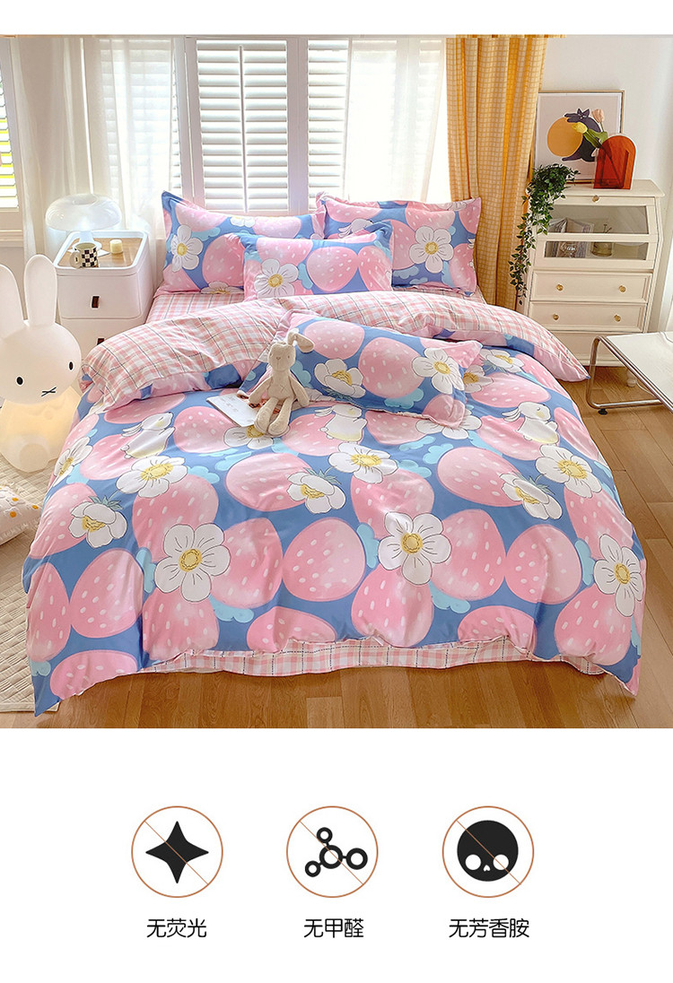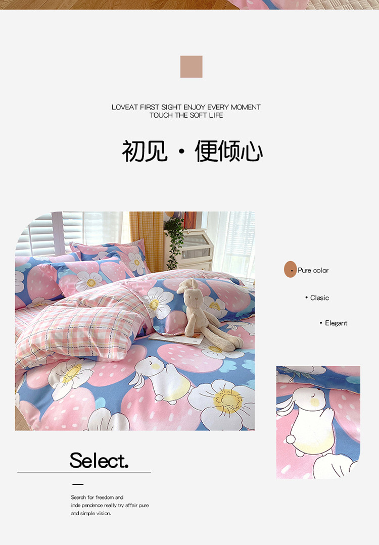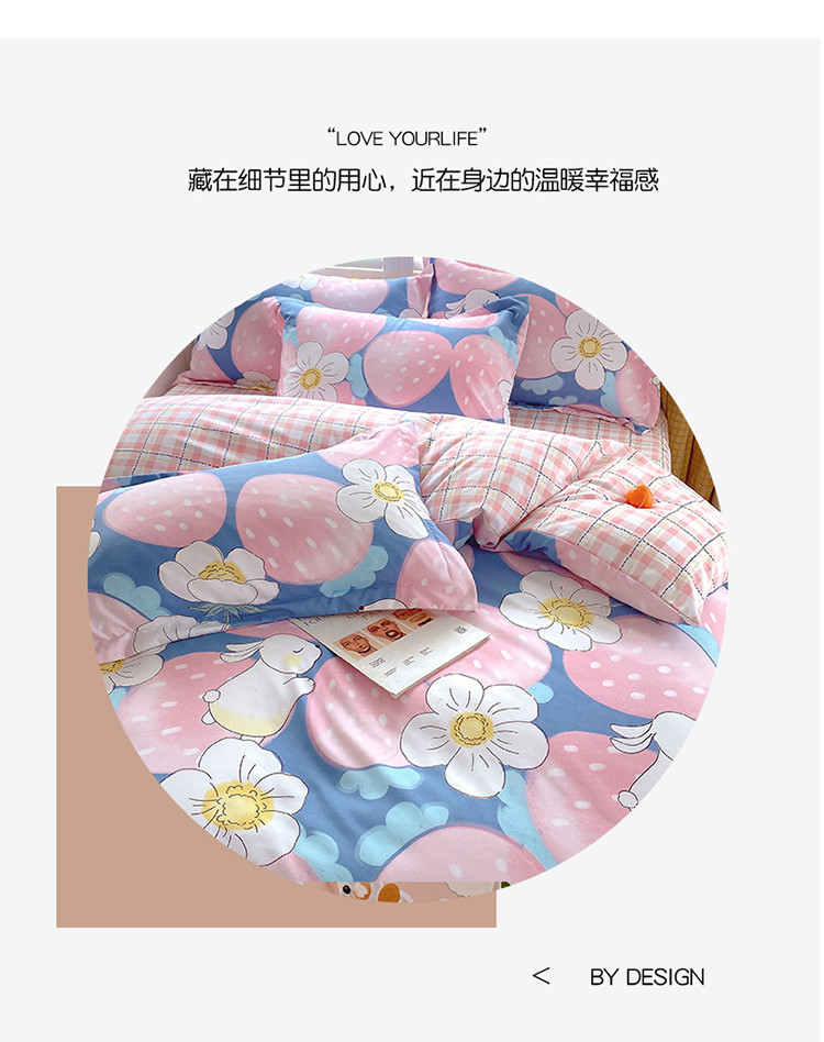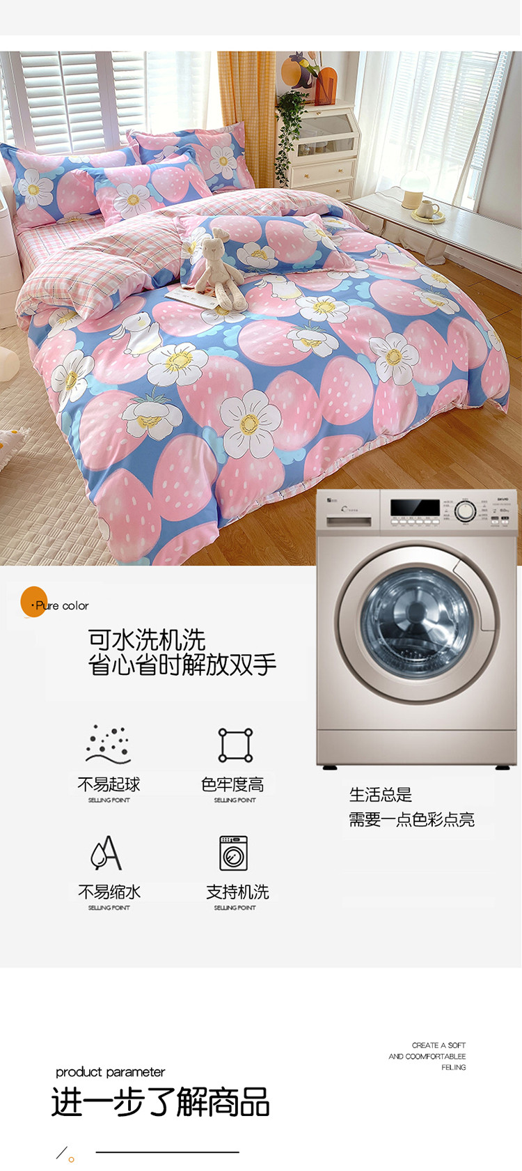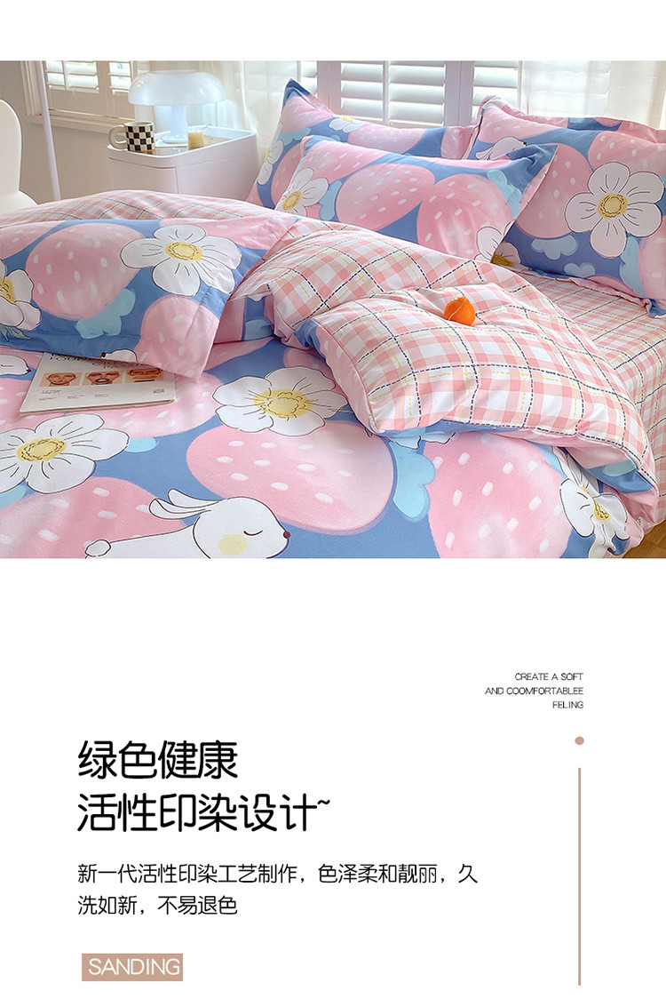 当前位置: 91家纺网 > 商品网购 > 床品套件 > 四件套 > 化纤普通四件套 > 艾橙2022秋冬新款140g植物羊绒磨毛四件套系列草莓爱恋
