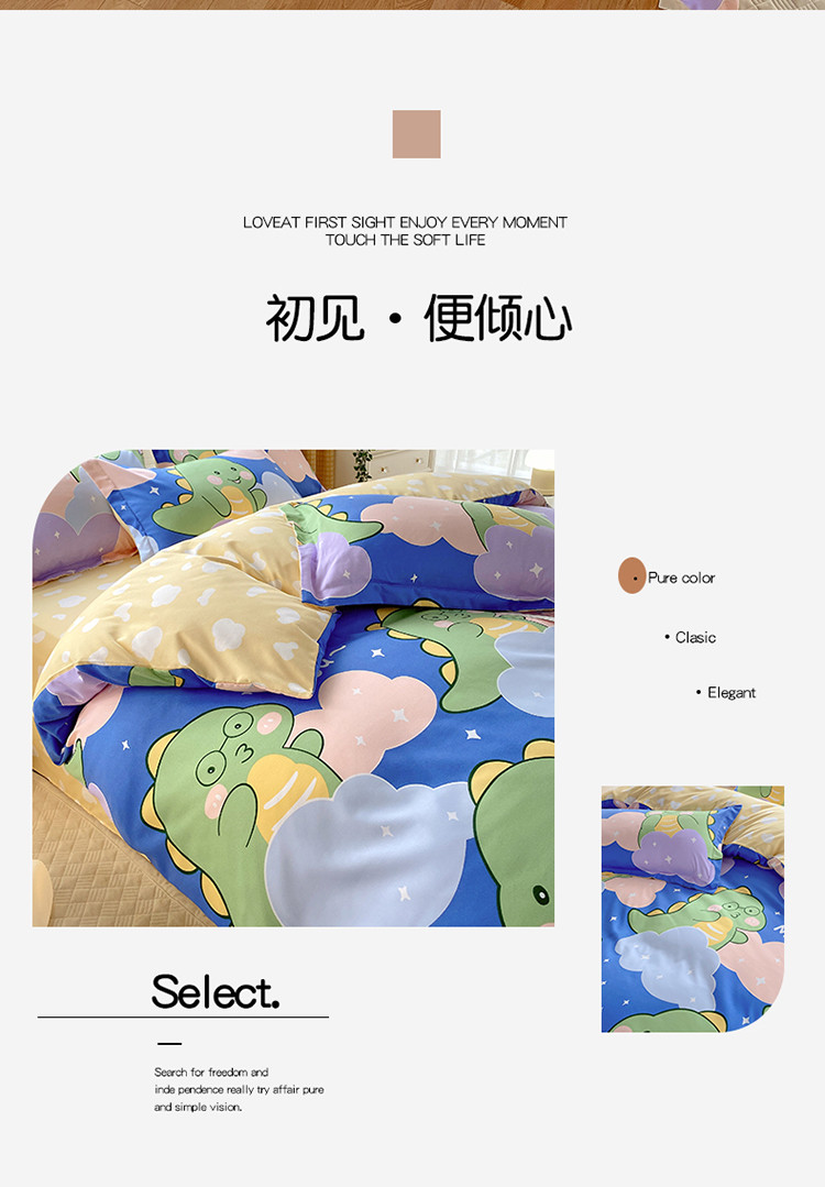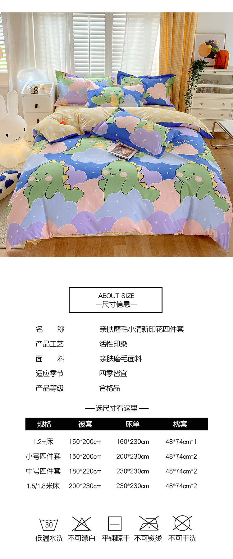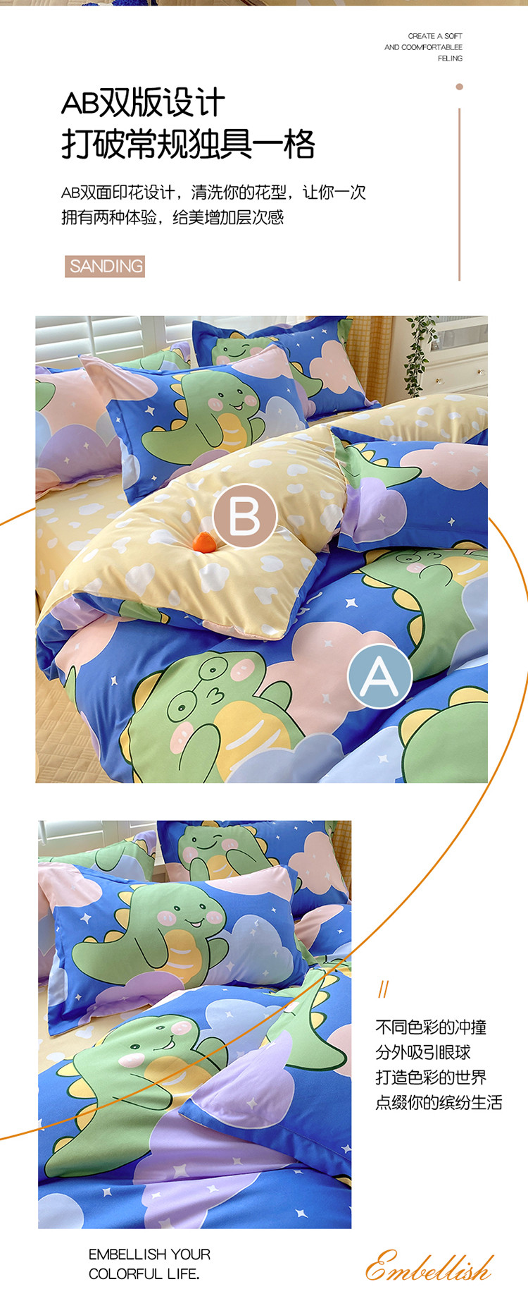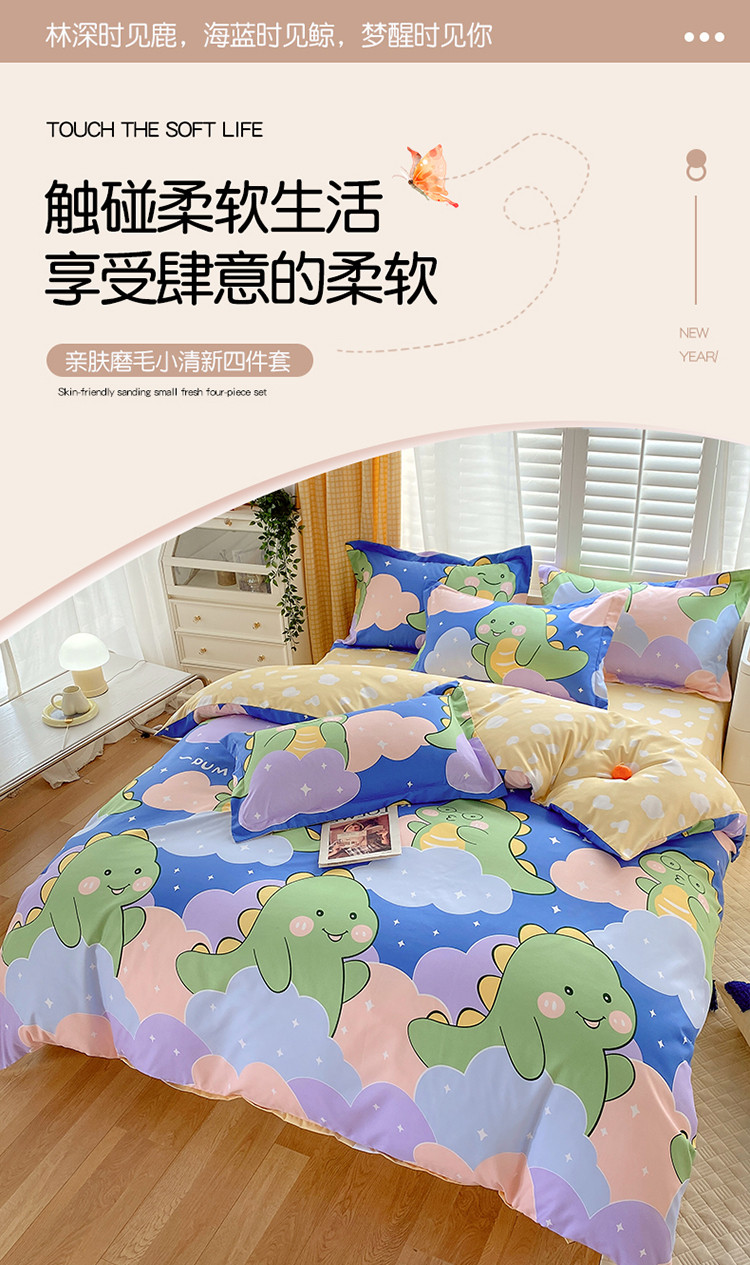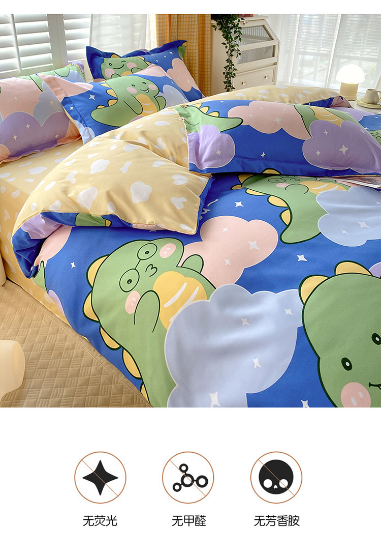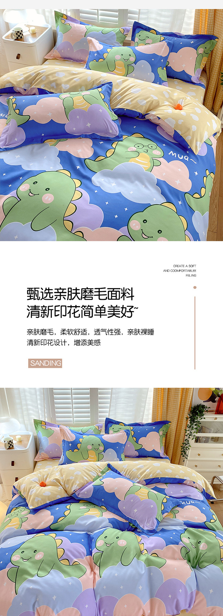 当前位置: 91家纺网 > 商品网购 > 床品套件 > 四件套 > 化纤普通四件套 > 艾橙 秋冬新款140g植物羊绒磨毛四件套系列 可爱恐龙