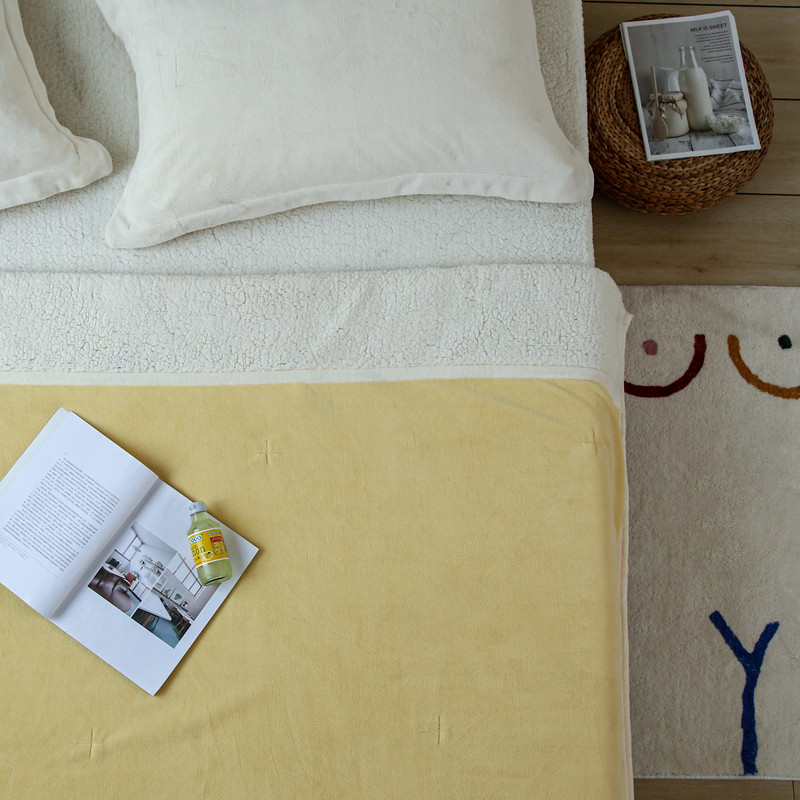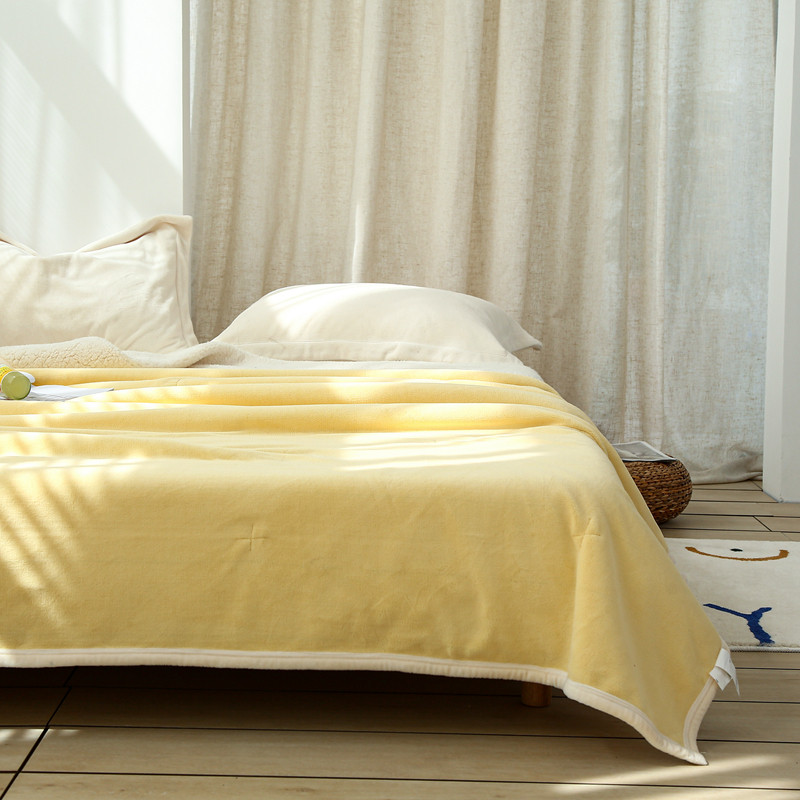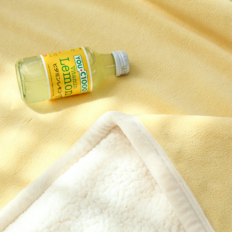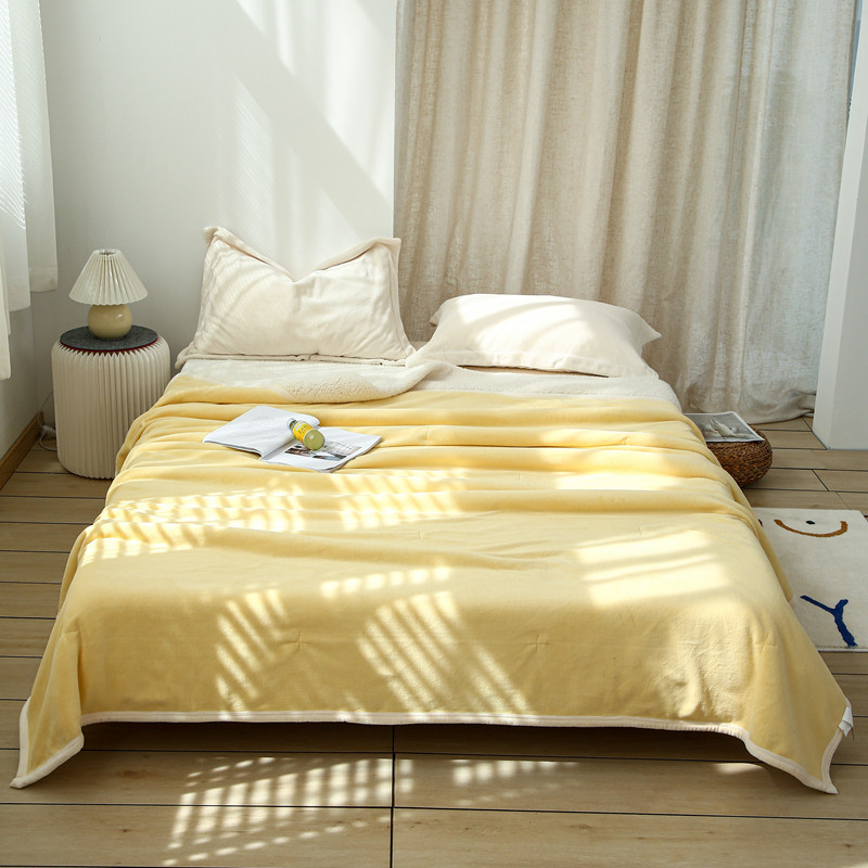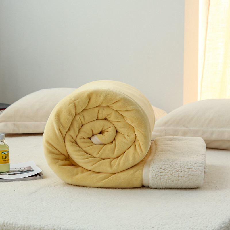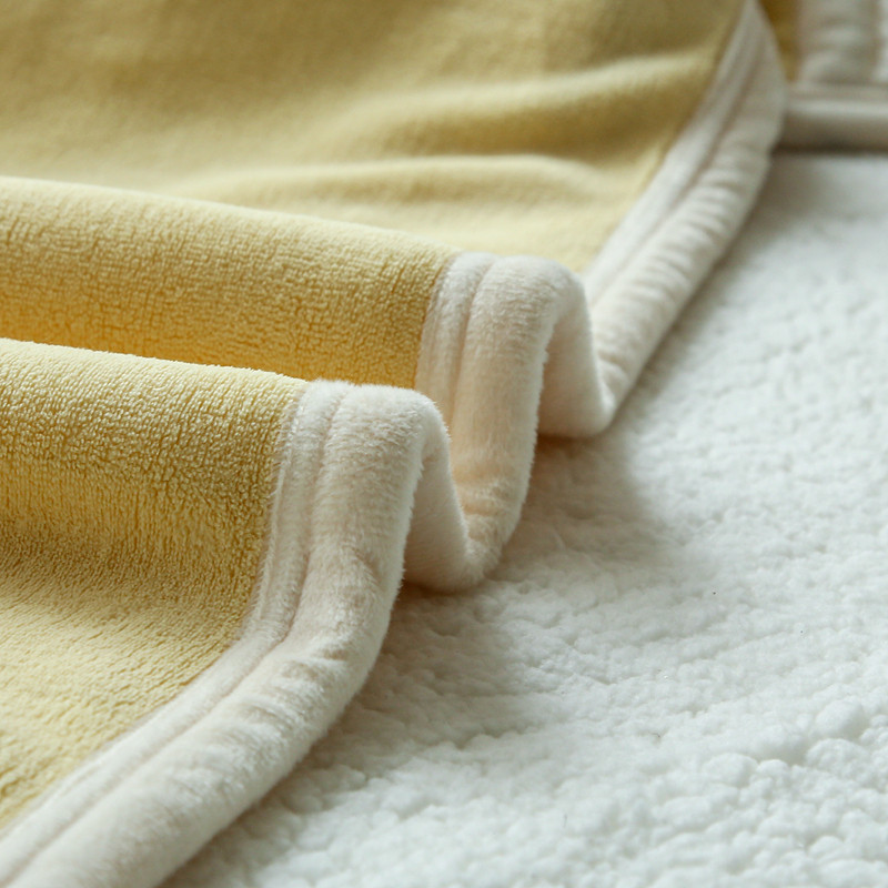 安莱生活 秋冬新品高克重新品牛奶绒拼羊羔绒毛毯 图二 麦芽黄