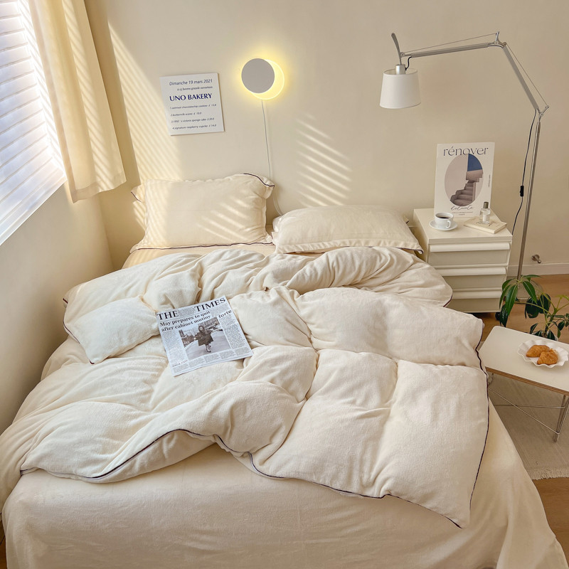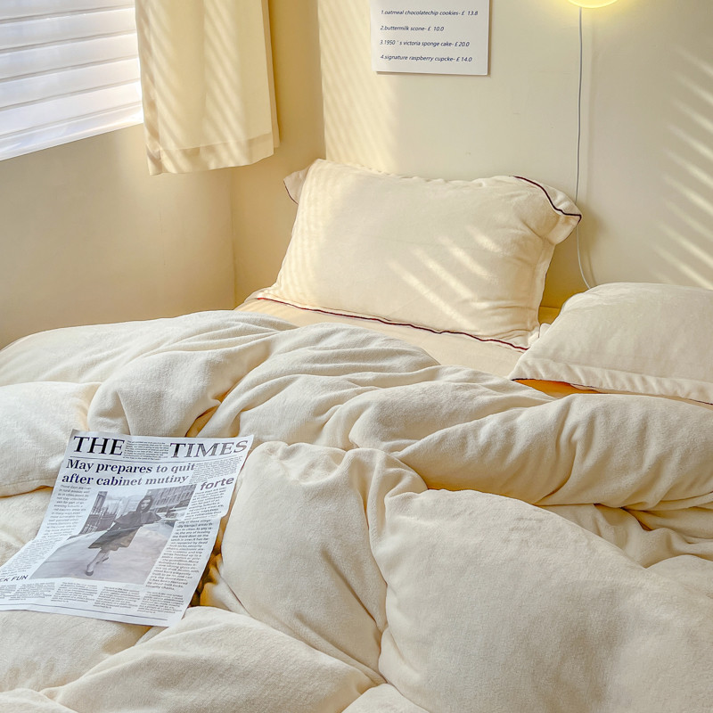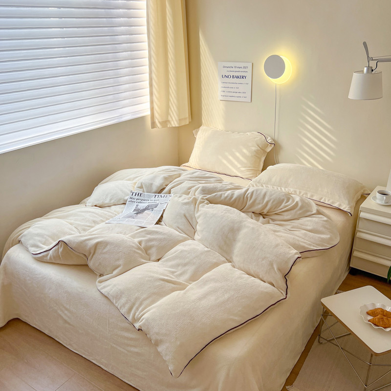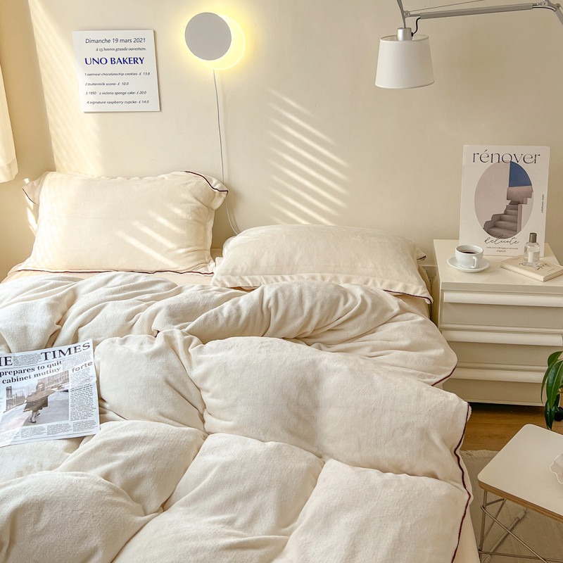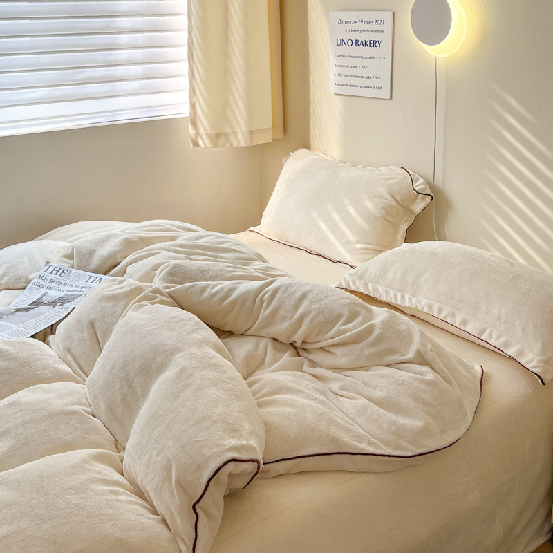 顾里家纺 新款Chic奶油嵌绳撞色牛奶绒四件套-第 一组 慕斯白
