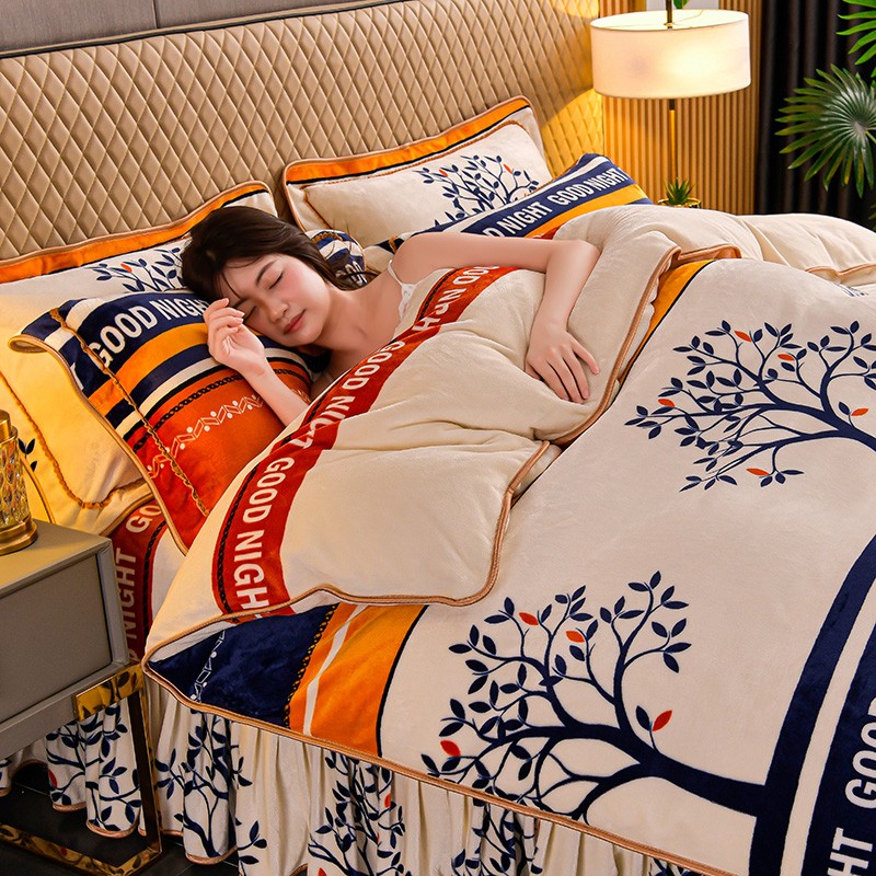 羽梦2025新款8.5斤牛奶法莱绒金貂法兰绒四件套直播爆款三生有杏,三生有杏