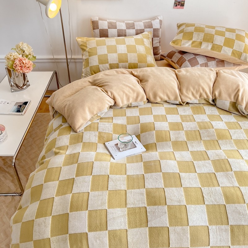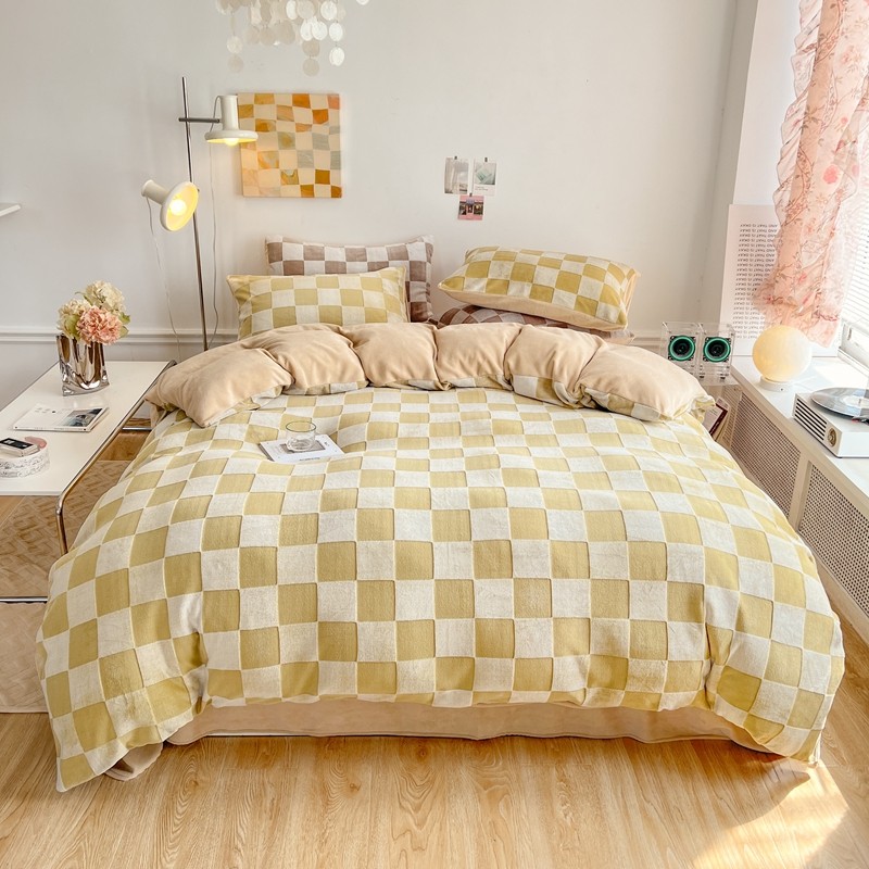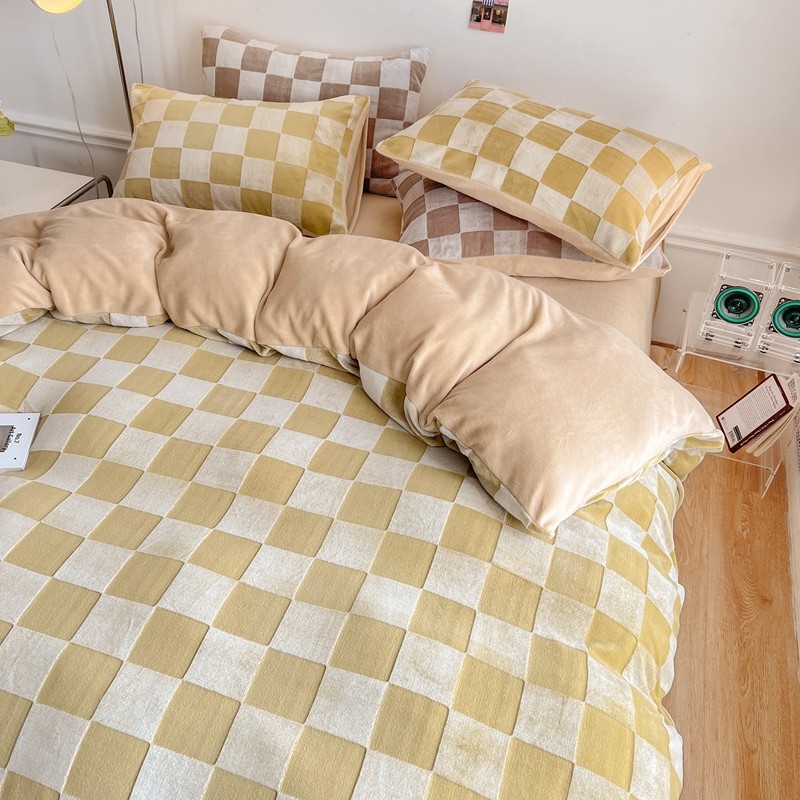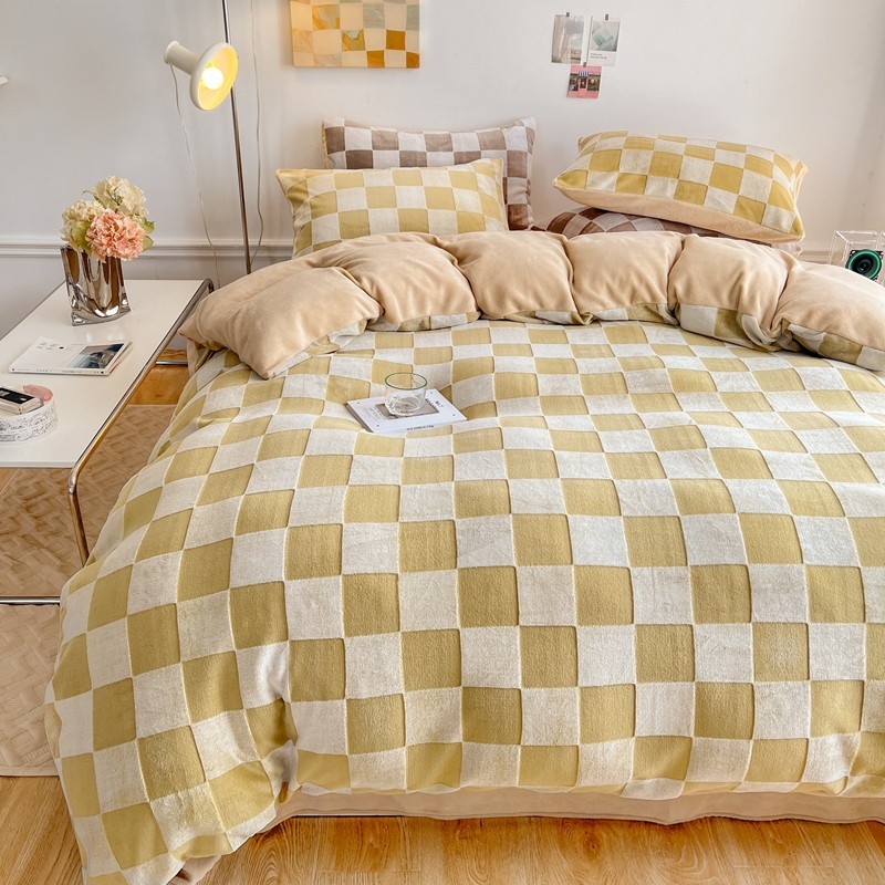 商品名称:珺柔 2022新款提花格子牛奶绒四件套 浅咖格子