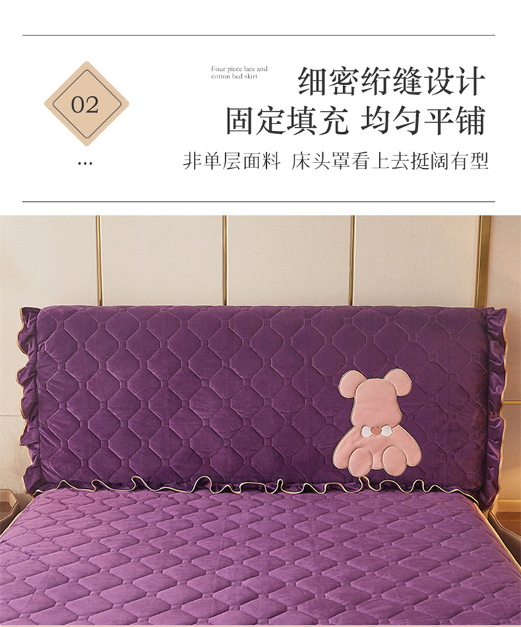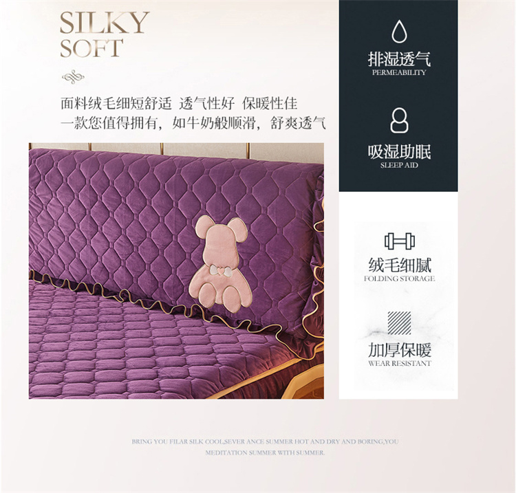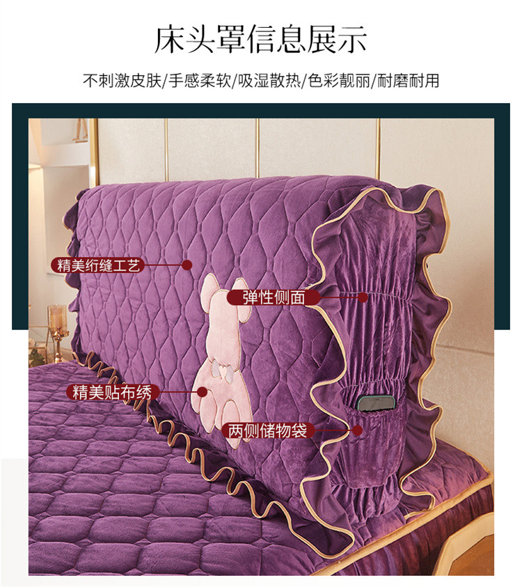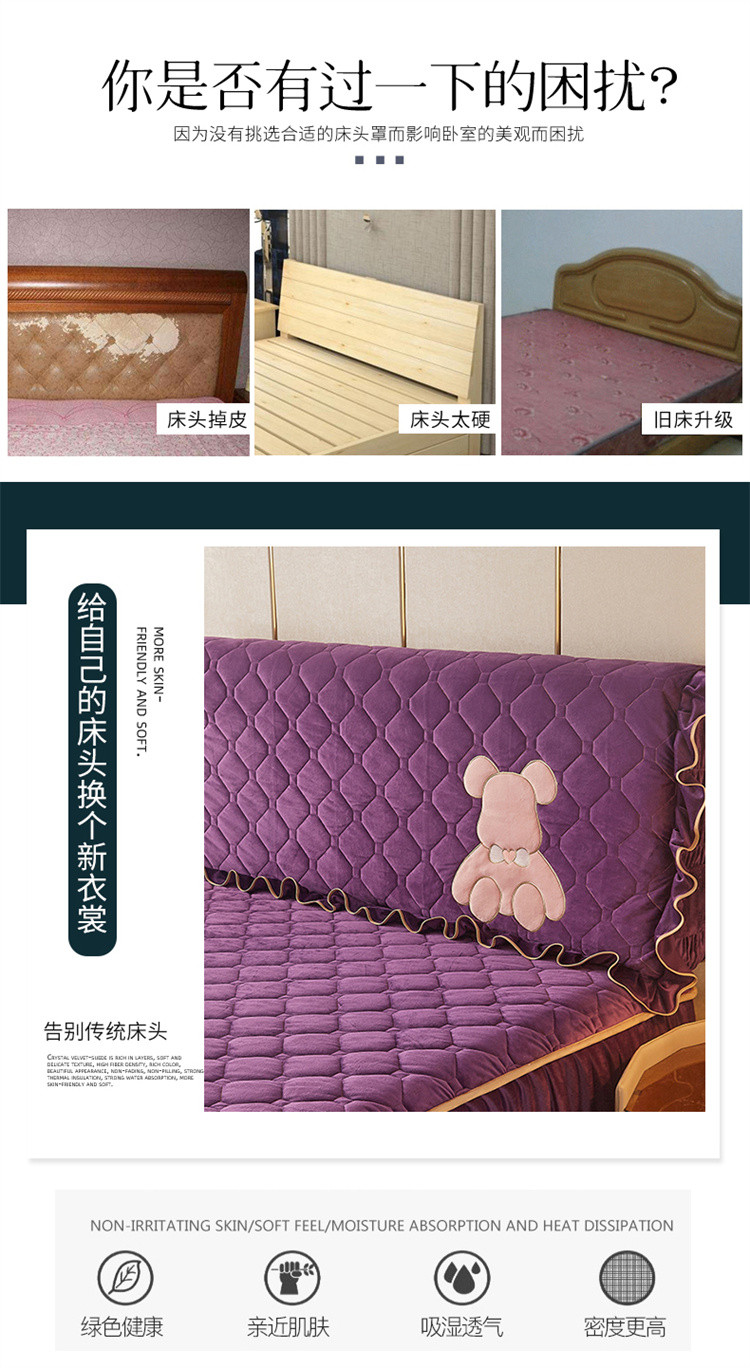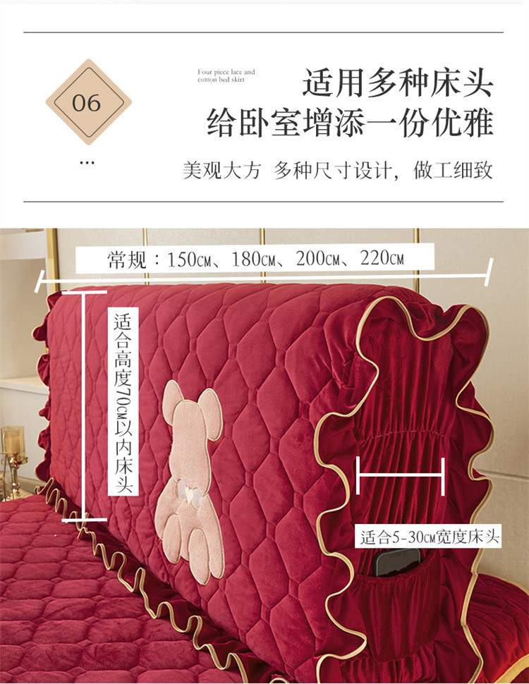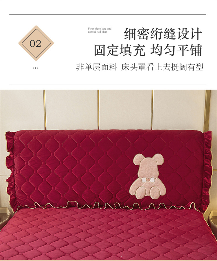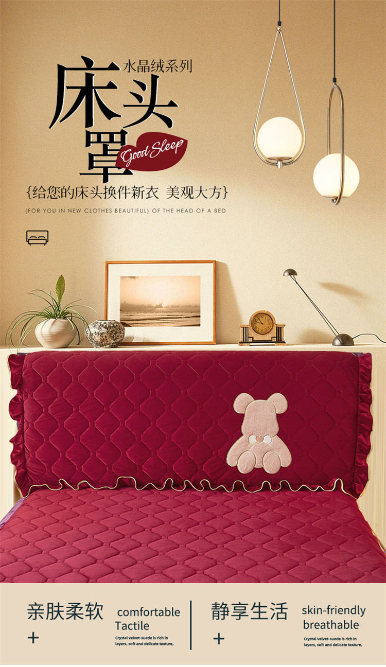 屹成家纺 2024新款水晶绒床头罩-小熊款 酒红