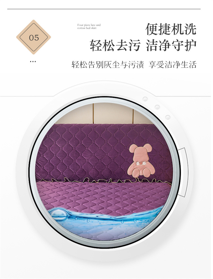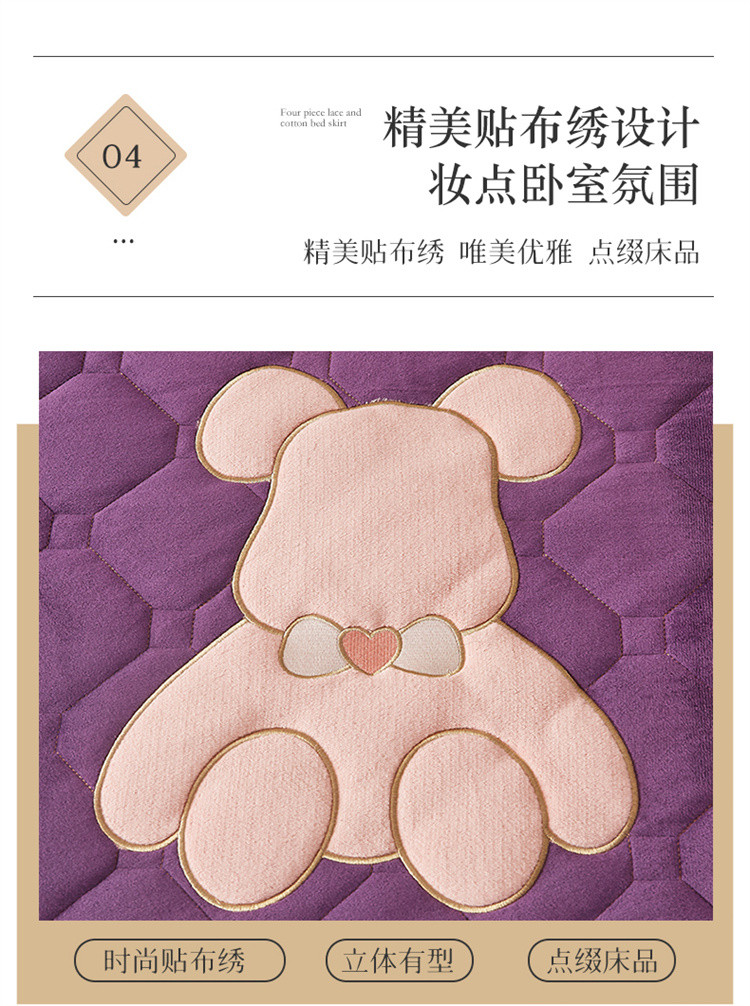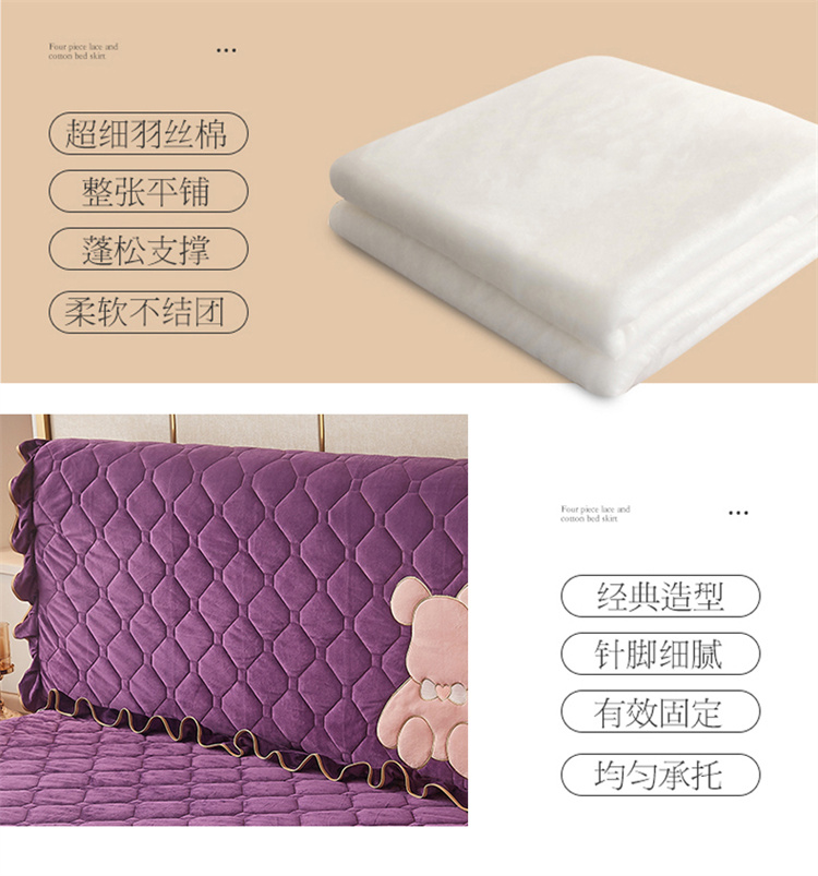 (总)屹成家纺 2024新款天竺棉夹棉床裙四件套,玳瑁紫,典雅驼,豆沙,格调蓝,经典灰,孔雀绿