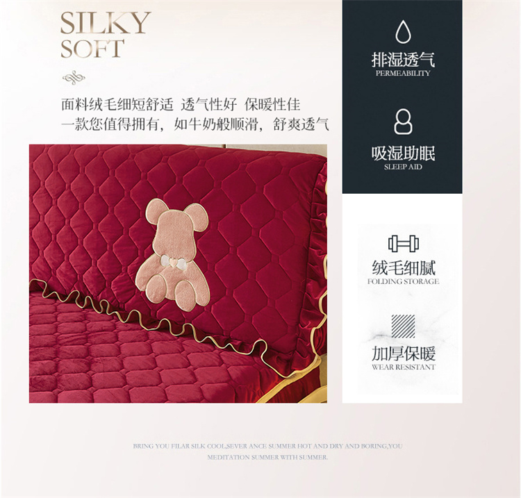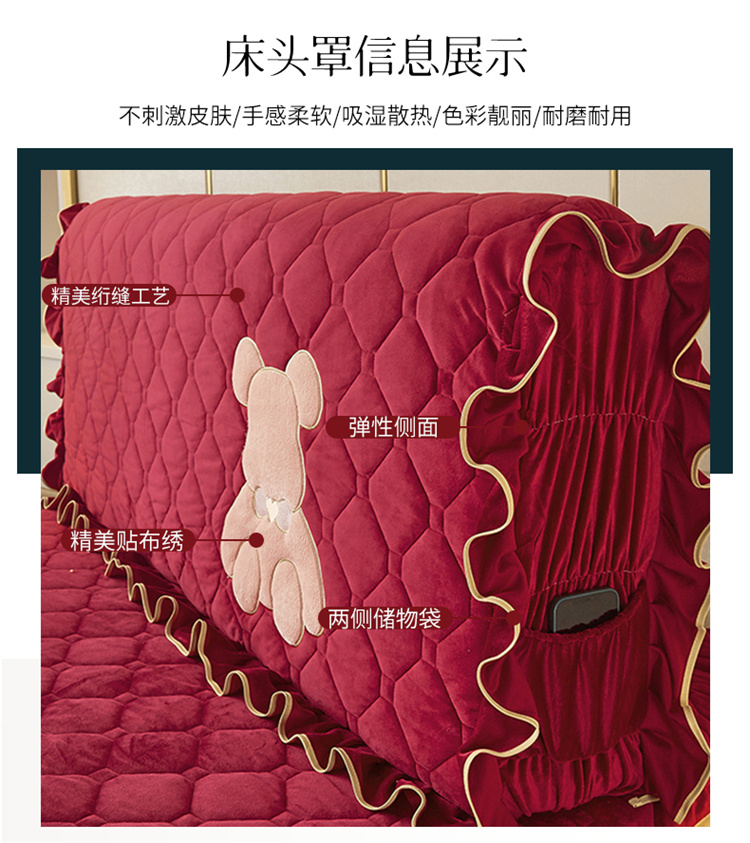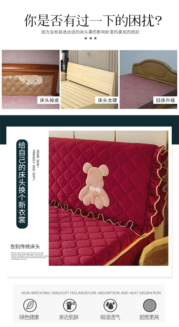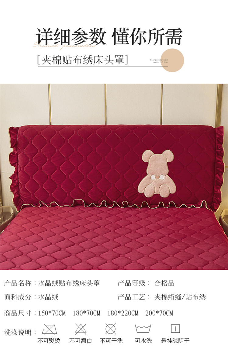 商品名称:屹成家纺 2024新款水晶绒床头罩-小熊款 酒红