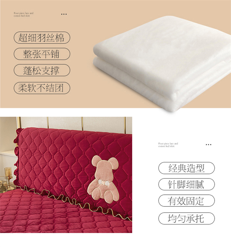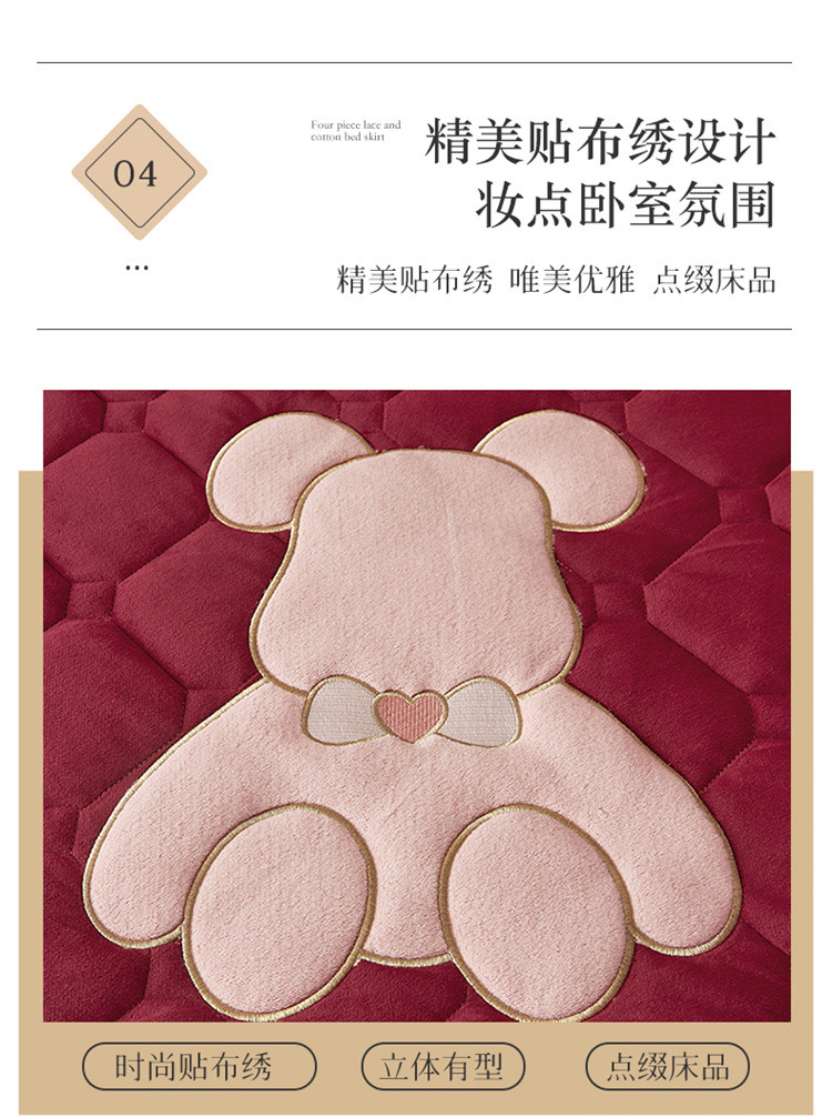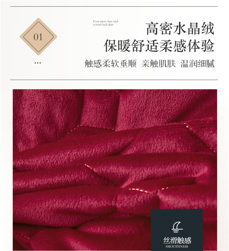 (总)屹成家纺2025新款水晶绒夹棉绗缝床裙四件套(塞纳河畔)四件套起售价不低于230元,大红,豆沙,翡翠绿,粉玉,橄榄绿,蔚蓝,银灰