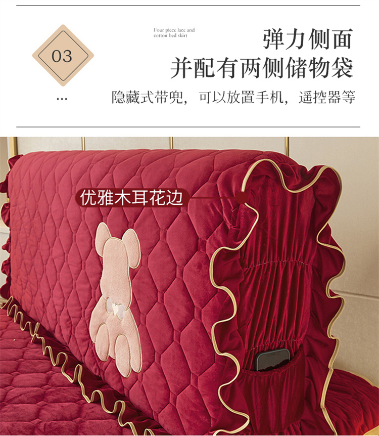 (总)屹成家纺2025新款水晶绒夹棉绗缝蕾丝床裙三件套(塞纳河畔)床裙单件起售价不低于105元,大红,豆沙,翡翠绿,粉玉,橄榄绿,蔚蓝,银灰