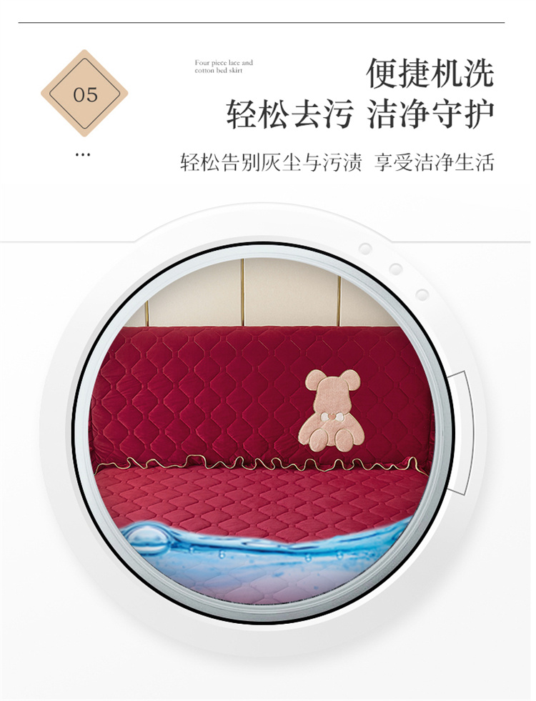 (总)屹成 2024新款水洗棉蕾丝四季款床笠床裙单品套件-床裙三件套,粉玉,豆沙,粉红,大红,橄榄绿,卡其,玫红,浅紫,水绿,天蓝,银灰
