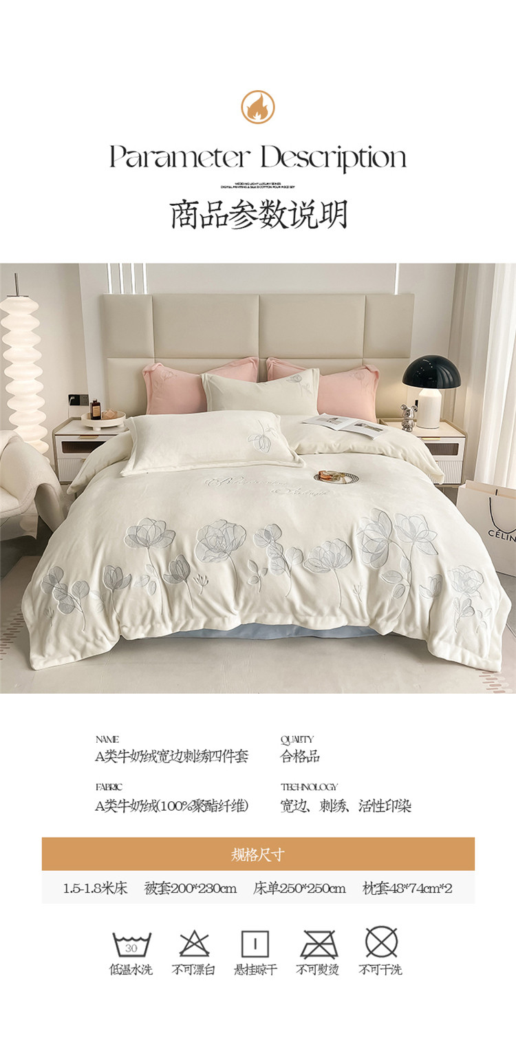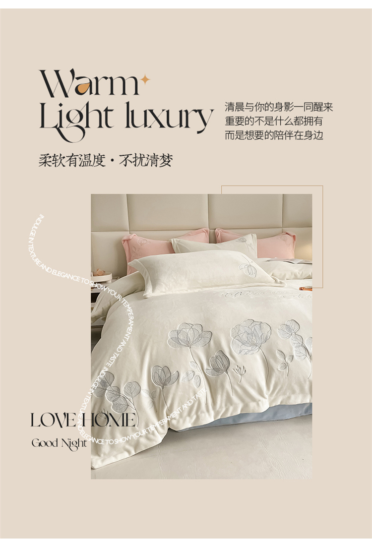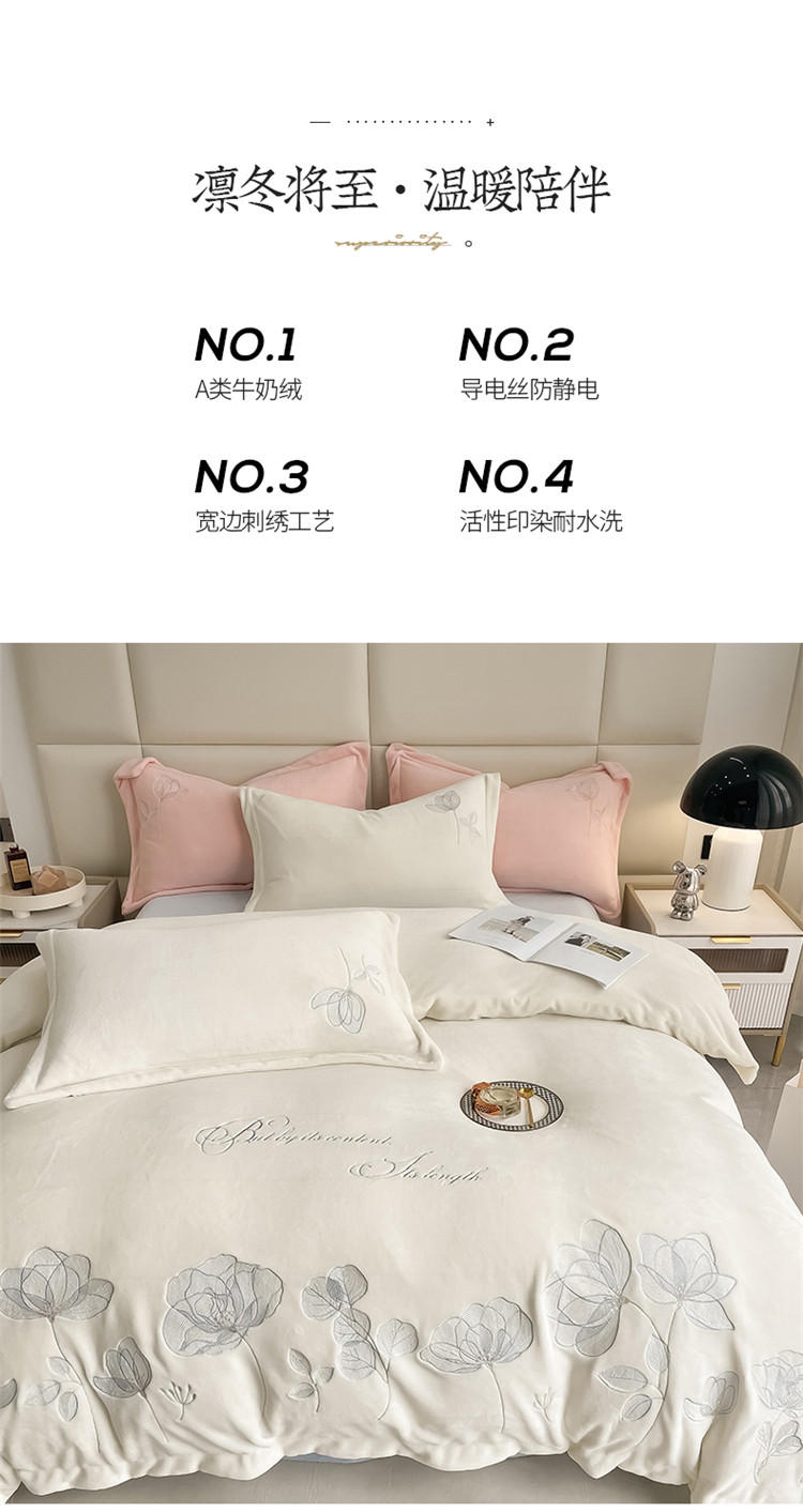 (总)懒猫家纺 2025新款亲肤舒适牛奶绒四件套-可可小姐系列,可可小姐-瓷白,可可小姐-水粉